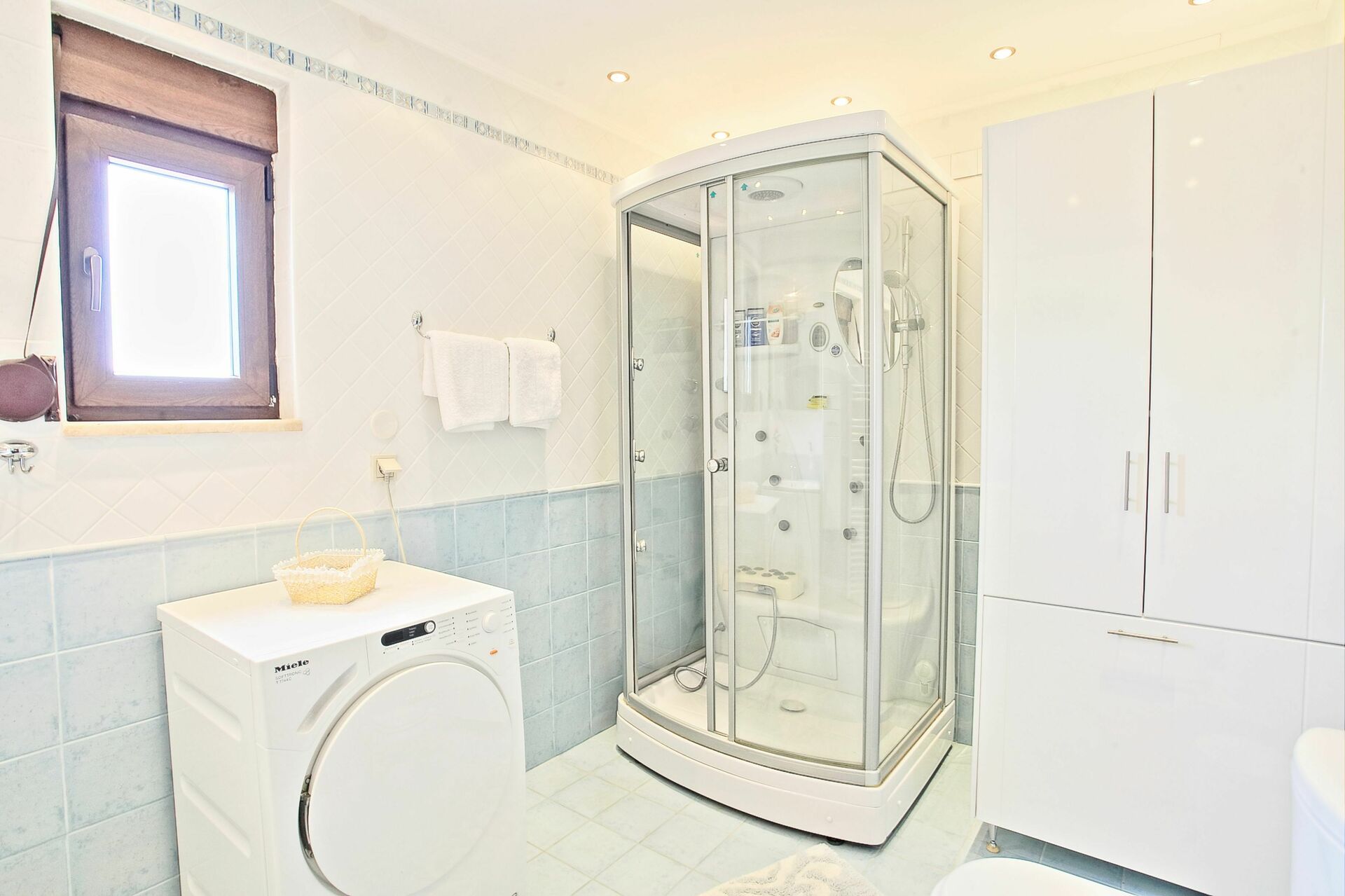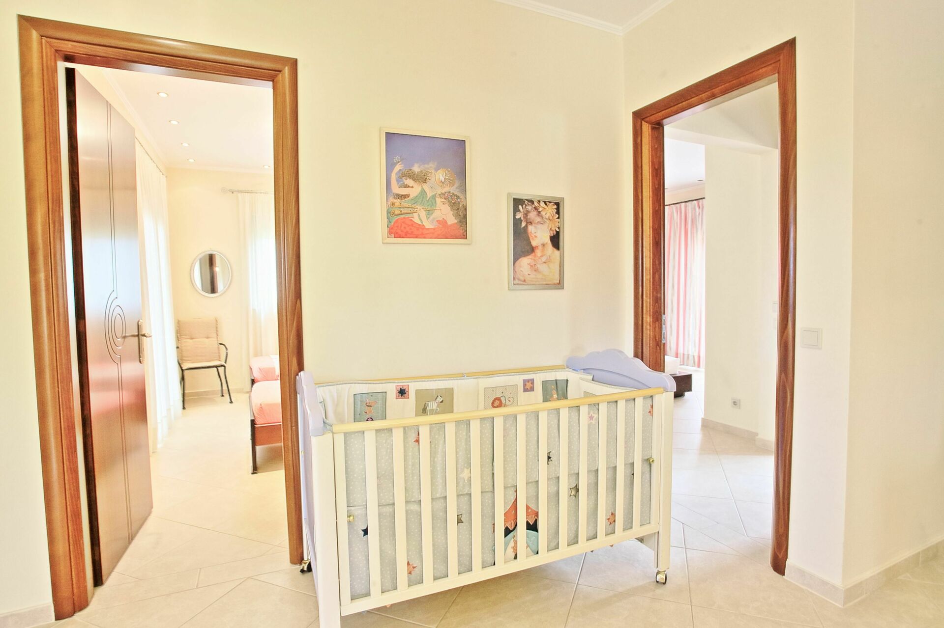 De bovenste verdieping is toegankelijk via een grote trap en heeft een ruime woonkamer en de 4 overige slaapkamers + 2 badkamers. De hoofdslaapkamer heeft een eigen badkamer met een hydromassagebad, terwijl de 3 resterende slaapkamers (respectievelijk 2 tweepersoonskamers en 1 Kamer met 2 enkele bedden) die een familiebadkamer delen met een hydromassagedouche (ook uitgerust met een wasdroger). Openslaande deuren geven toegang tot uitgebreide terrassen met uitzicht over de tuin en het zwembad. Horren zijn aangebracht in de ramen en 2 krachtige centrale units met airconditioning, elk van 24.000 btu, bevinden zich in de woonruimtes van elke verdieping, waardoor de hele villa snel wordt afgekoeld, zelfs tijdens de warmste dagen.