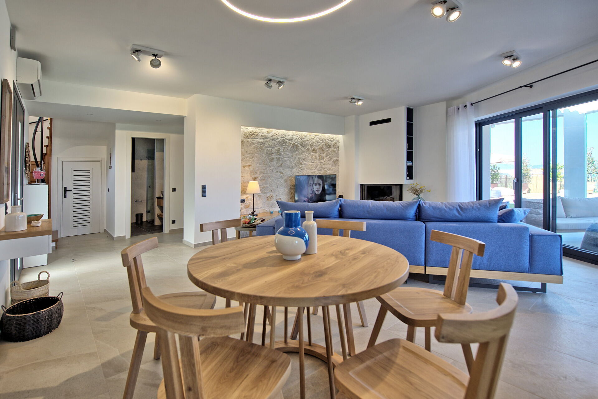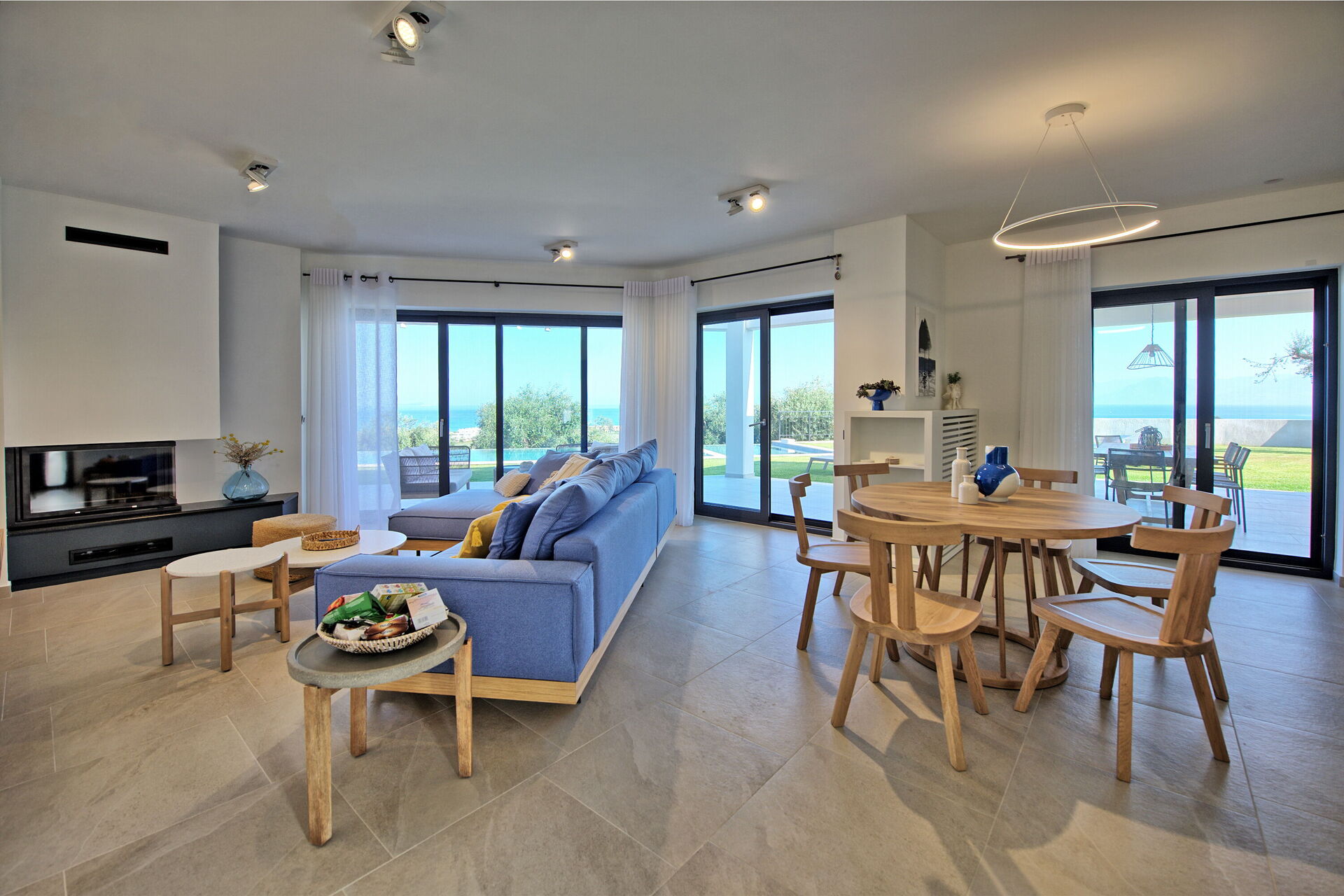 Binnen is de villa smaakvol ingericht en biedt alle moderne voorzieningen. Met 3 slaapkamers, 3 badkamers en grote gemeenschappelijke ruimtes kan de villa comfortabel plaats bieden aan maximaal 6 personen. Wat is er mooier dan wakker worden met een ongelooflijk uitzicht op zee? Vanuit het bed in elke slaapkamer zijn er prachtige panoramische uitzichten die u nooit zult vergeten.