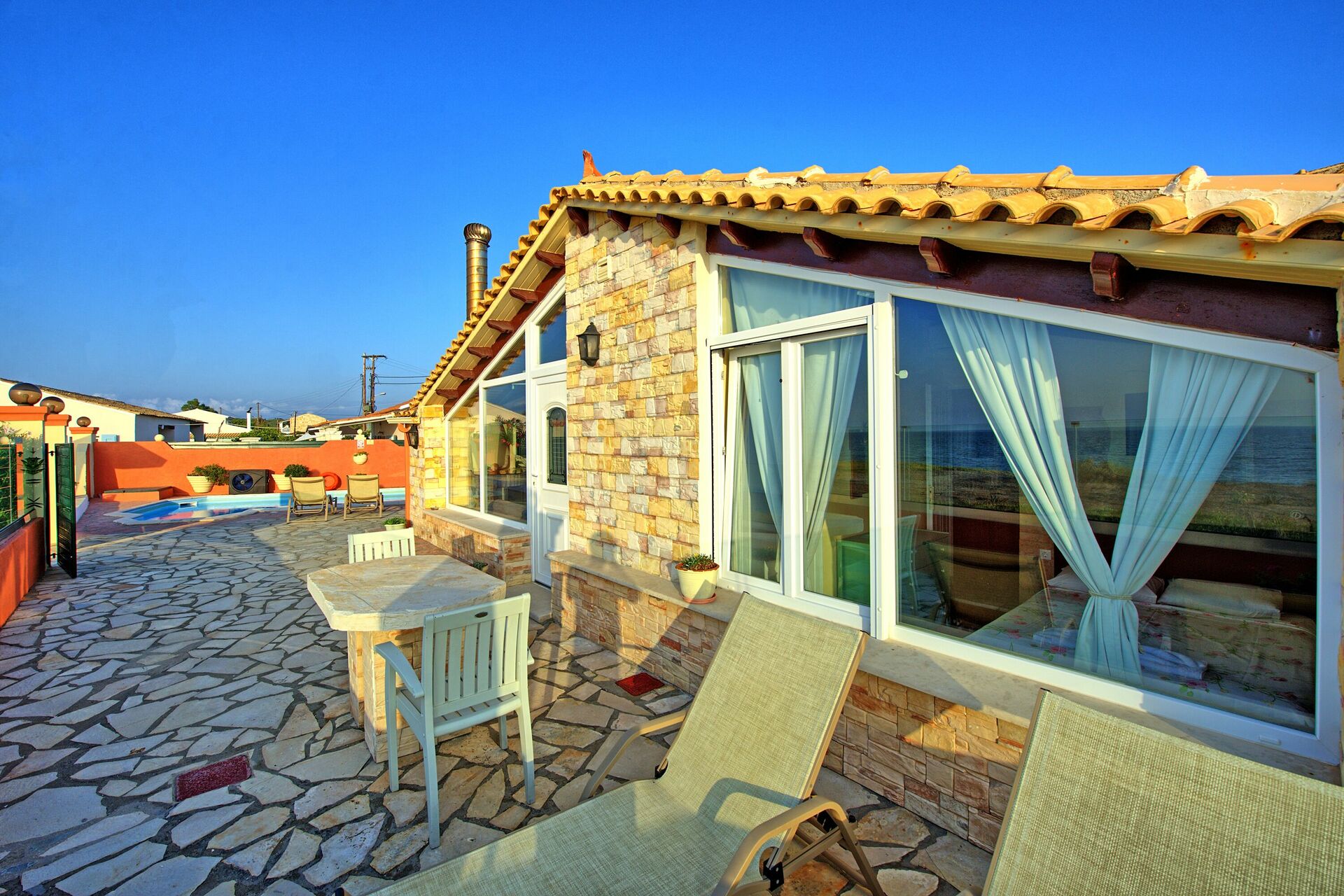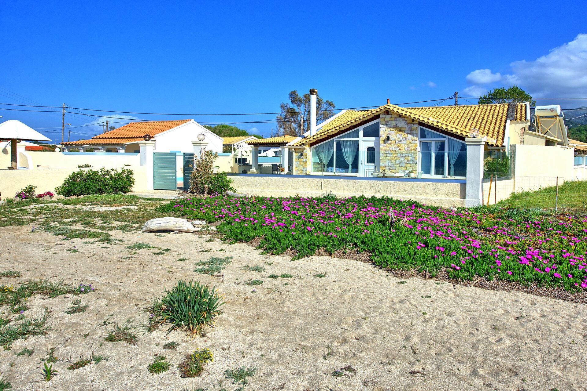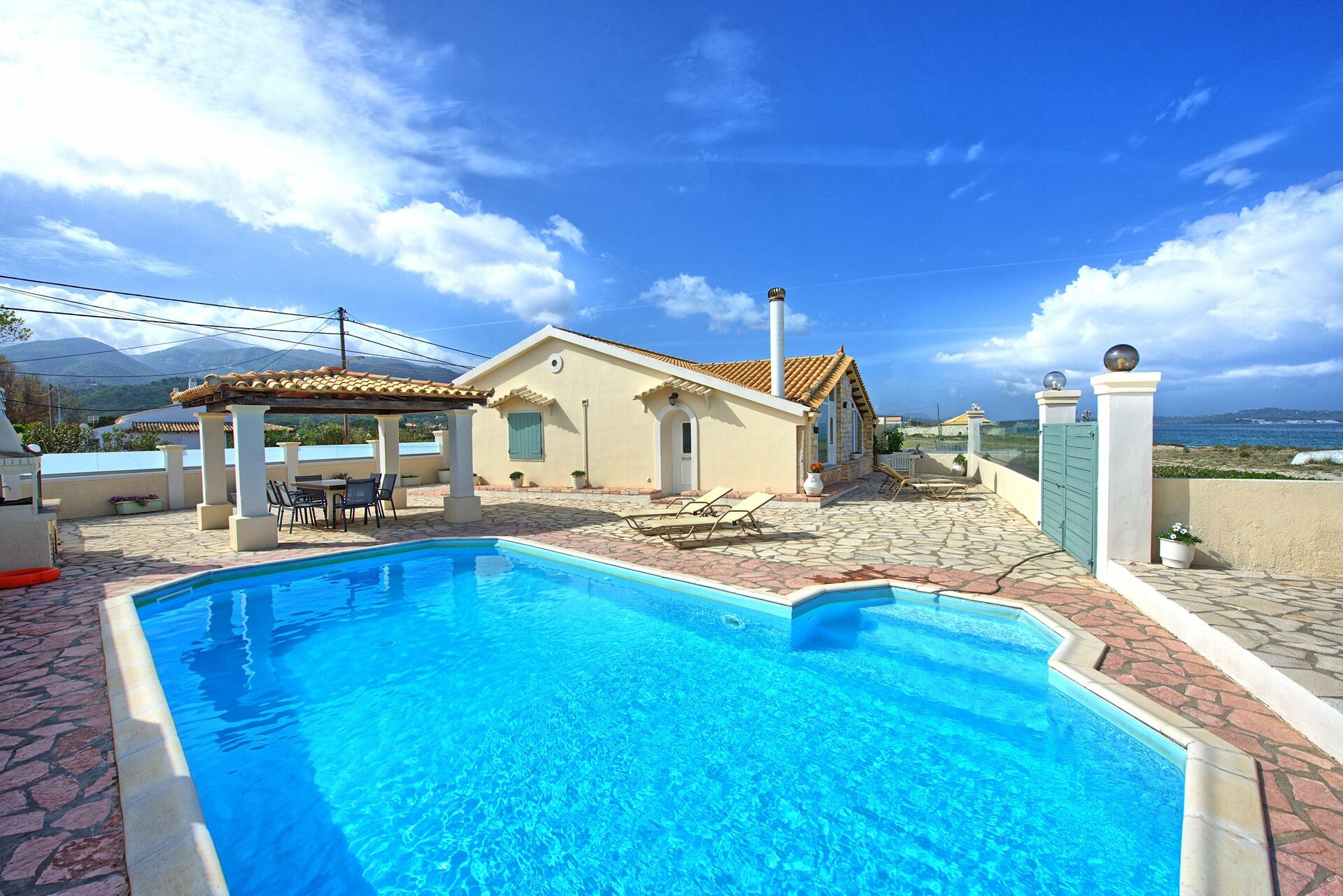 In reality this Villa is exactly as in the Pictures, nice outdoor areas and pool, walk through the gate and you are on the Beach great for families or adults, nice restaurants near by and the Owner Athanasia is extremly helpful,