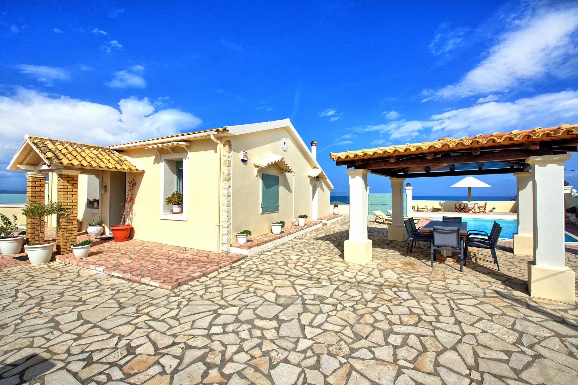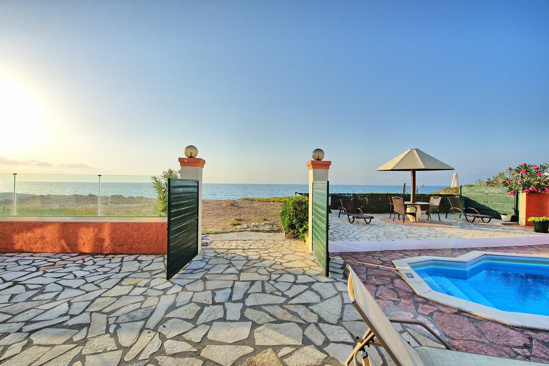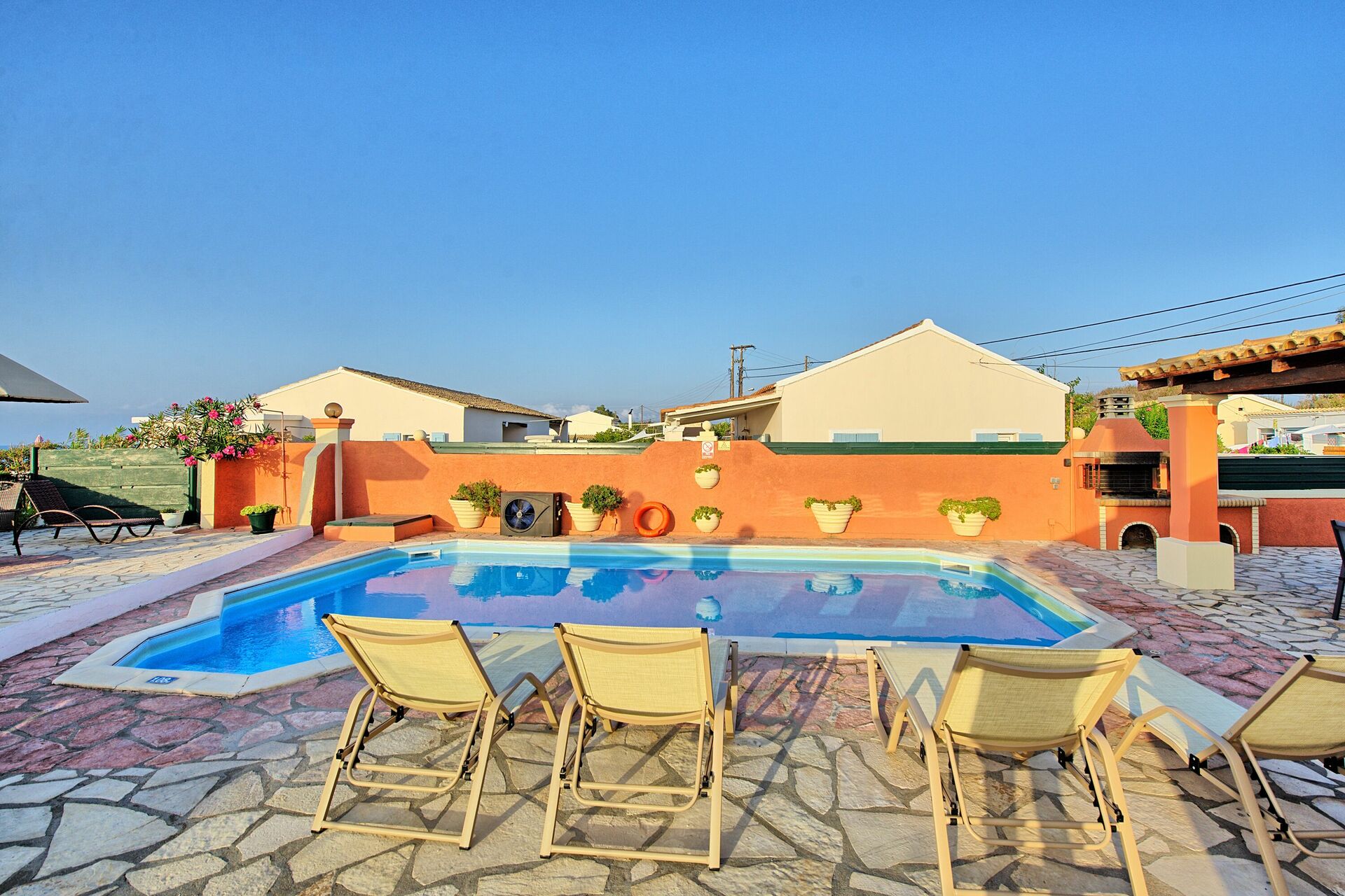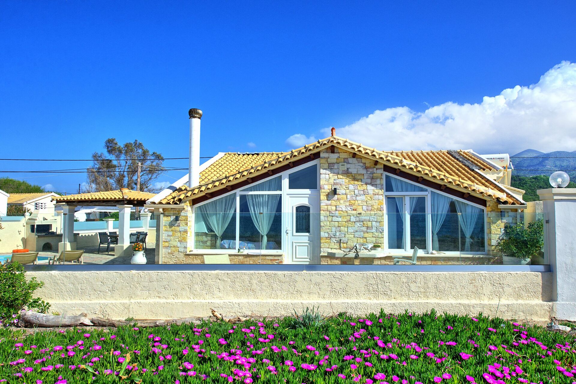In reality this Villa is exactly as in the Pictures, nice outdoor areas and pool, walk through the gate and you are on the Beach great for families or adults, nice restaurants near by and the Owner Athanasia is extremly helpful,