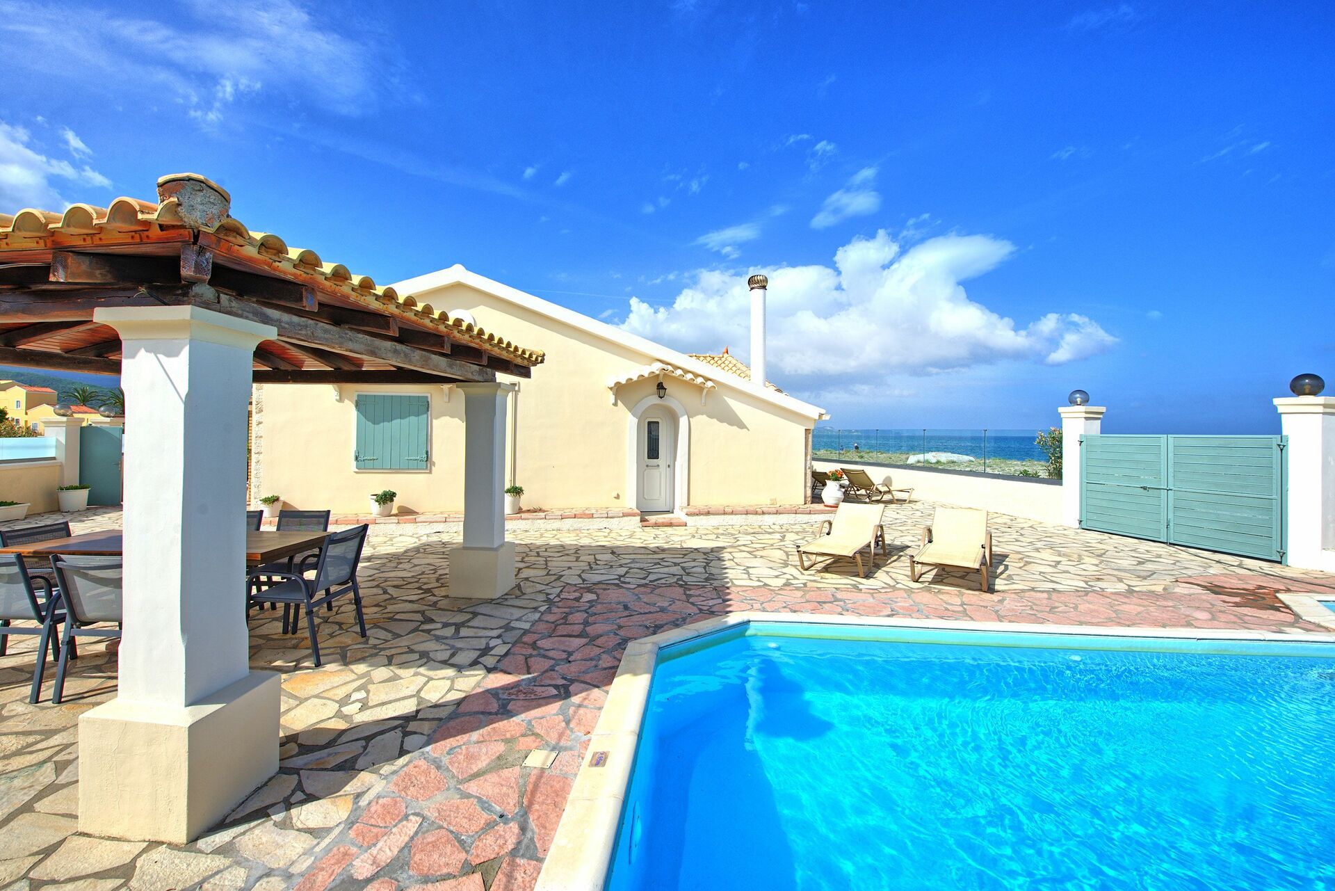 Beach Villa Athanasia is een prachtige villa met privé zwembad aan het strand van Almyros, op Corfu.
