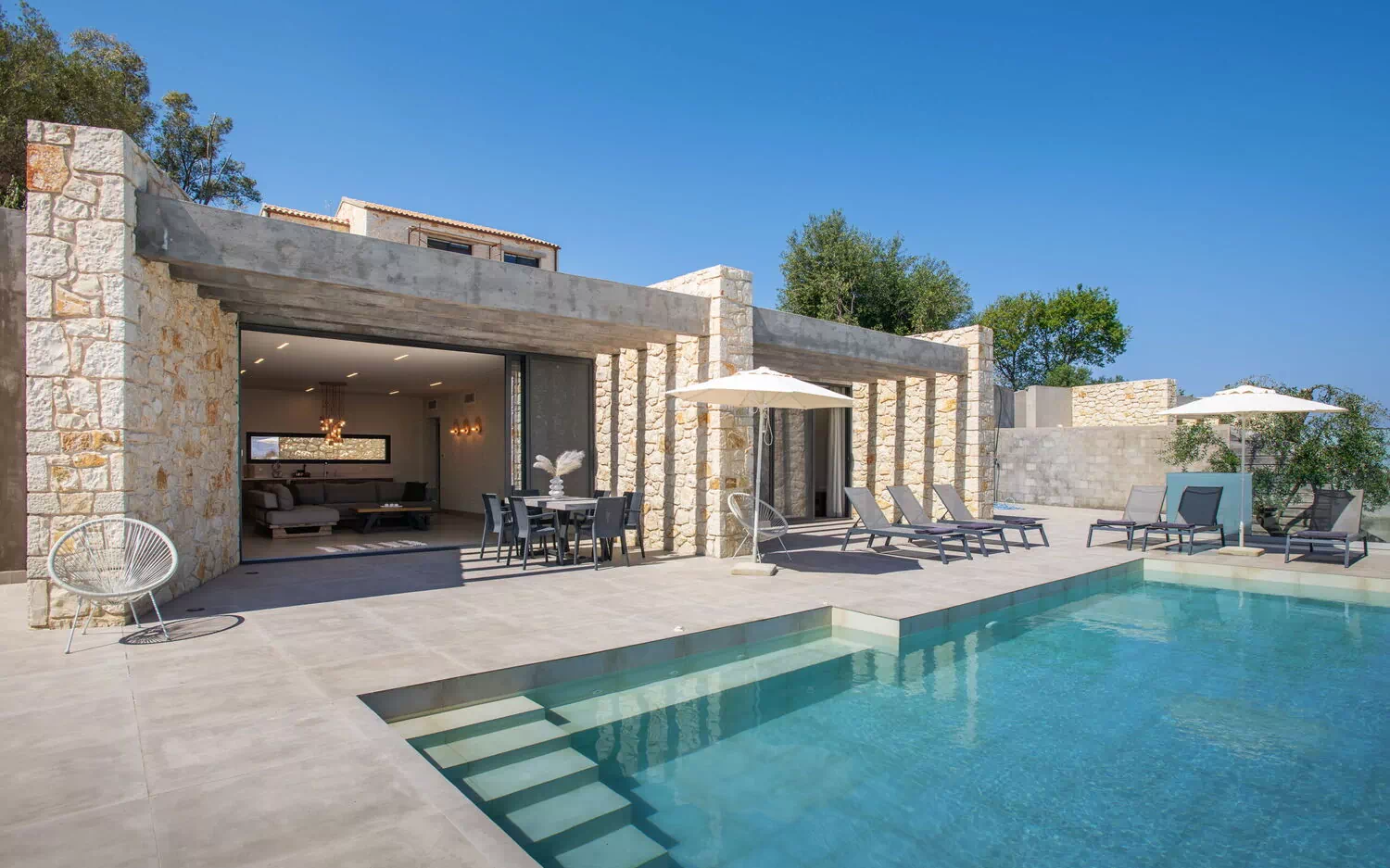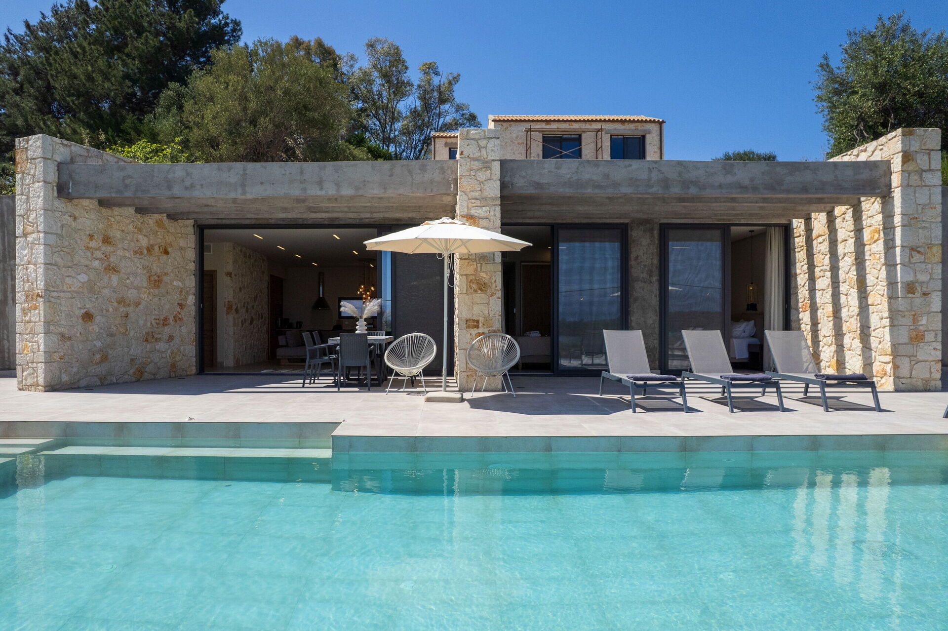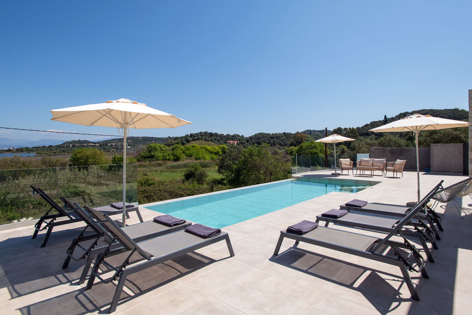 Hier zullen gasten genieten van rust, aandacht voor detail en elegante omgeving, voor een ontspannen verblijf op Corfu. De villa beschikt over 3 slaapkamers, 3 badkamers, een ruime woonkamer en een fantastisch buitenruimte—perfect voor zonnebaden bij het zwembad of samen een barbecue te houden onder de Griekse lucht.