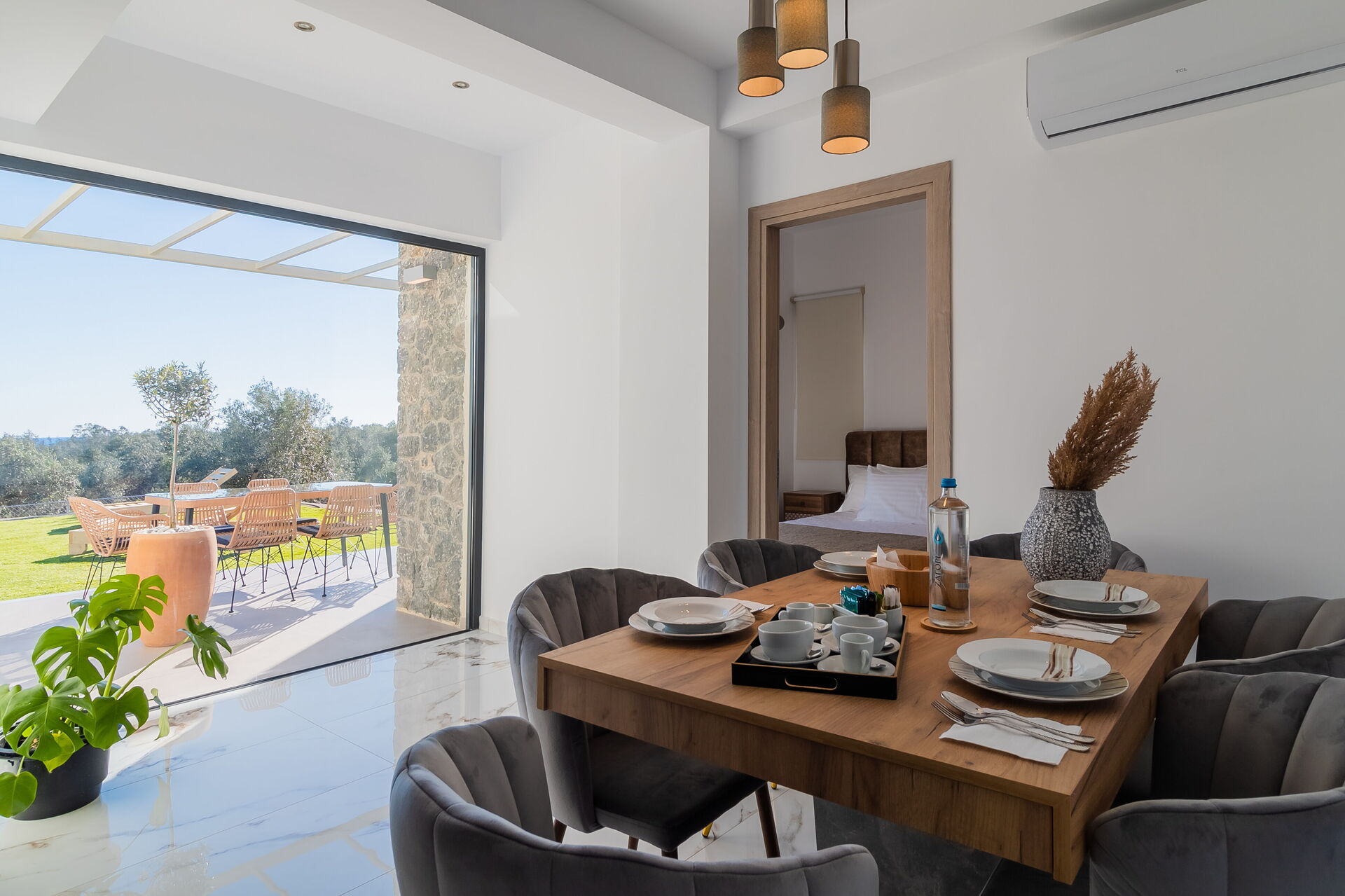 Tastefully decorated modern villa built with natural materials, located in a peaceful olive grove overlooking the sea. Great local tavernas and beaches. Short drive to village and larger towns. Warm, friendly, generous hosts who went above and beyond to make us feel welcome.