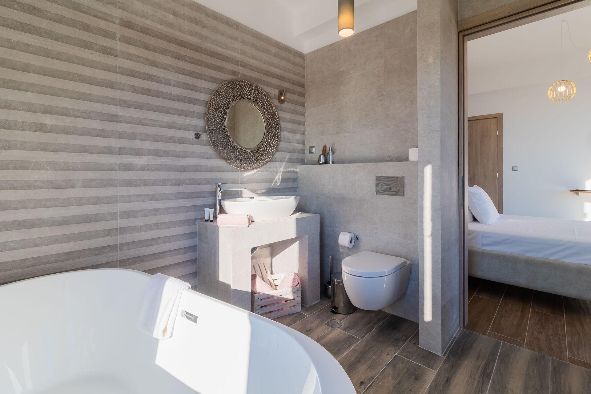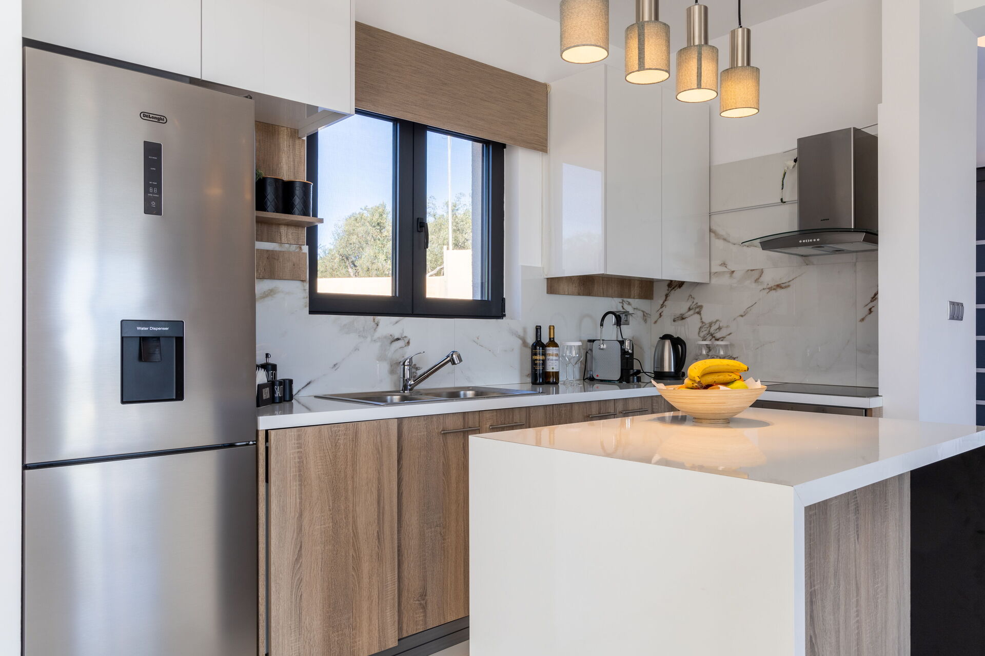 I have given 5 stars for Greek villas before but this one would deserve even more if I could. It has everything you can ask for, 3 luxurious designed rooms with a bathroom each, nice sea view and a wonderful outdoor space. The kitchen is equipped with everything you need including salt, pepper and other things for cooking.