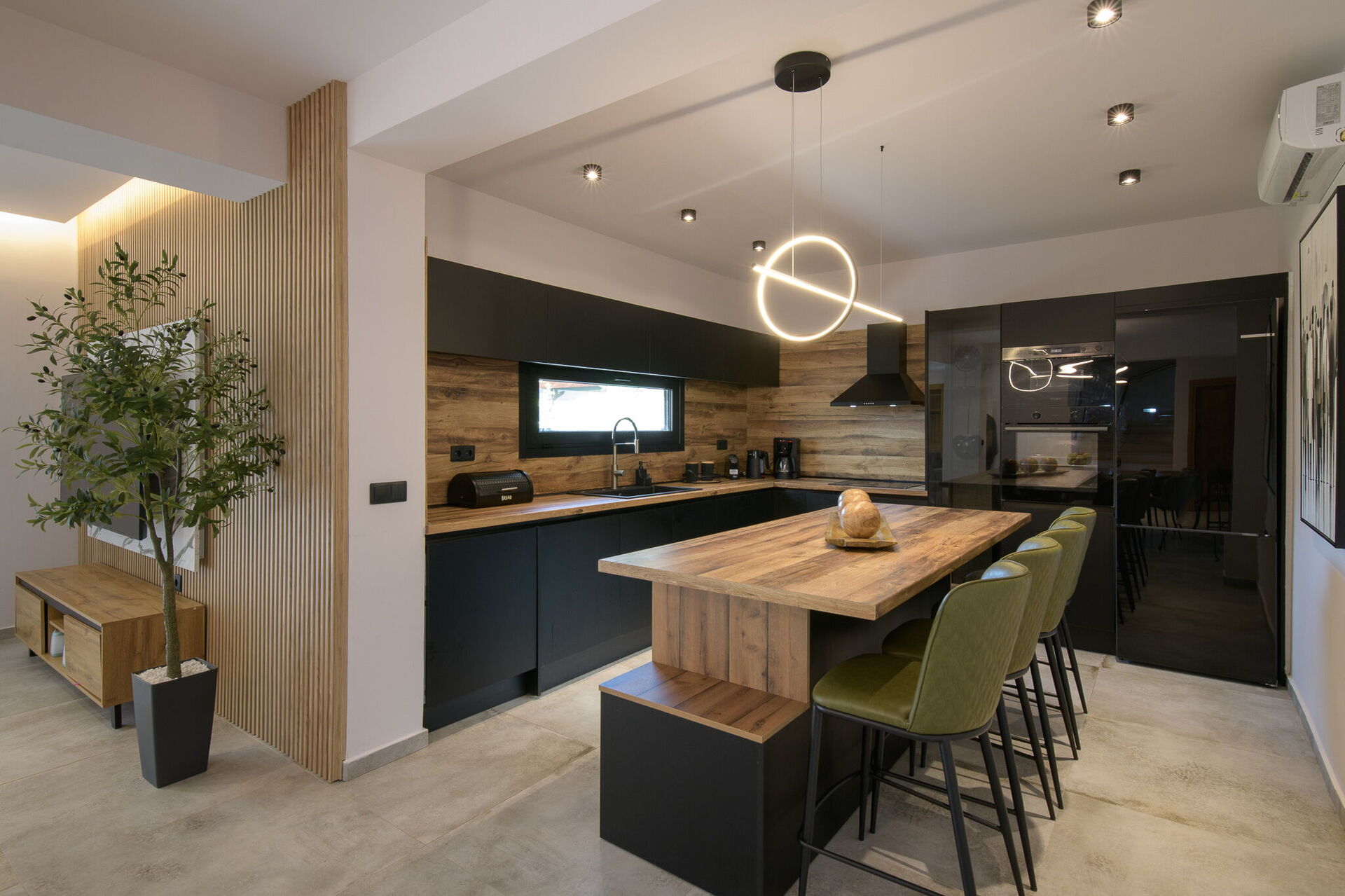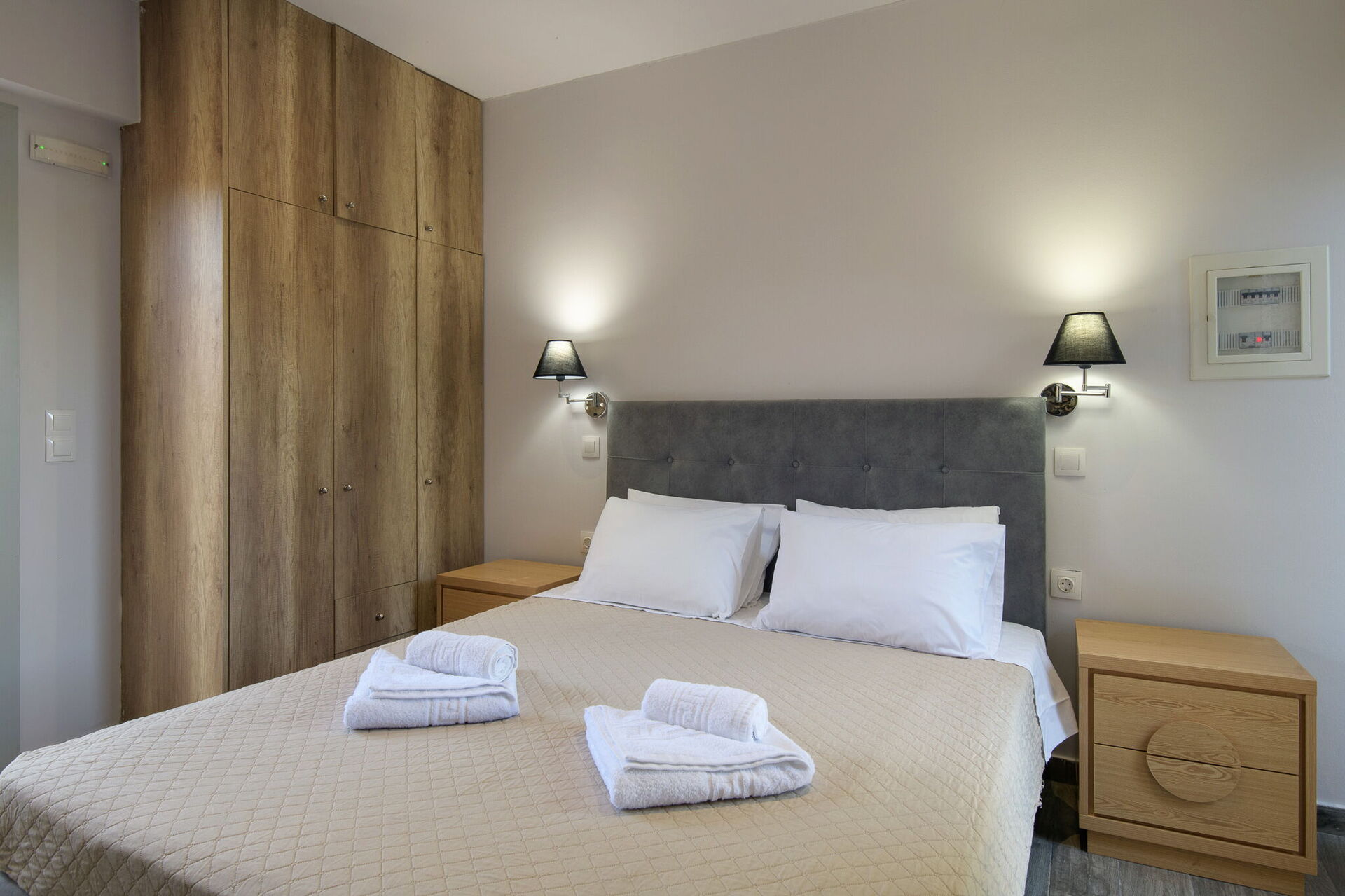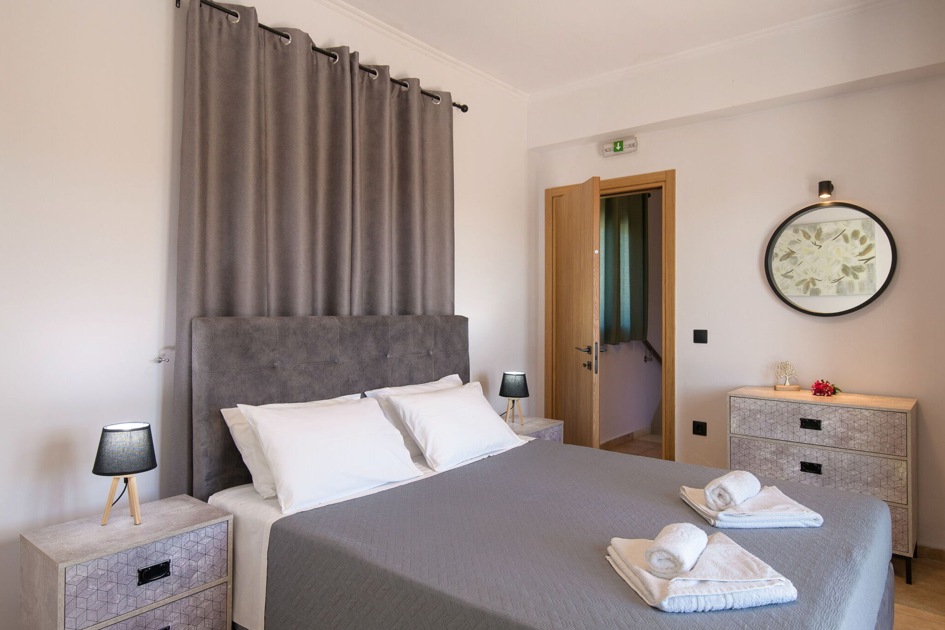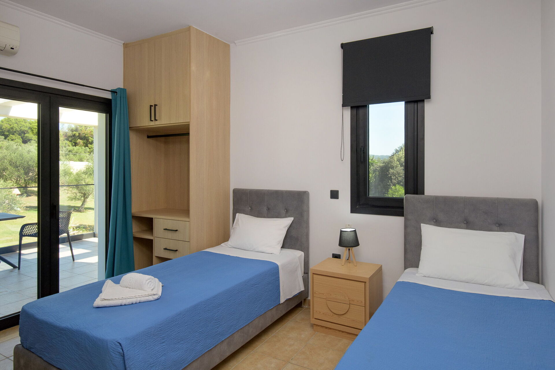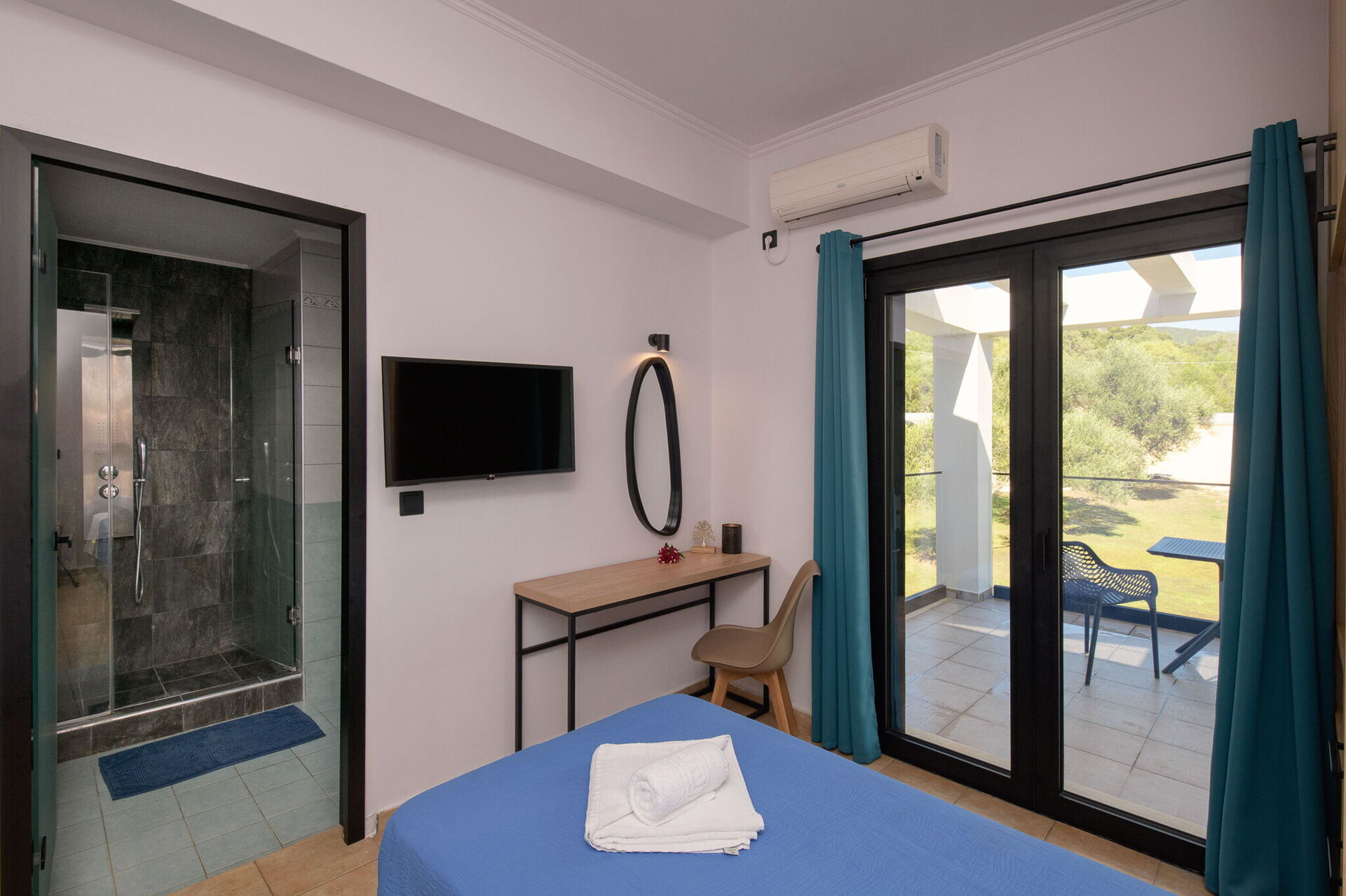De woning ligt dicht bij de zee en het bekende strand van Chalikounas – een gouden zandstrook die de Korission-lagune van de zee scheidt en populair is bij surfers en kitesurfers dankzij de gunstige windomstandigheden.