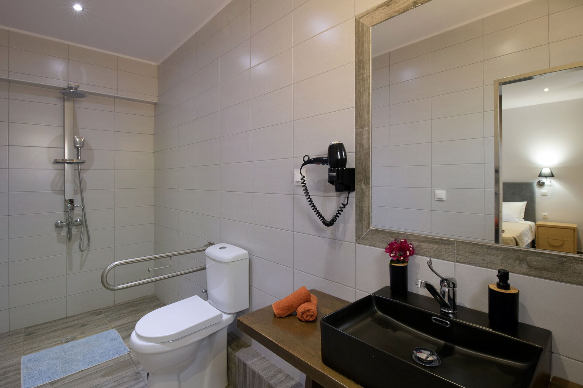 Begane grond (nur von außen zugänglich und nicht intern mit dem Rest der Villa verbunden): slaapkamer met tweepersoonsbed en eigen badkamer met douche (geschikt voor personen met beperkte mobiliteit).