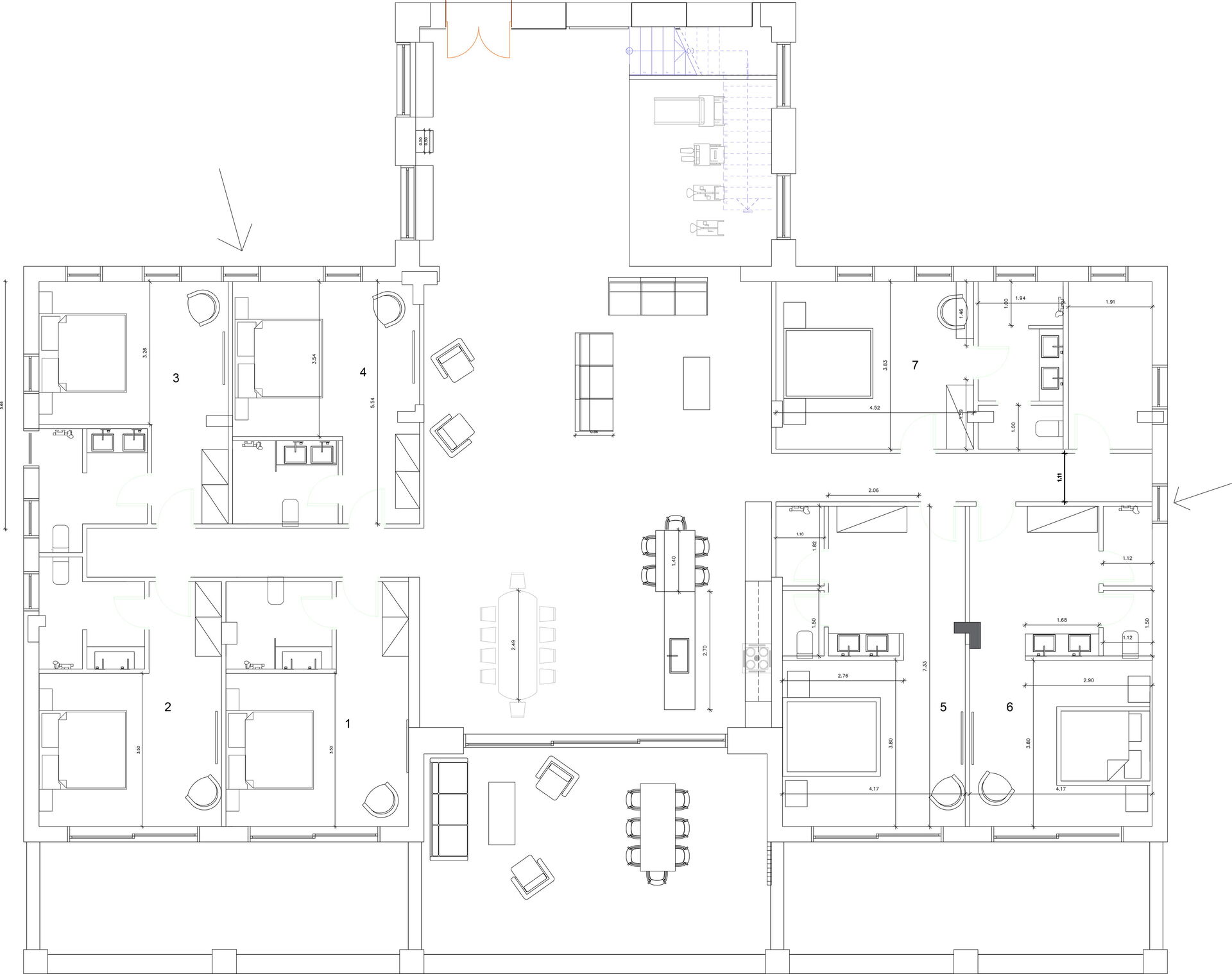 - 7 slaapkamers, elk met een eigen badkamer