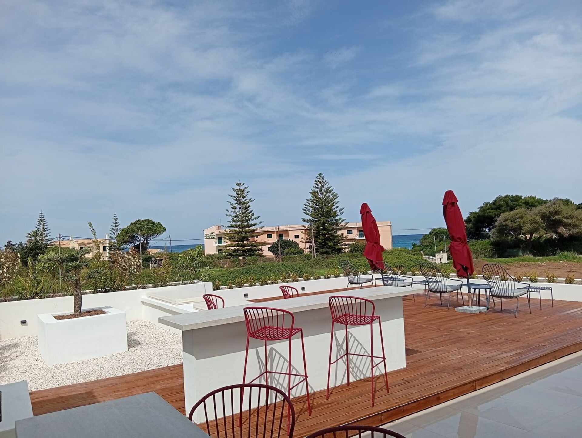 De bouwwerkzaamheden zijn voltooid in april 2026, wat heeft geresulteerd in een van de meest exclusieve villa's aan de noordkust van Corfu. Design en comfort kenmerken deze zeer lichte luxe villa: er is veel zorg besteed aan de keuze van de inrichting en de indeling van de ruimtes, ontworpen om te voldoen aan de eisen van het hedendaagse leven.