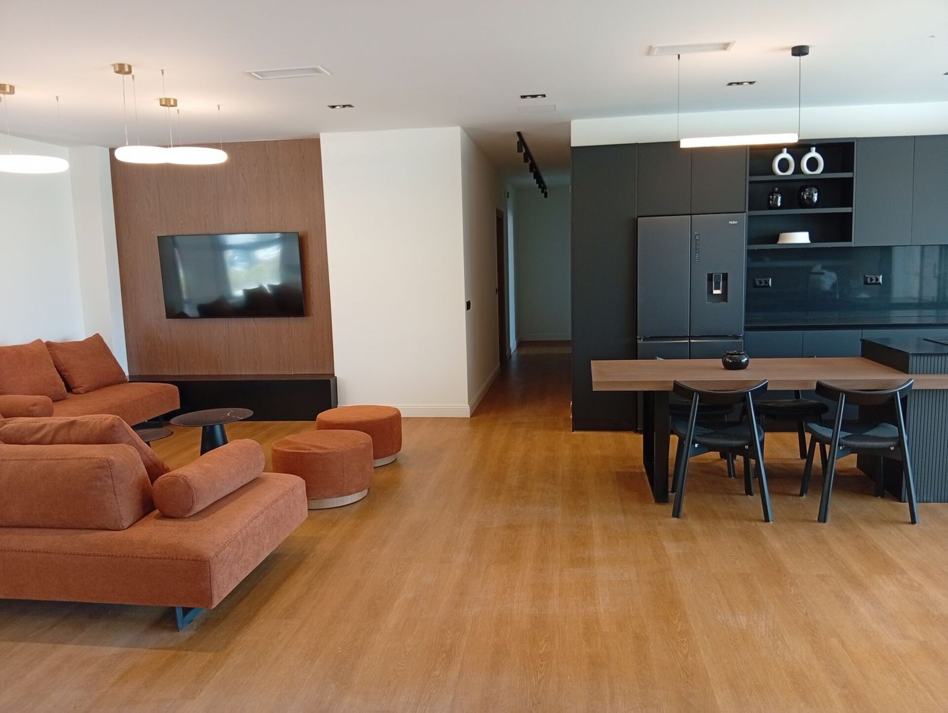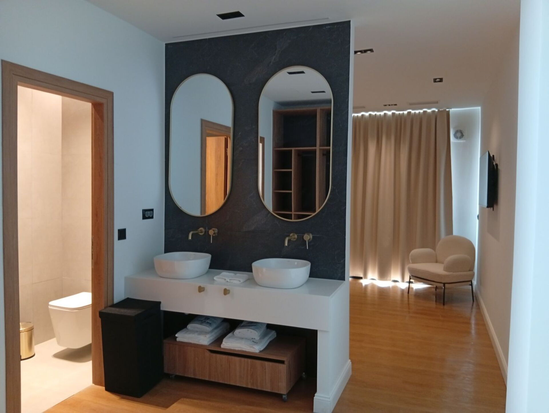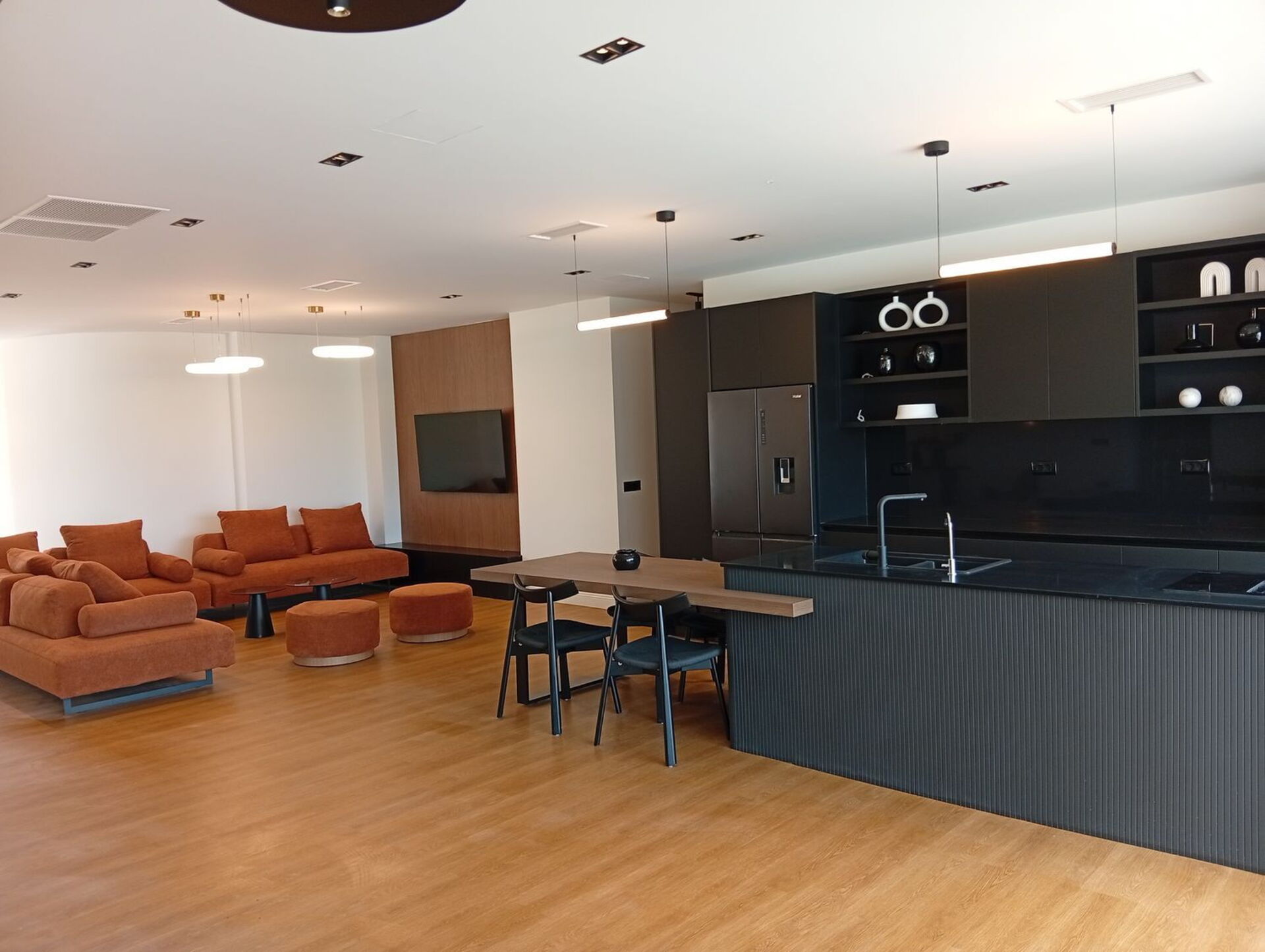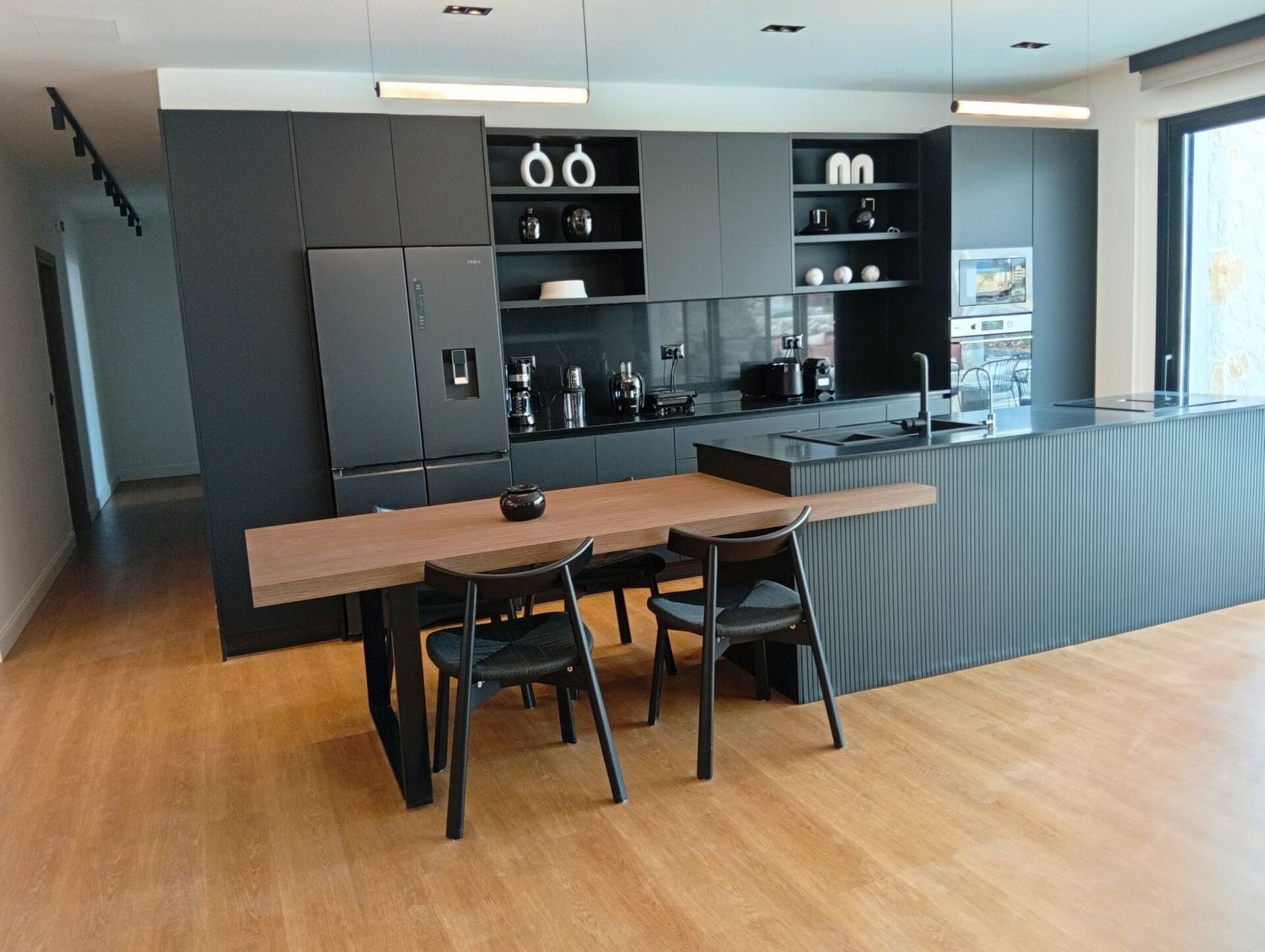 - ruime en lichte woonkamer bestaande uit een zithoek met smart-tv, eethoek en goed uitgeruste keuken (oven, vriezer, koelkast, vaatwasser, wijnkoelkast, espressomachine, waterkoker, broodrooster)