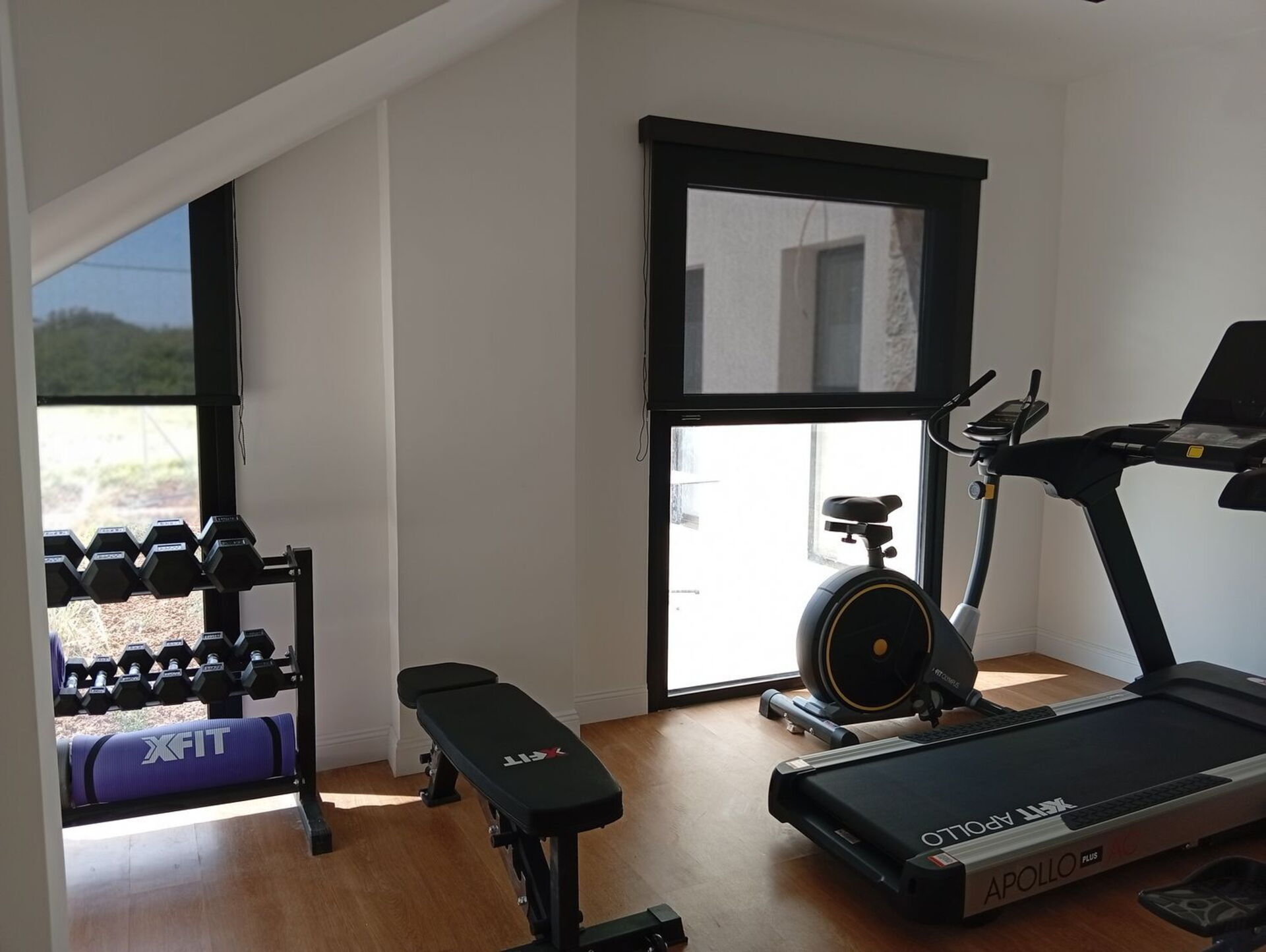 - fitnessruimte (loopband, hometrainer, stepper, TRX-banden, matten en gewichten)