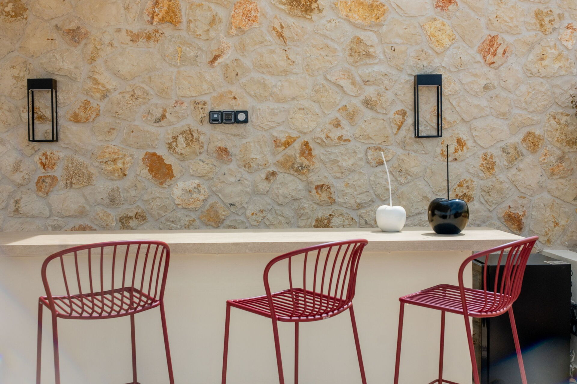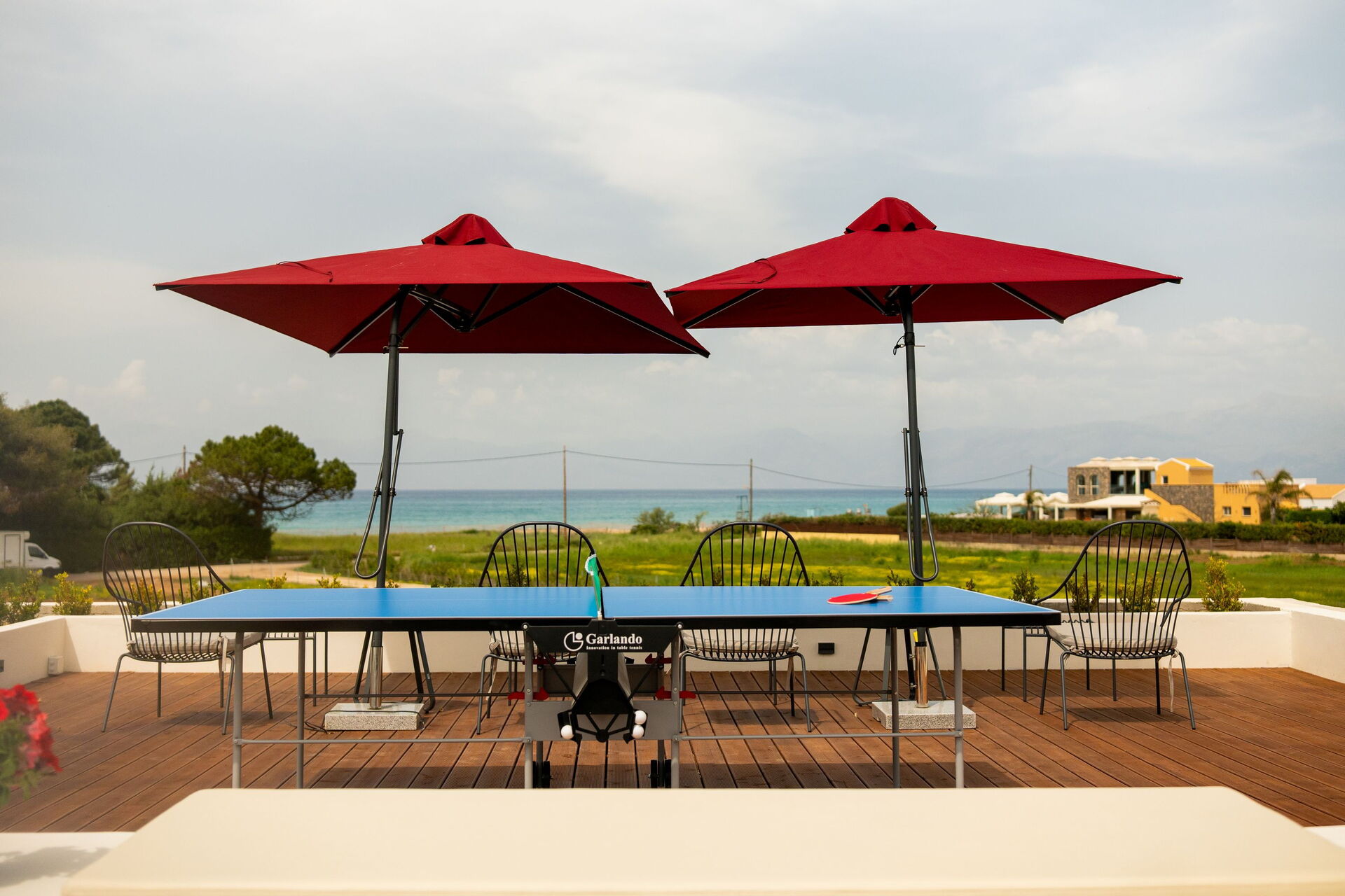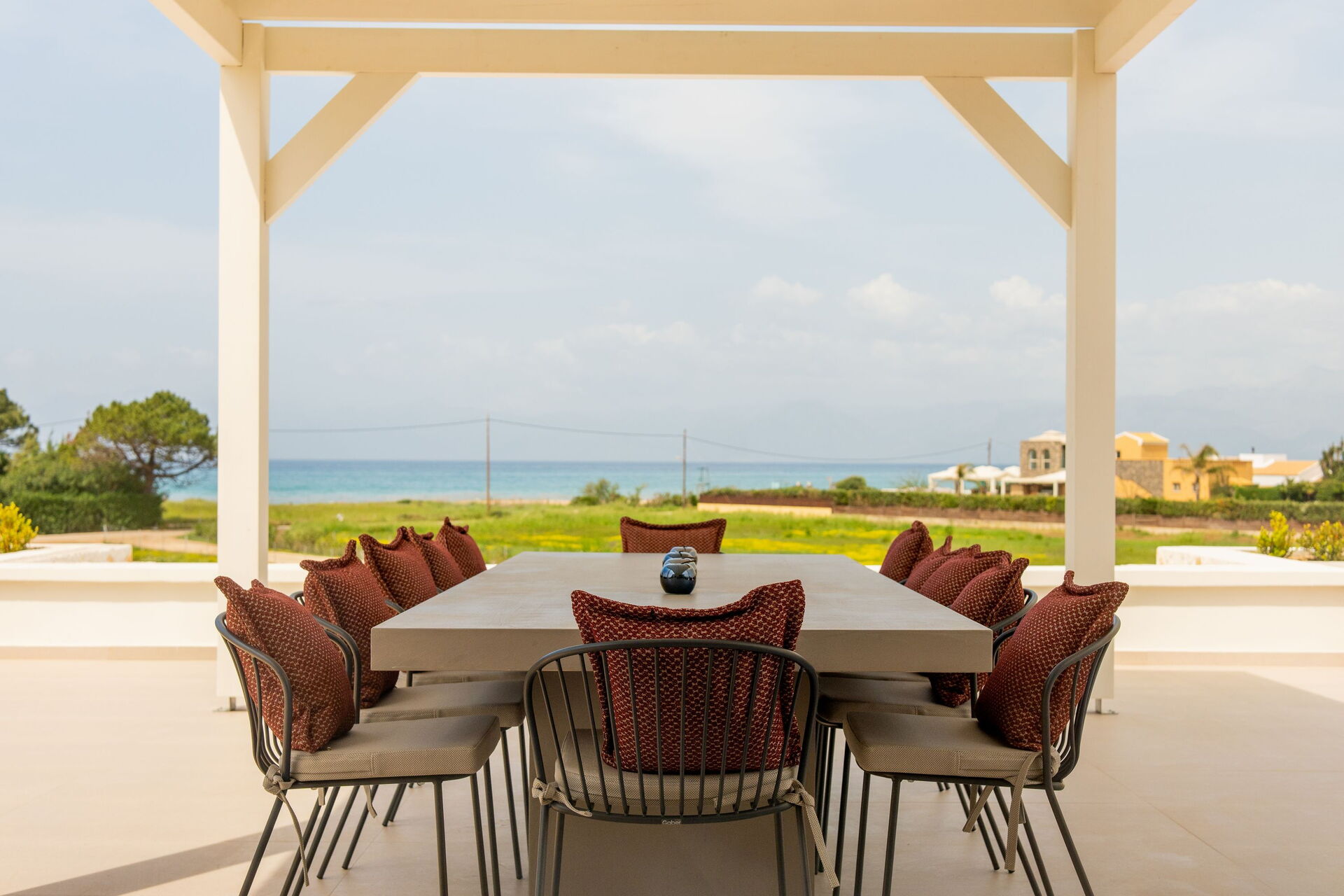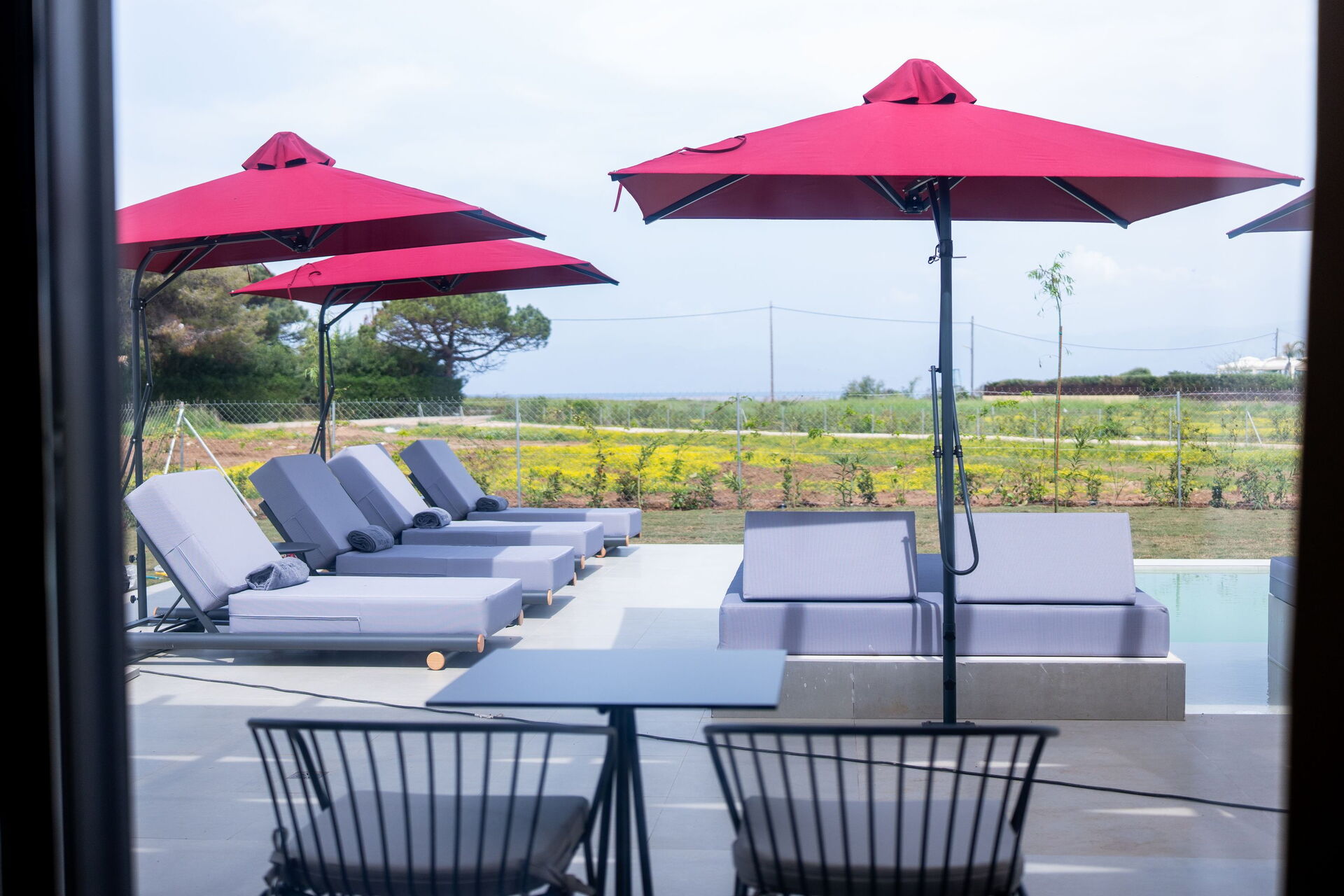 Buiten zijn er meerdere gemeenschappelijke ruimtes waar gasten kunnen genieten van een aangenaam verblijf met familie of vrienden, ofwel ontspannen bij het grote zwembad of op het prachtige dakterras met keuken en een ruime buiten eetplaats. Vanaf hier heb je een panoramisch uitzicht op zee met spectaculaire zonsondergangen, die zorgen voor onvergetelijke momenten tijdens je vakantie in Griekenland.