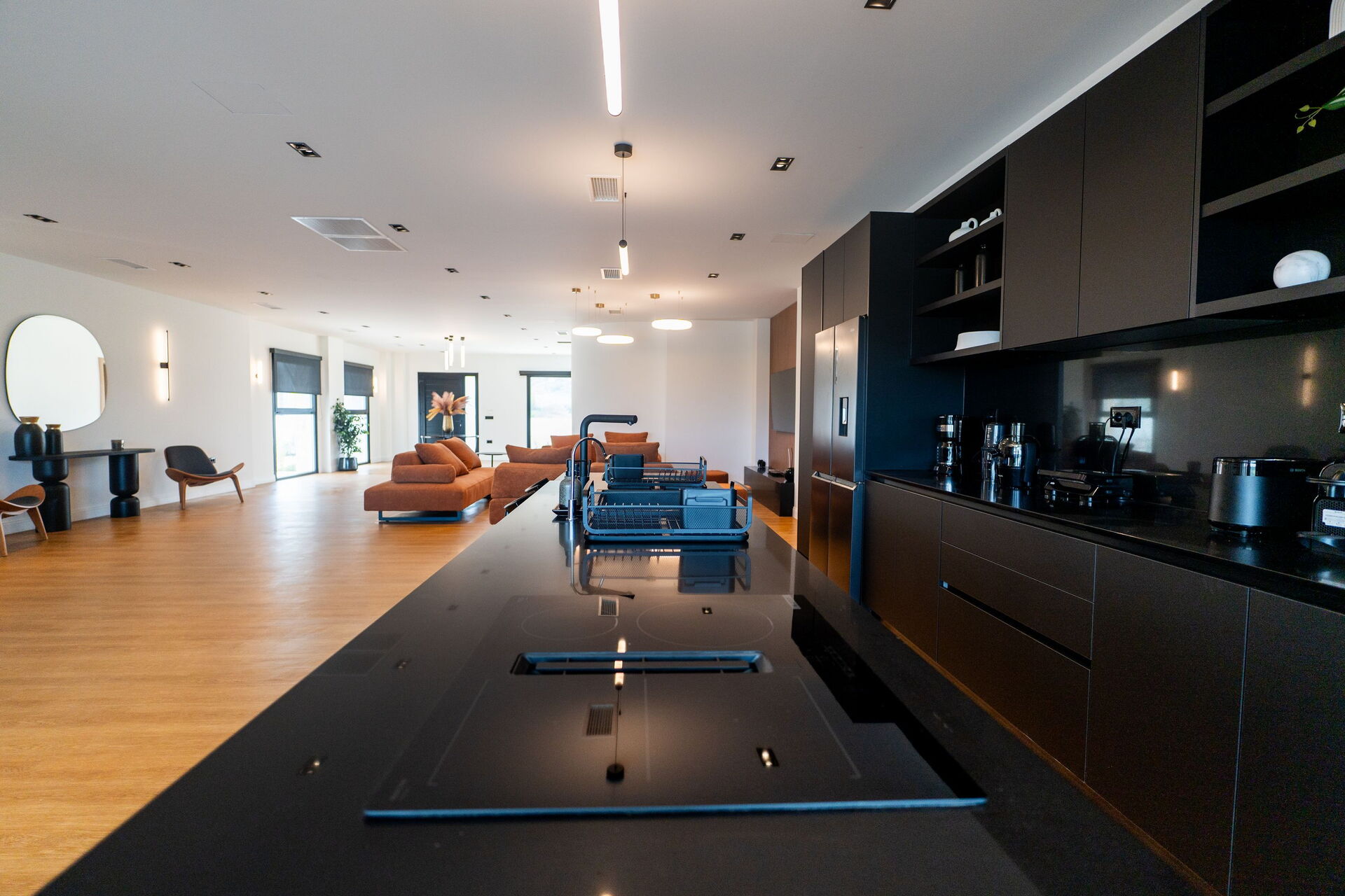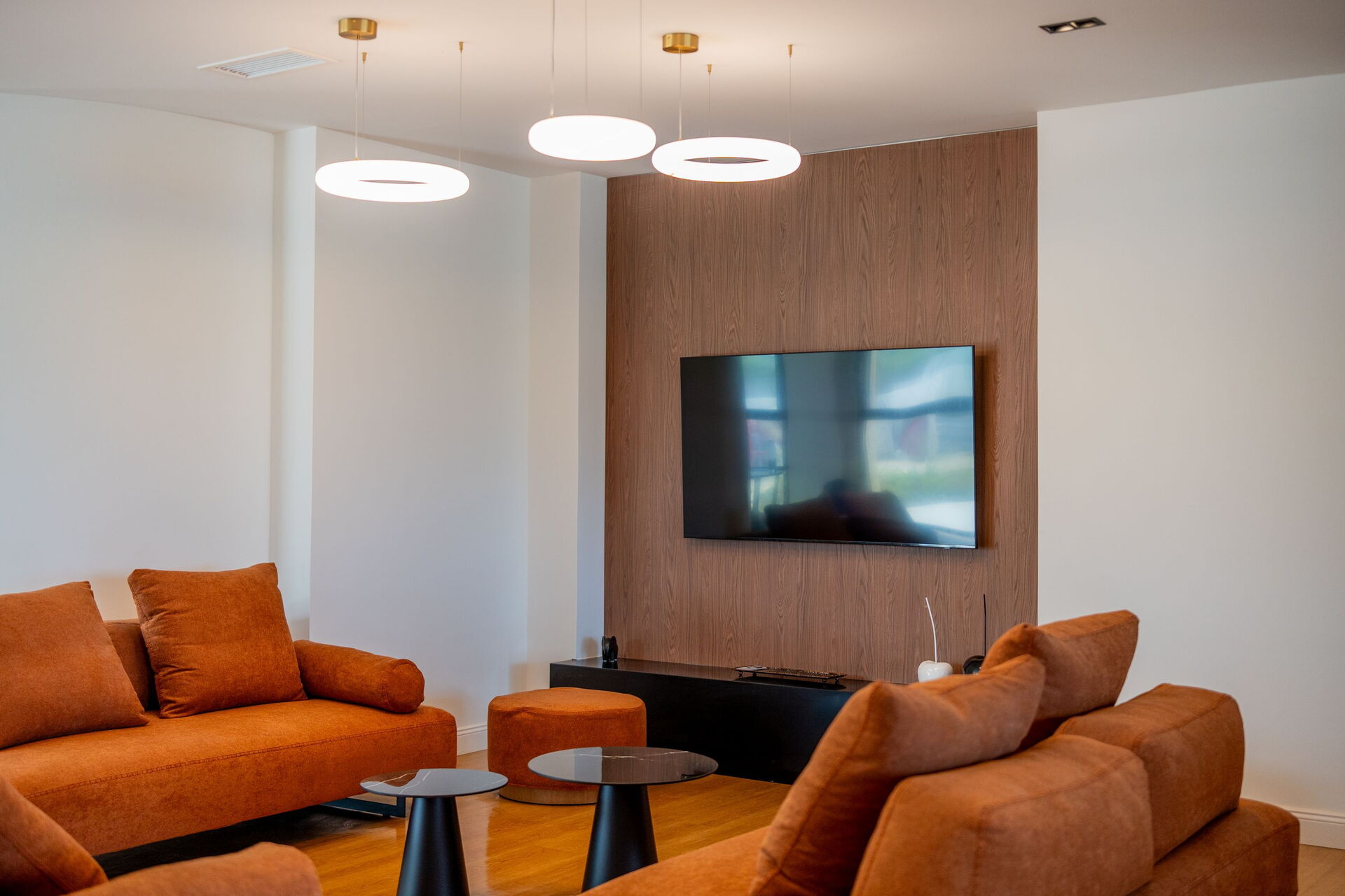 - ruime en lichte woonkamer bestaande uit een zithoek met smart-tv, eethoek en goed uitgeruste keuken (oven, vriezer, koelkast, vaatwasser, wijnkoelkast, espressomachine, waterkoker, broodrooster)