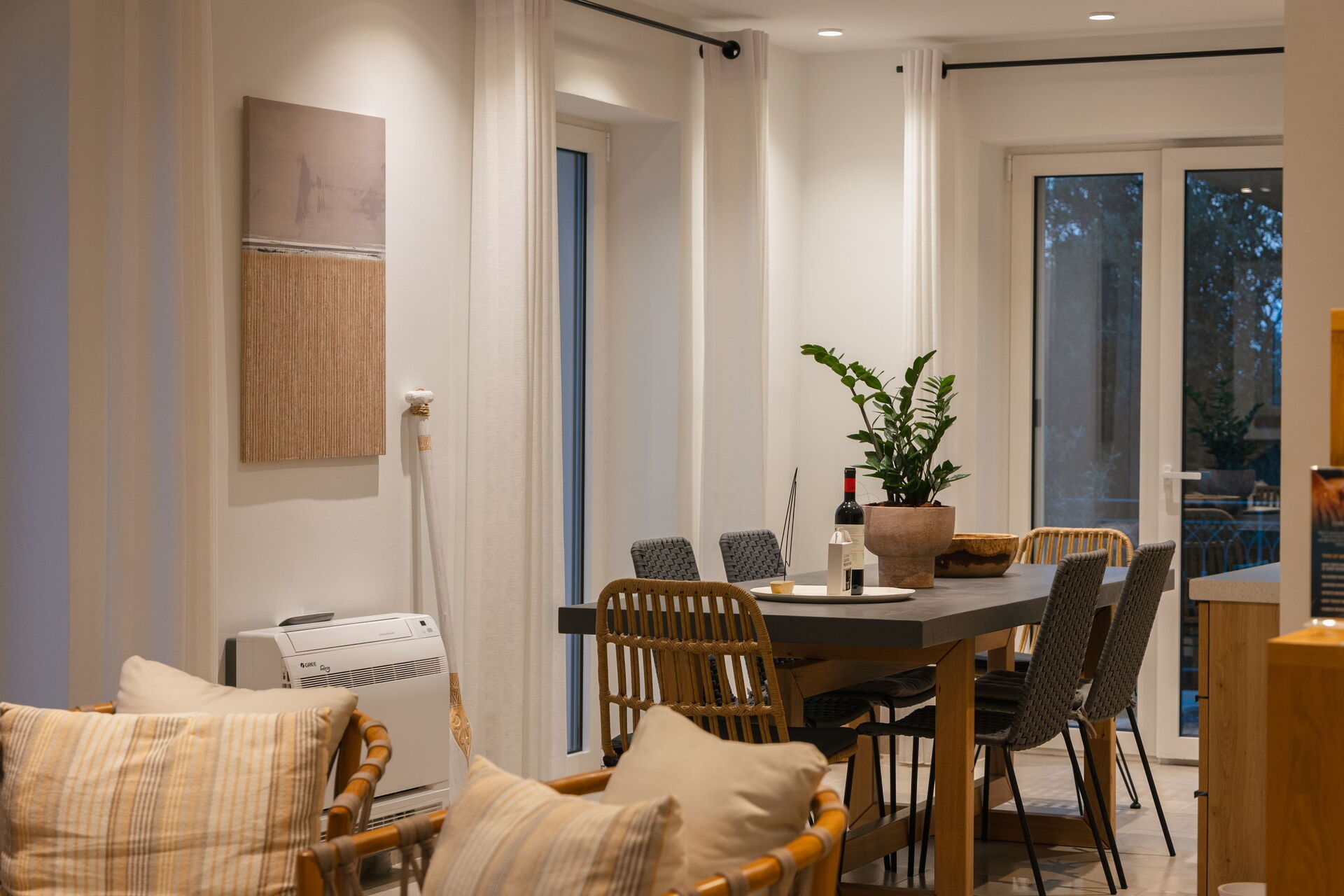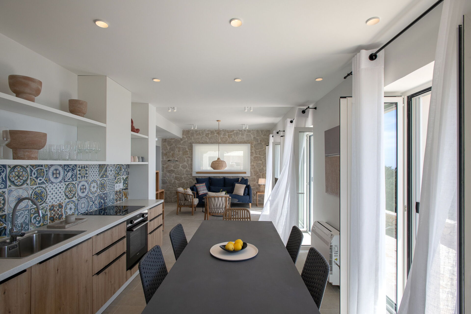 Grote ramen zorgen voor veel natuurlijk licht en een prachtig uitzicht. Zelfs op de heetste zomeravonden waait er een verfrissende zeebries en Villa Thea Mare Maistro biedt alles wat u nodig heeft voor een heerlijke vakantie aan zee op Corfu!