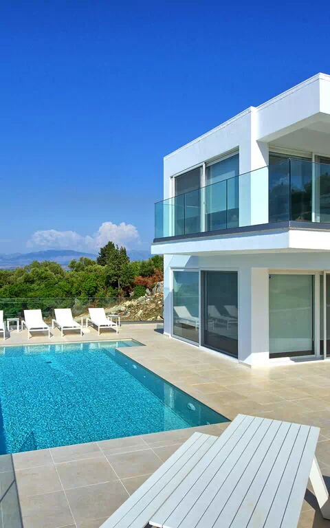Vakantievilla met privézwembad en uitgebreide privéterrassen langs de beroemde noordoostkust van Corfu.