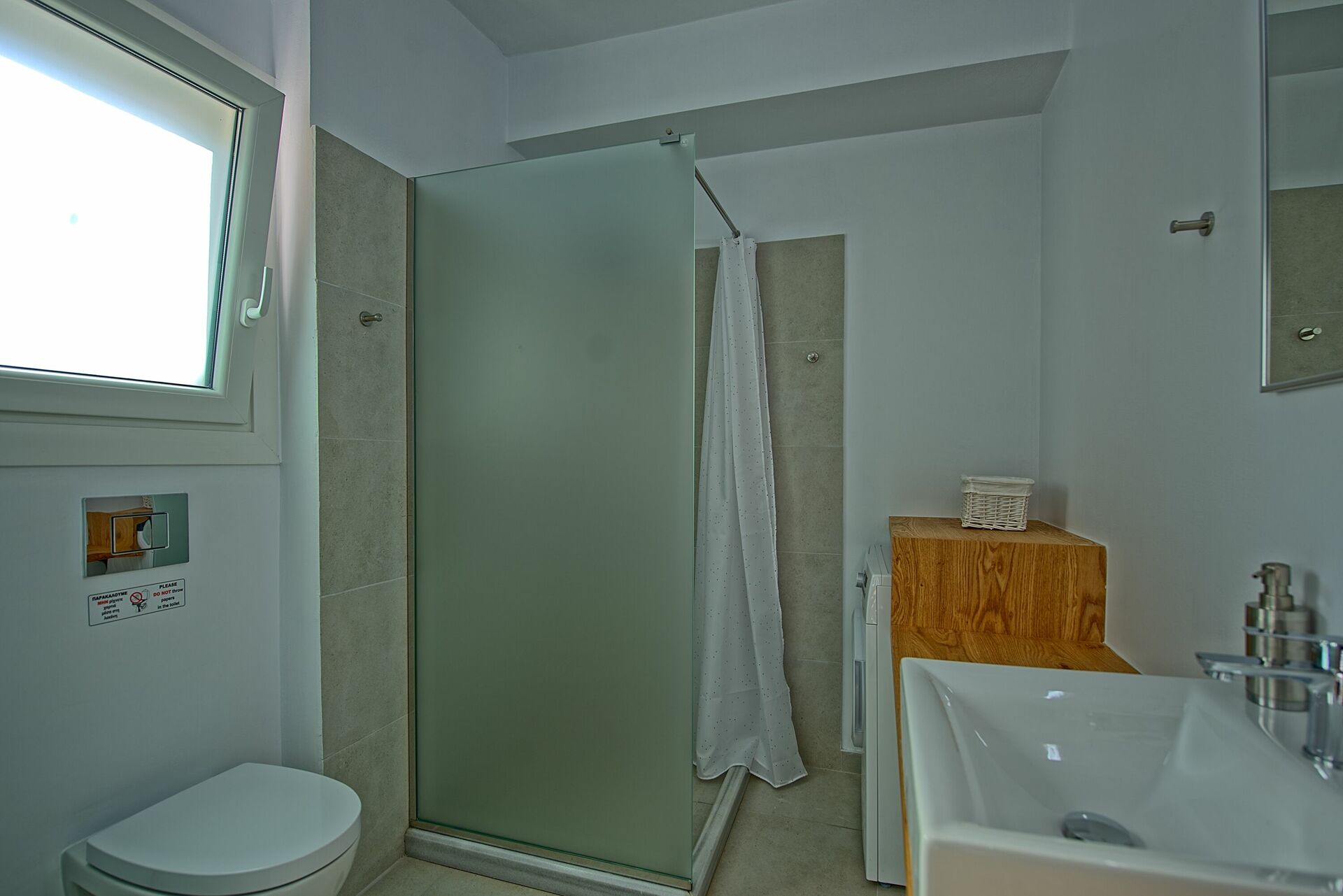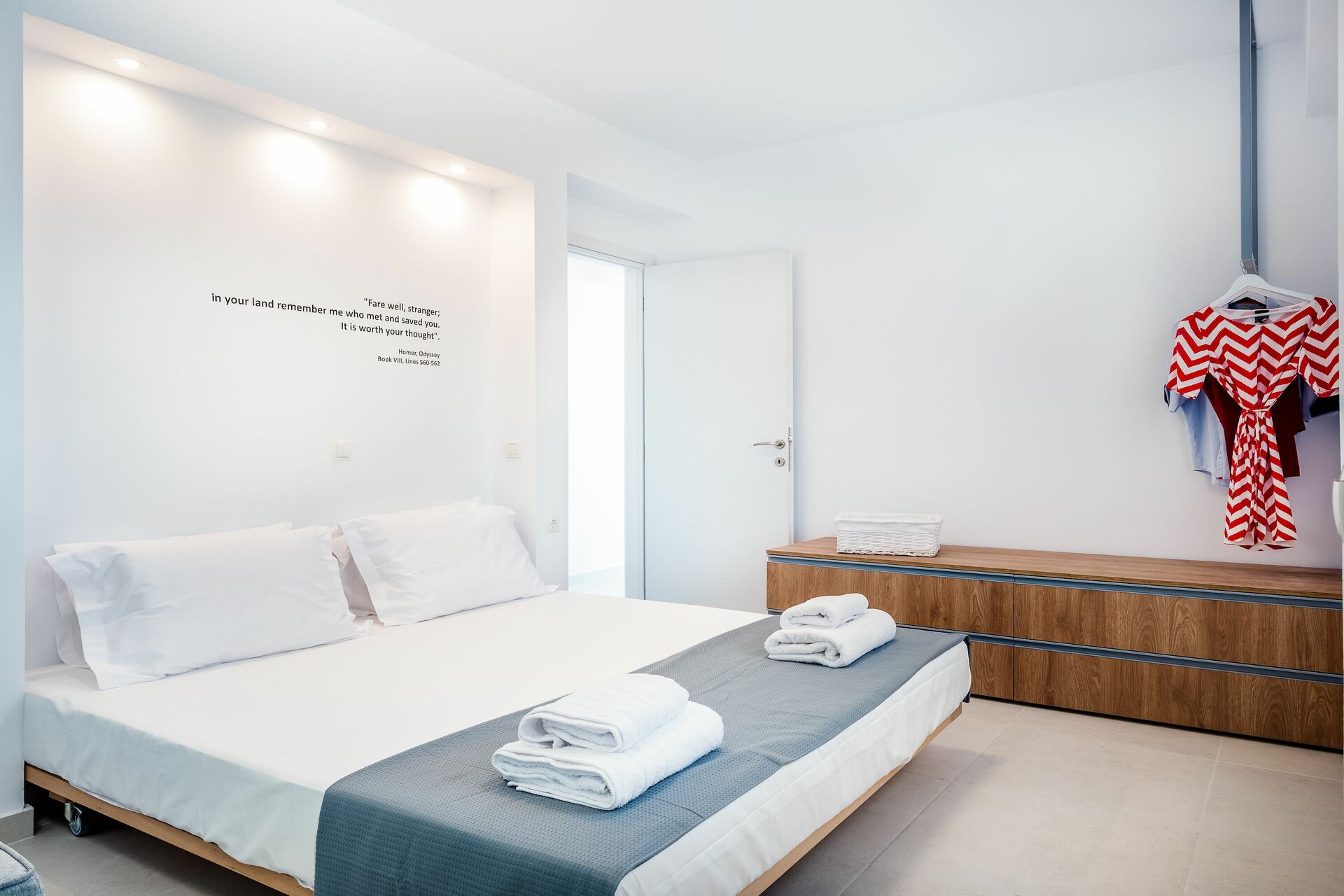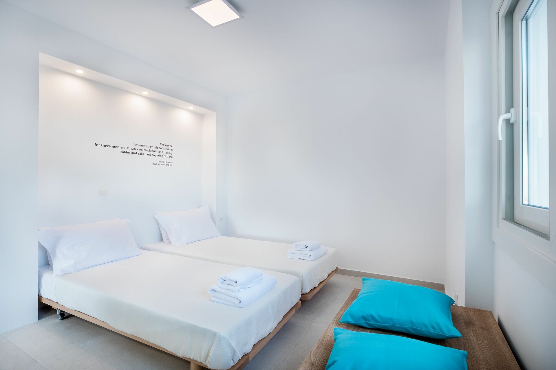Binnen is deze gloednieuwe villa verdeeld over twee verdiepingen verbonden via een zijtrap. Met enorme openslaande deuren, grote ramen en designmeubilair geniet Villa Nafsika van alle zon en licht die Griekenland kan bieden. Op de begane grond is er een ruime woonkamer (banken, Wi-Fi, airconditioning) met een aangrenzende keuken (volledig uitgerust) en twee slaapkamers (beide en-suite). Een slaapkamer heeft een tweepersoonsbed en een bank (die kan worden omgezet in een grote slaapbank voor één persoon), terwijl de andere slaapkamer twee losse bedden heeft. De bovenste verdieping is identiek aan de onderste, behalve dat de slaapkamer slechts een tweepersoonsbed heeft en geen extra slaapbank. Uitgebreide terrassen op beide verdiepingen bieden een magisch uitzicht over de Ionische Zee en de Albanese kust.