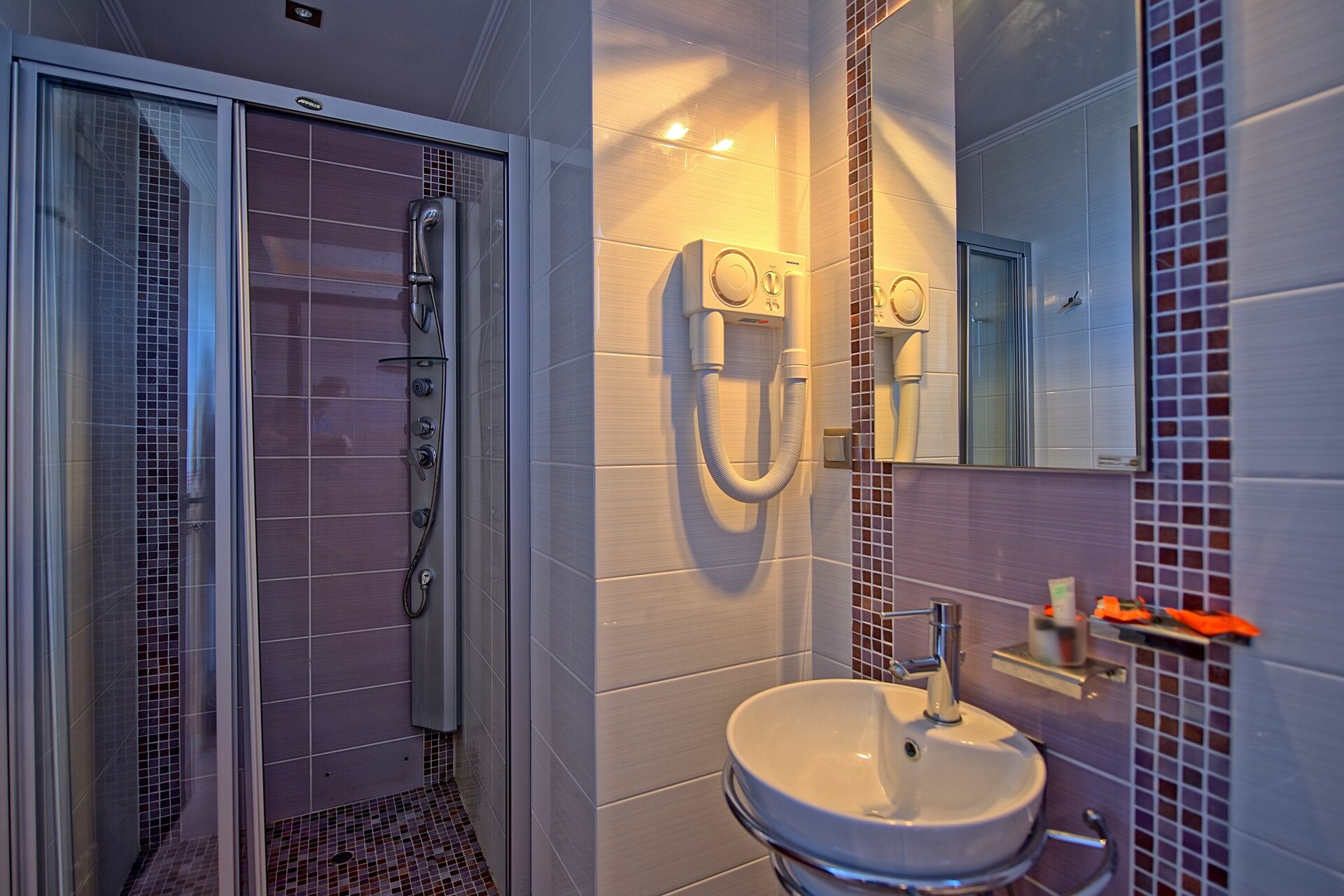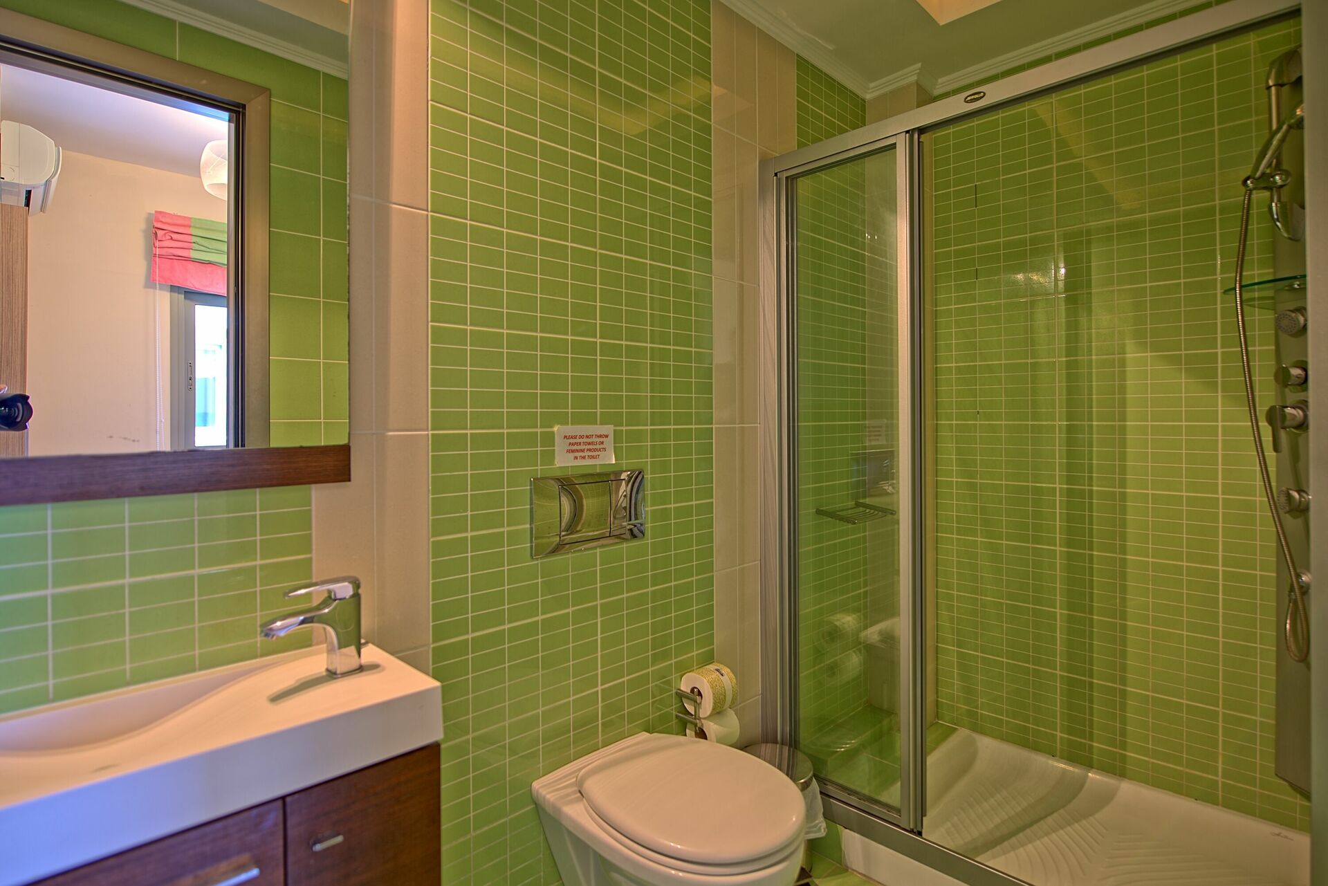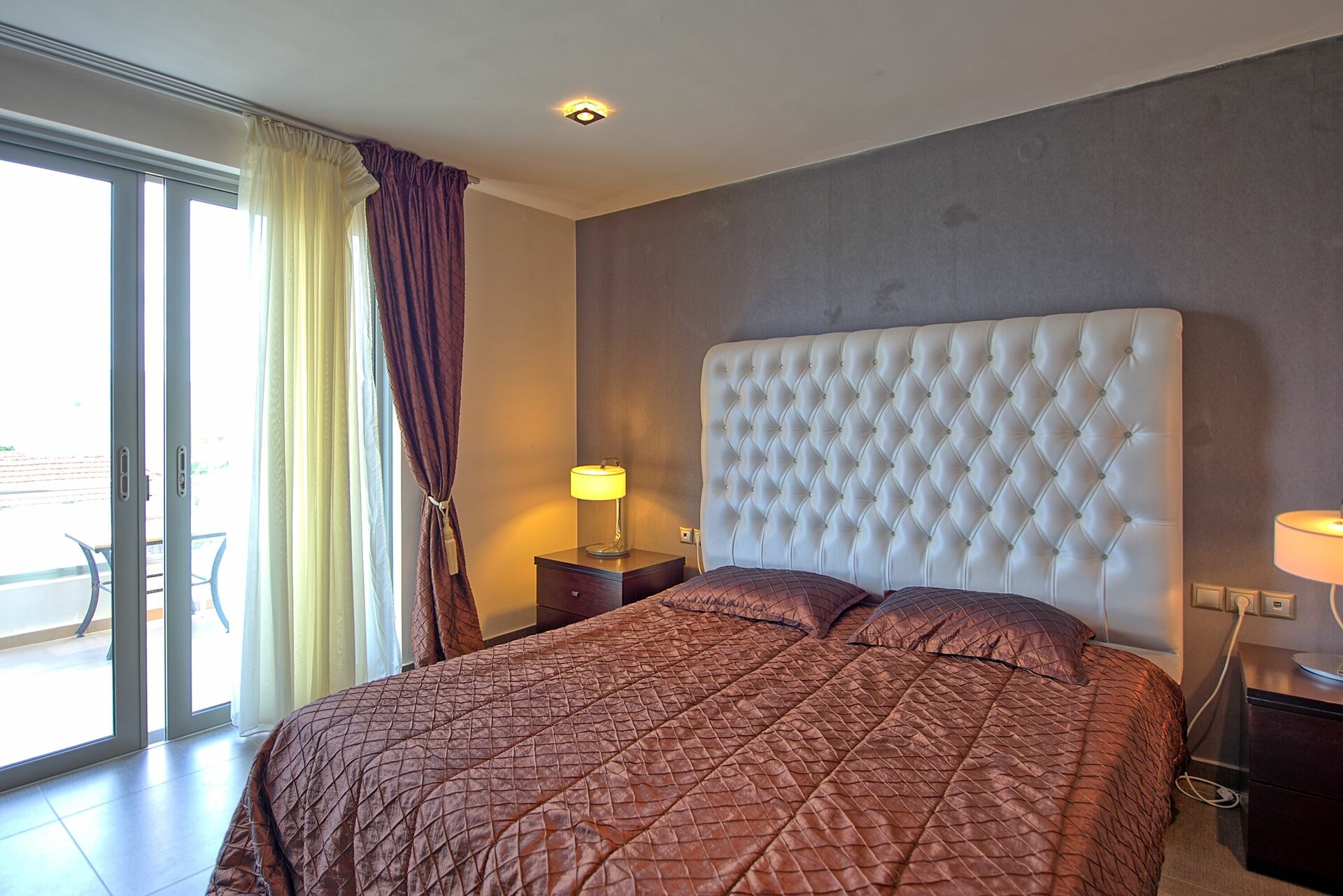 Tweede verdieping: hoofdslaapkamer met tweepersoonsbed met eigen badkamer met bubbelbad en terras; tweepersoons slaapkamer met eigen badkamer met douche; eenpersoonskamer (extra bed voor één persoon kan op aanvraag gratis worden toegevoegd) met eigen badkamer met douche.