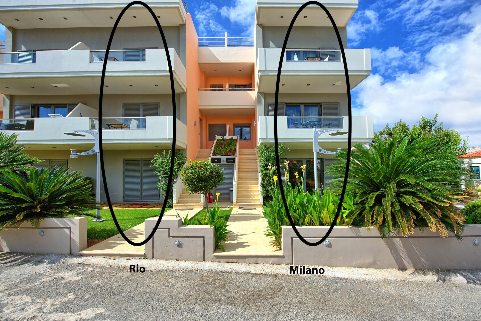 Afstanden: zee 100 meter, Agia Marina (alle soorten winkels) 100 meter, Cabana Mare Beach Club 300 meter, Chania 11 km, luchthaven 30 km.