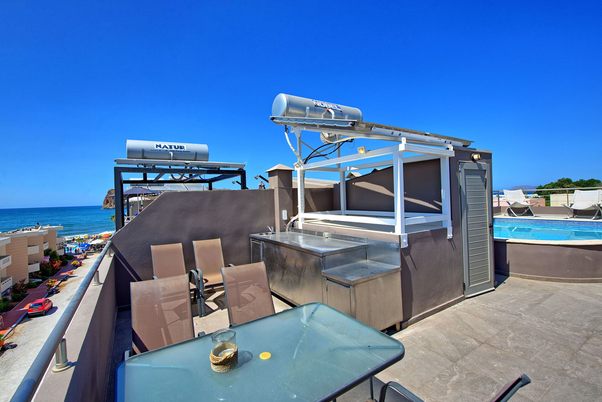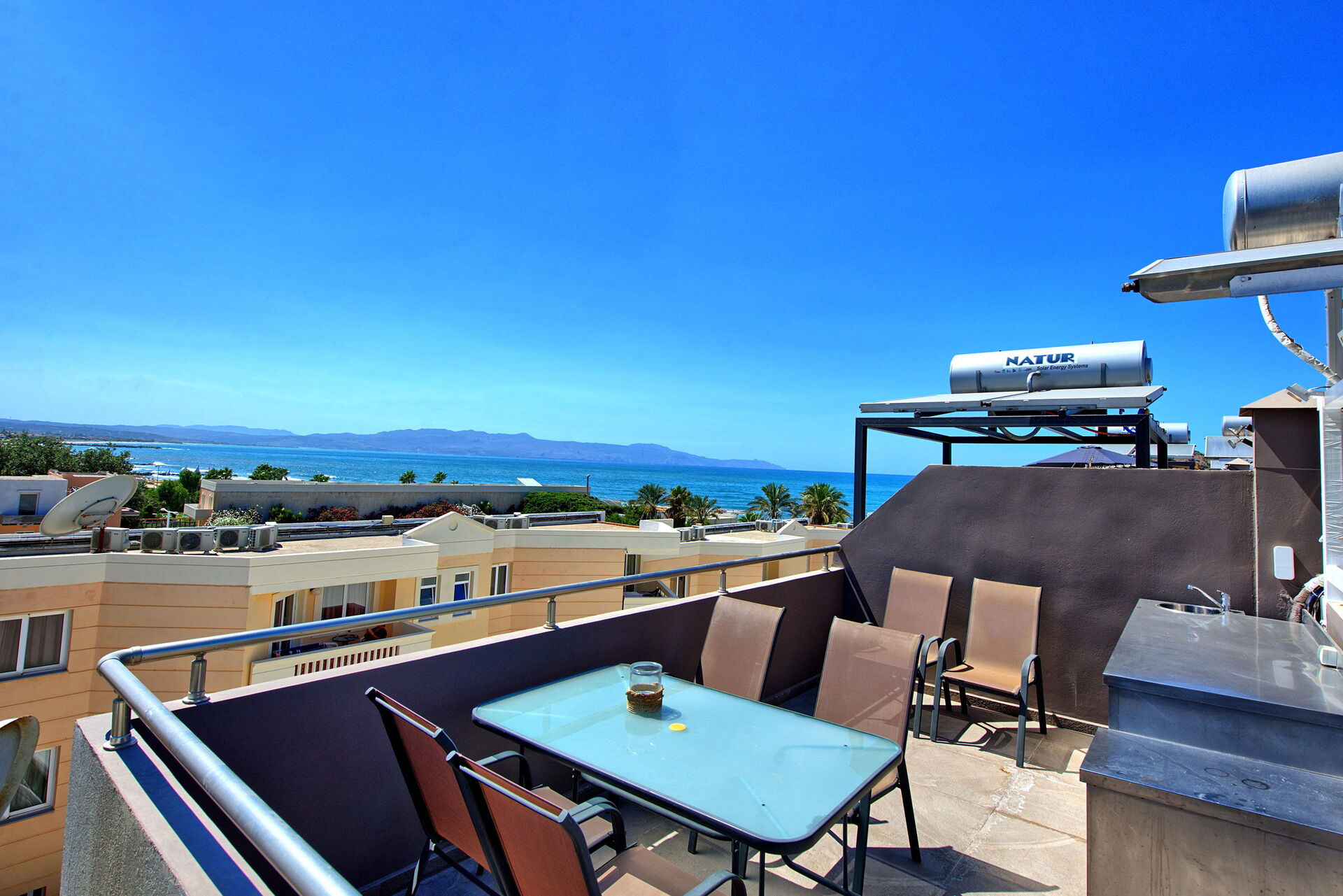 Afstanden: zee 100 meter, Agia Marina (alle soorten winkels) 100 meter, Cabana Mare Beach Club 300 meter, Chania 11 km, luchthaven 30 km.