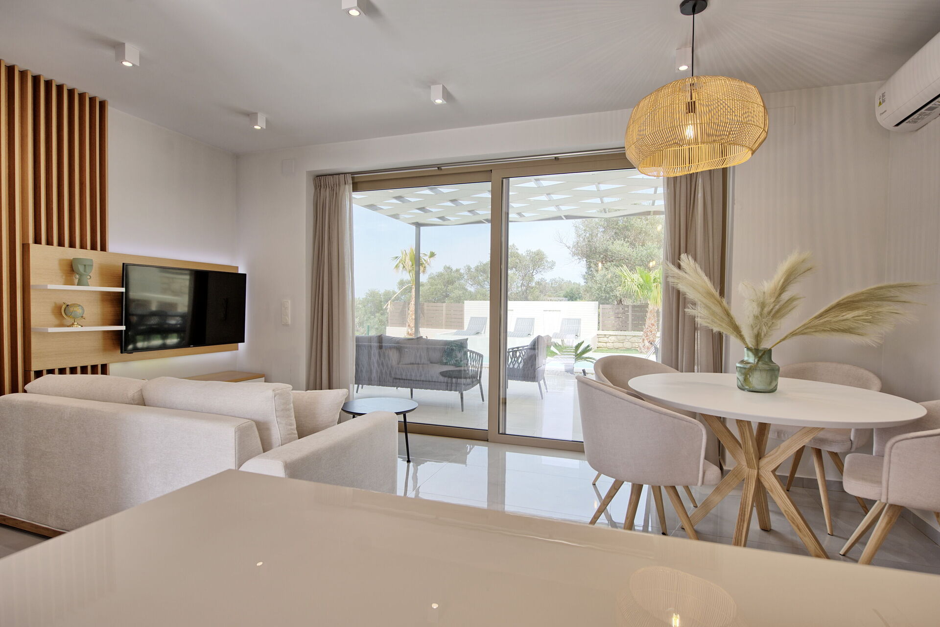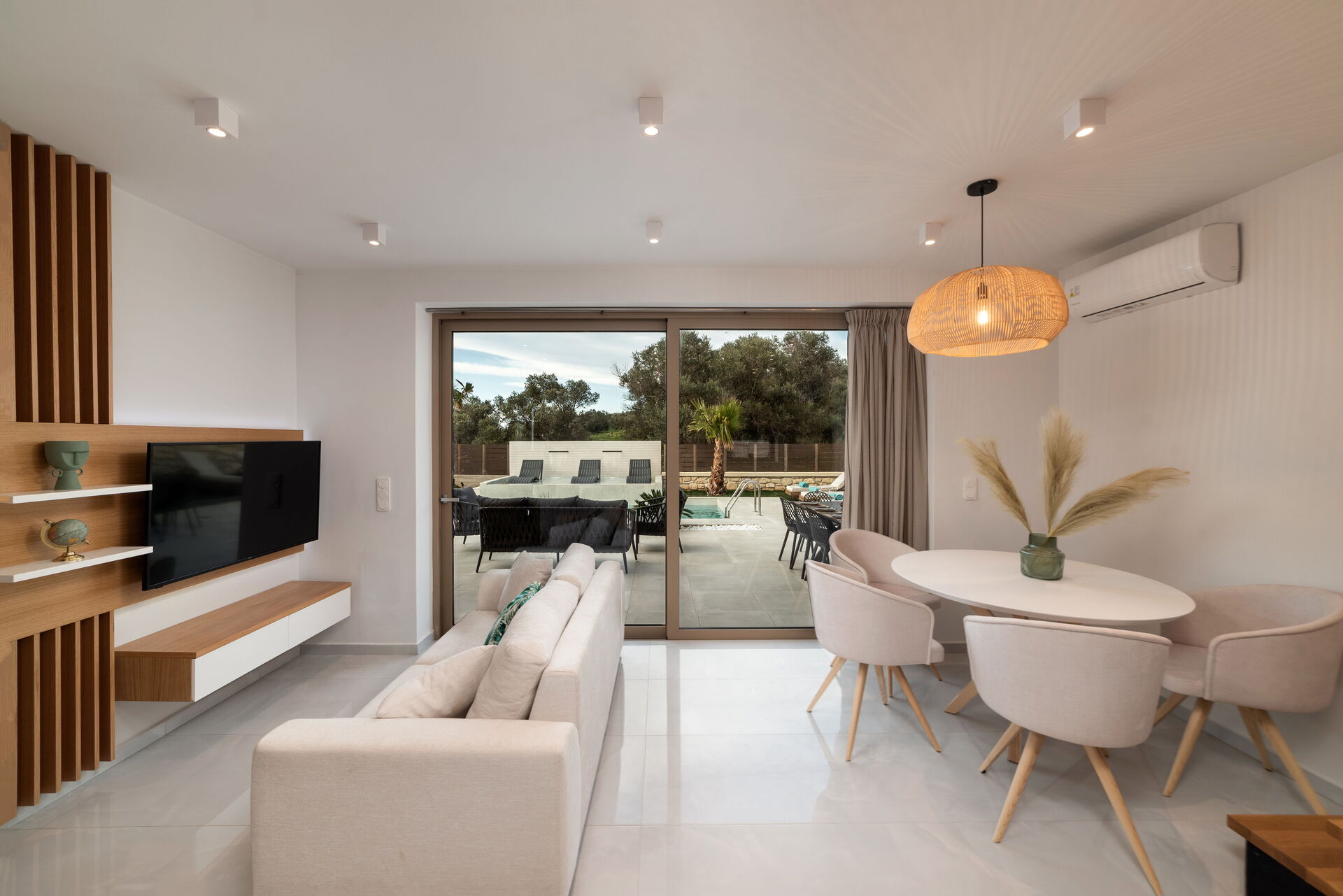 - airconditioning in de slaapkamers en het woongedeelte