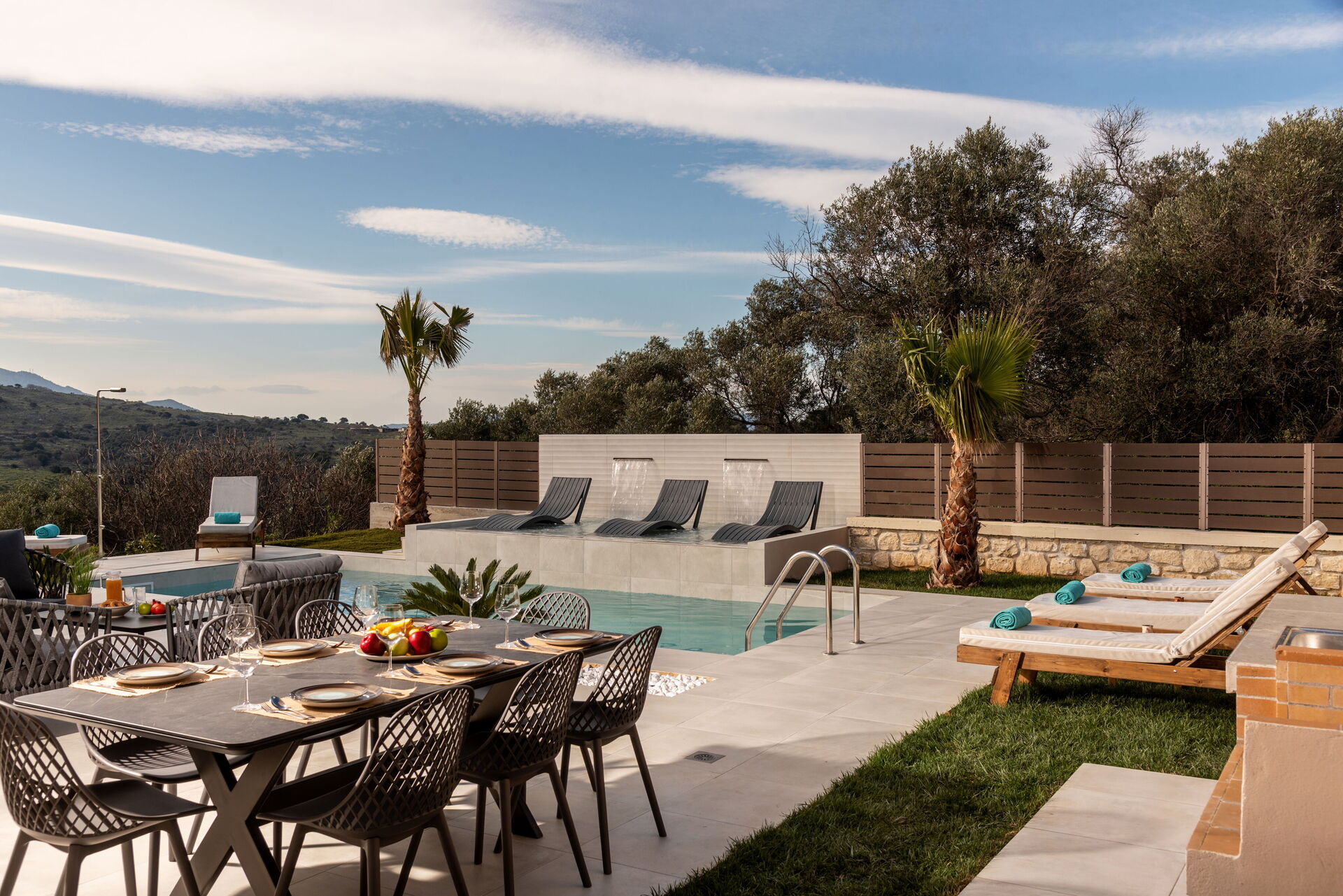 Buiten biedt de villa een eethoek en een barbecue; een privézwembad om op zomerse dagen af te koelen en te genieten van de rust en stilte van het platteland; en een prachtig panoramisch uitzicht op de omliggende bergen.