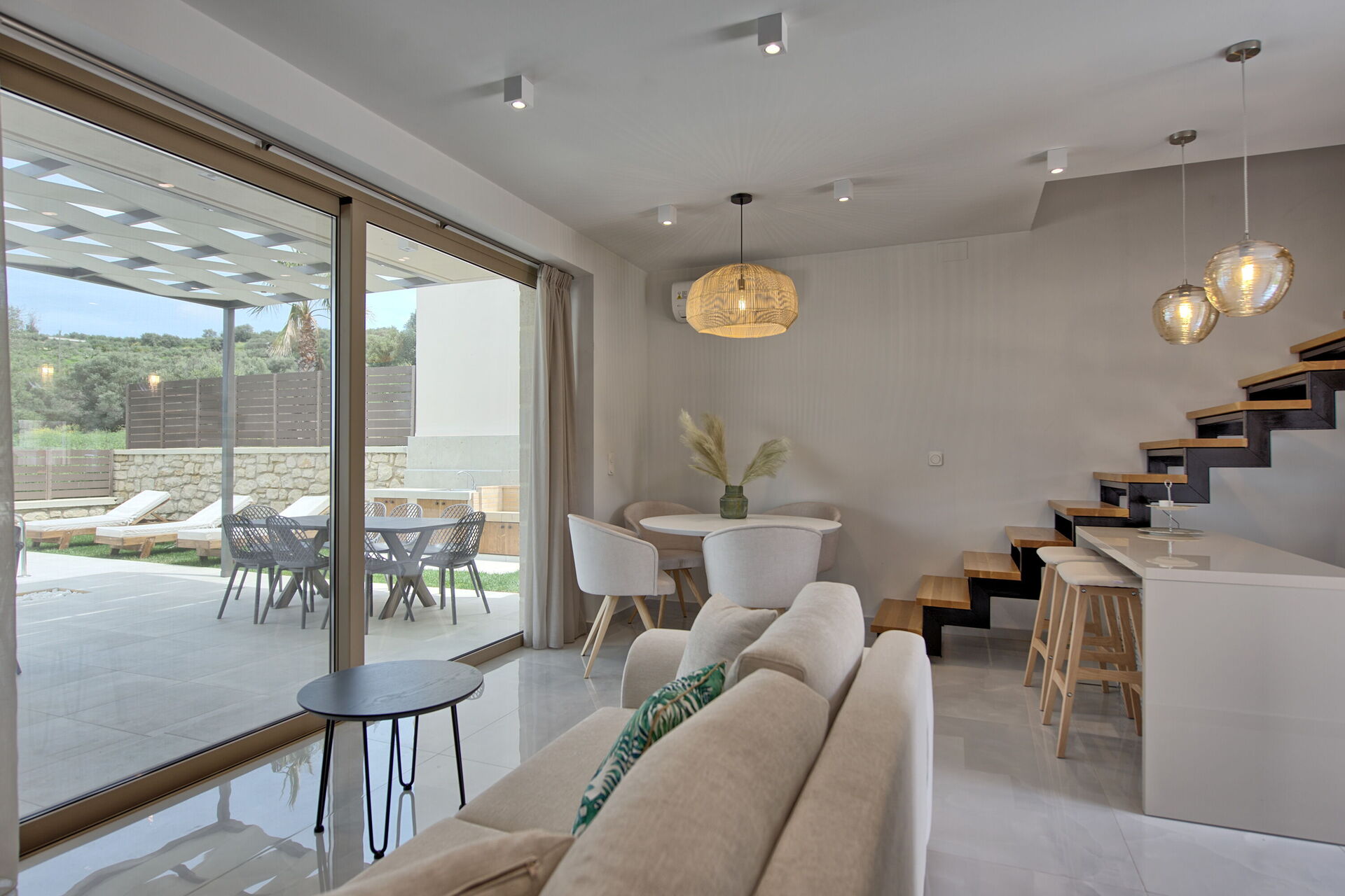 De villa is gloednieuw en zeer gastvrij, met een licht, comfortabel interieur en moderne meubels. Met twee verdiepingen, 3 tweepersoonsslaapkamers en 1 slaapkamer met een stapelbed, is Villa Silentium Olia geschikt voor maximaal 7/8 personen en is het perfect voor een vakantie met familie of vrienden.