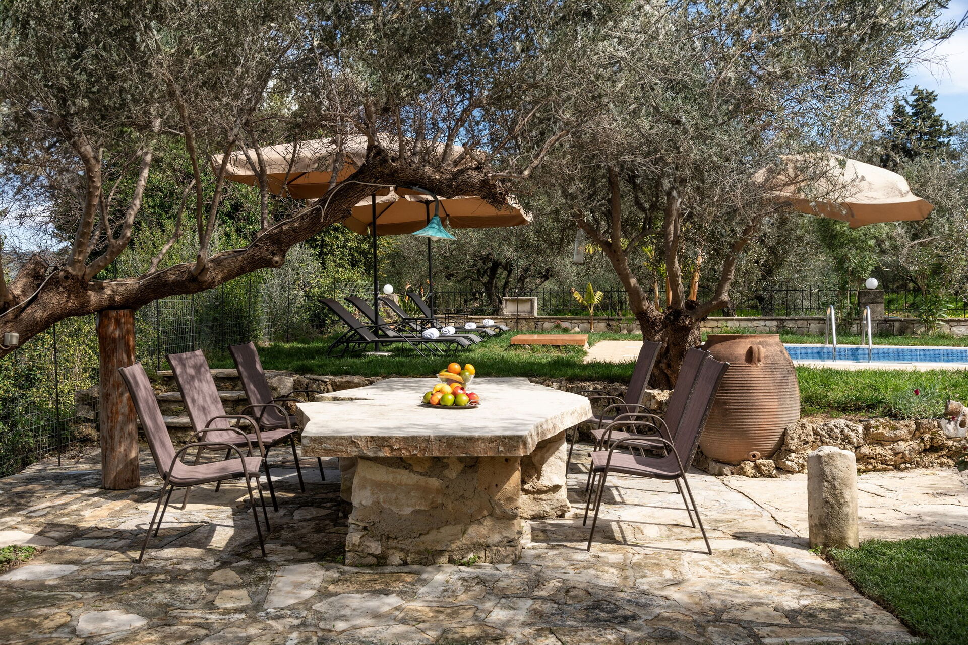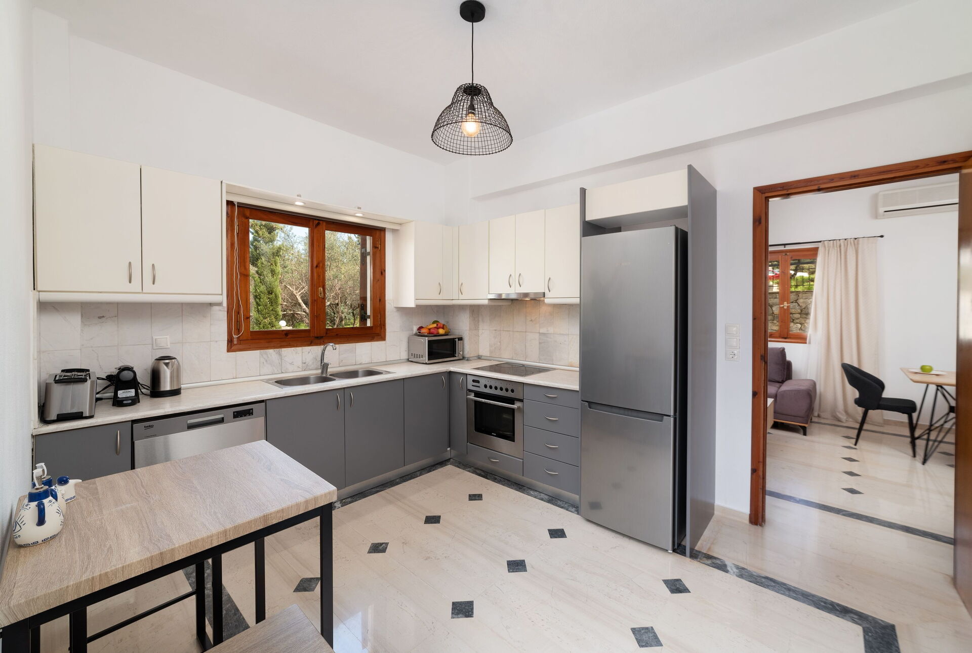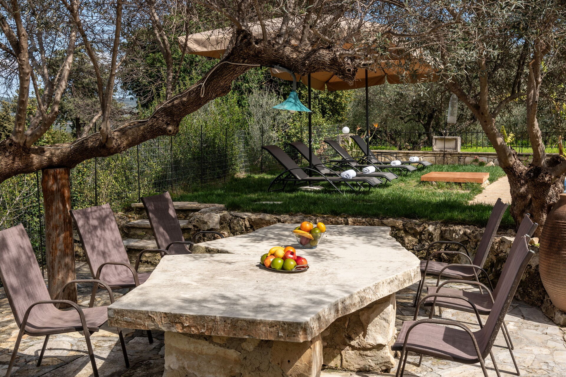 Excellent place for a family vacation. The hosts, Silvia and Jorgos, are most friendly and welcoming, they made sure we had a great time staying at their house. They came with gifts to us during our stay, like olive oil, wine, eggs and spices. The villa is situated in a beautiful garden which provides a wide range of fruits, vegetables and herbs that can be used freely. The stone grill is perfect for a nice barbecue, and the pool area is relaxing. The house is very clean and has everything you need. It is necessary to have a car to get around, to the beaches, and for shopping. We warmly recommend this place to everyone, and would like to come back some day!