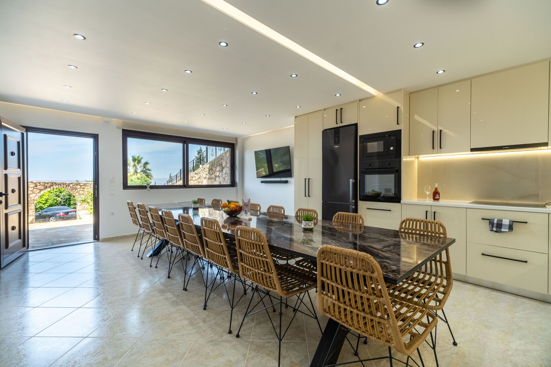 The star of the show has to be the outside space which is incredible - a panoramic pool, sun beds and a great outside dining space which we used every meal.