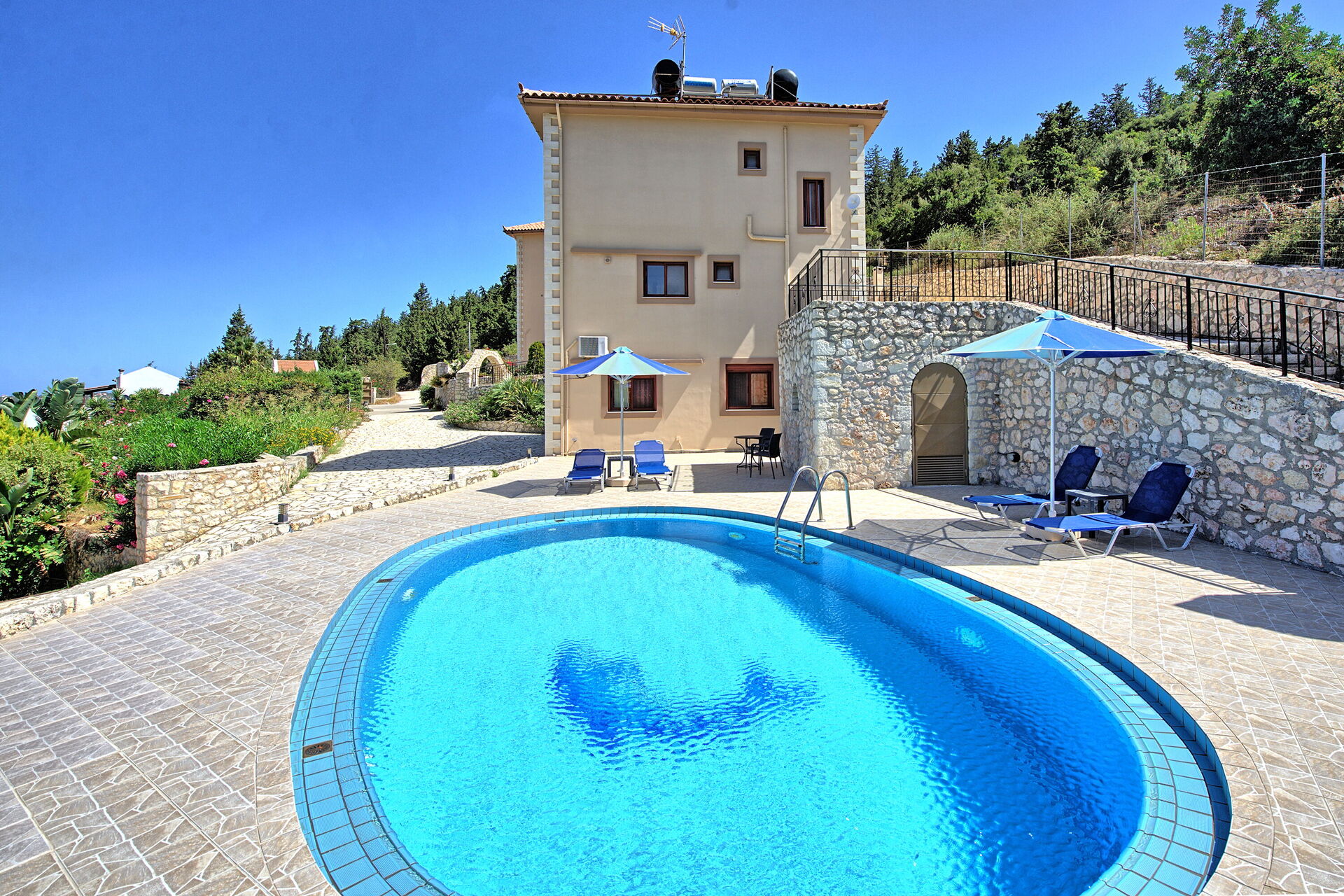 In totaal kunnen maximaal 16 gasten comfortabel worden ondergebracht in deze villa met privézwembad en panoramisch uitzicht op zee.