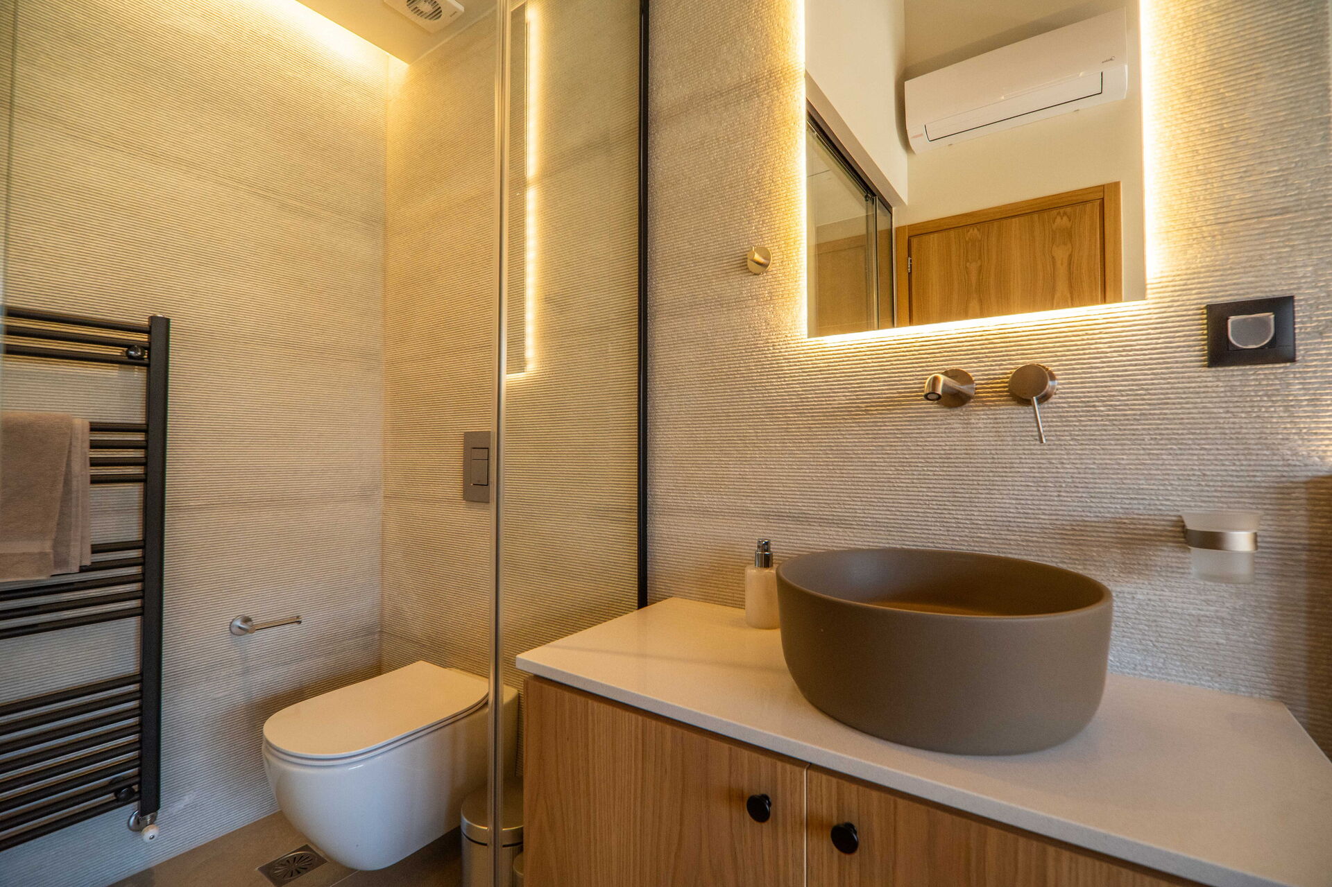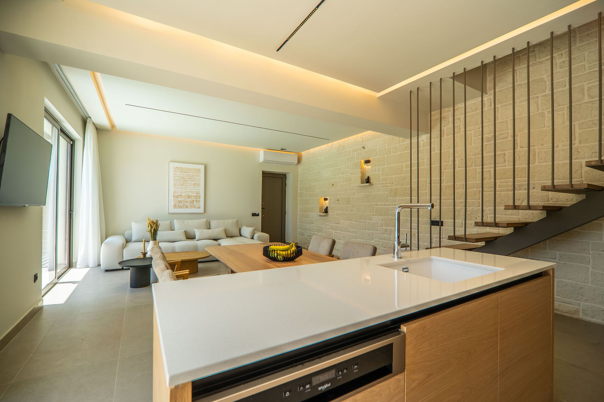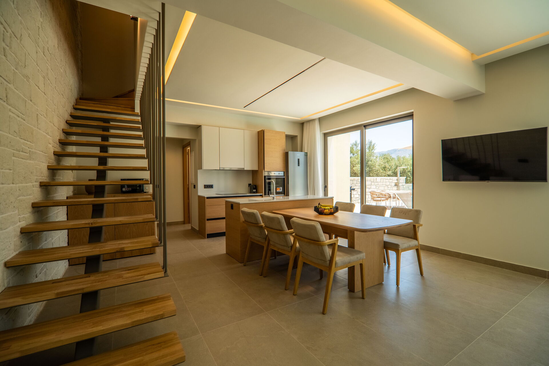 And we had Great contact with Nikos, who cared for us so well and answered all of our questions very carefully and quickly. Only points were that there was something up with the water pressure in the showers (but it is possible that this had something to do with the water pipes in the area) and the kitchen equipment could have been a bit better, but Nikos said that they will buy more gadgets and equipment soon. Last thing- there is a small street in Front of the House where Young People sometimes drive along quite loud with their motorbikes, but all in all, the location is amazing- quite but though very close to Lake Kournas and Georgioupoli by car. Dream house!