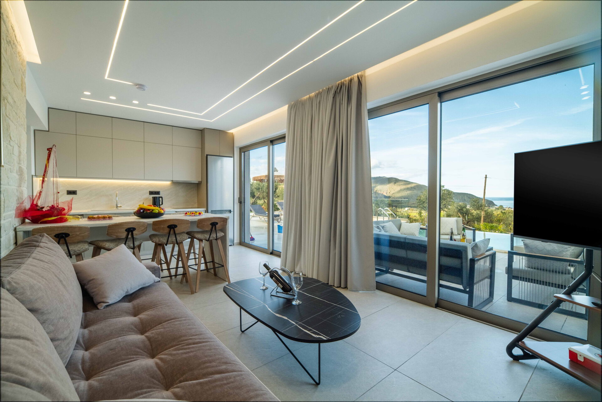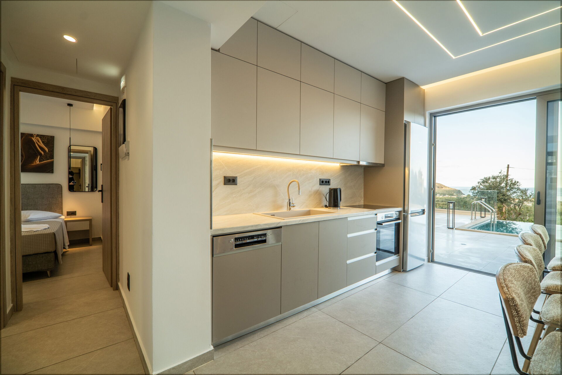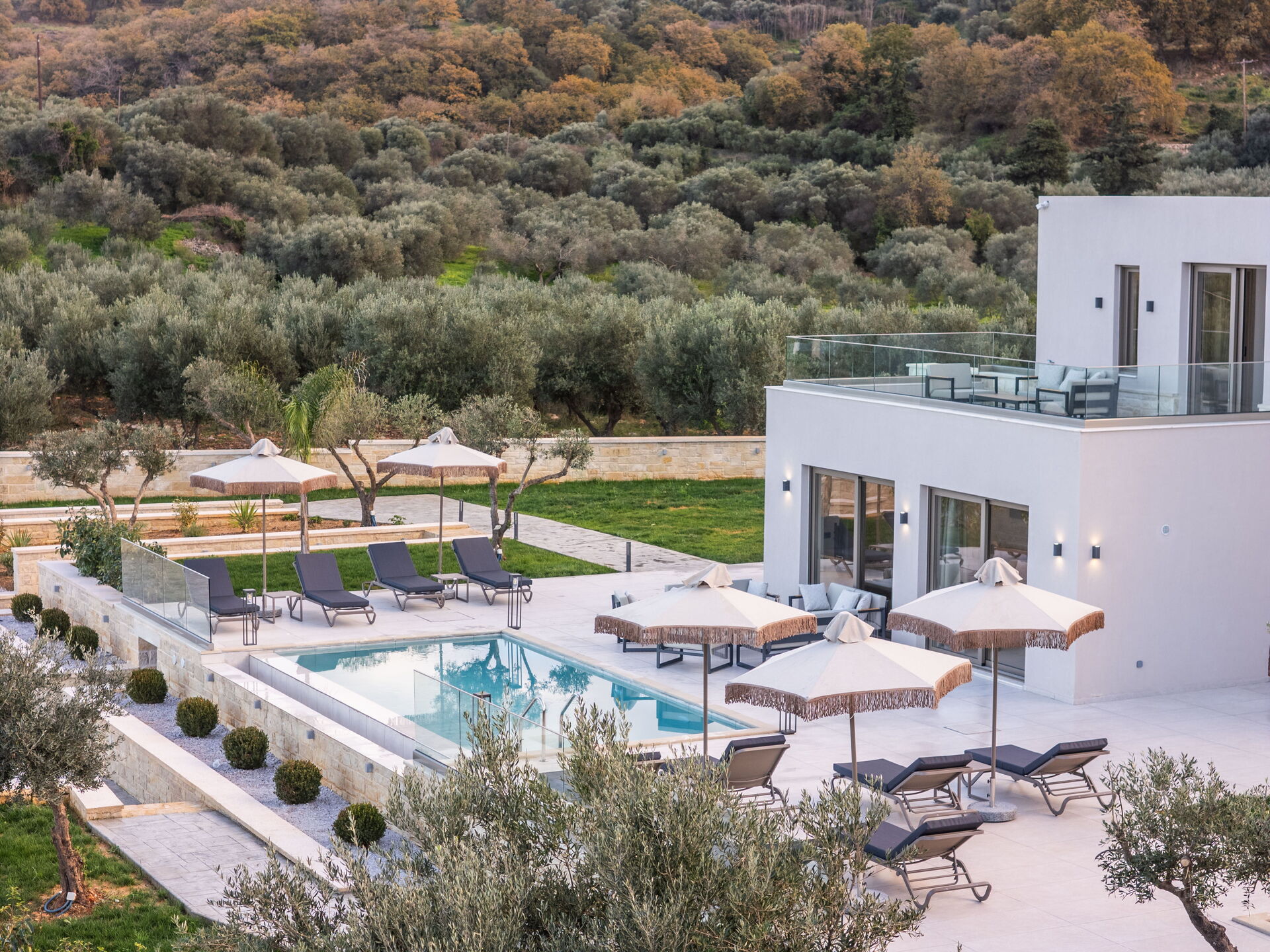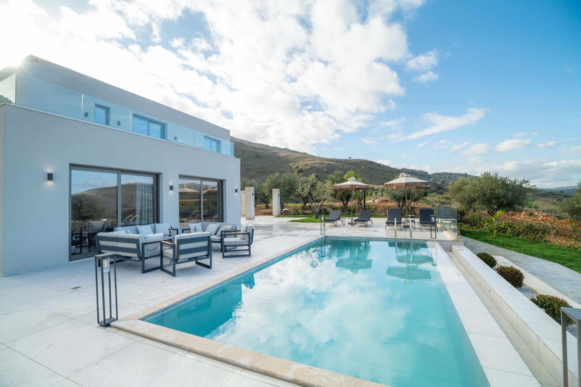 De woning werd voltooid in januari 2026, waardoor alles in Villa Vasilissa volledig nieuw is. Op het terrein bevindt zich een sfeervol zwembad met panoramisch uitzicht op de zee en het omliggende Kretenzische landschap – perfect voor een verfrissende duik tijdens warme zomerdagen.