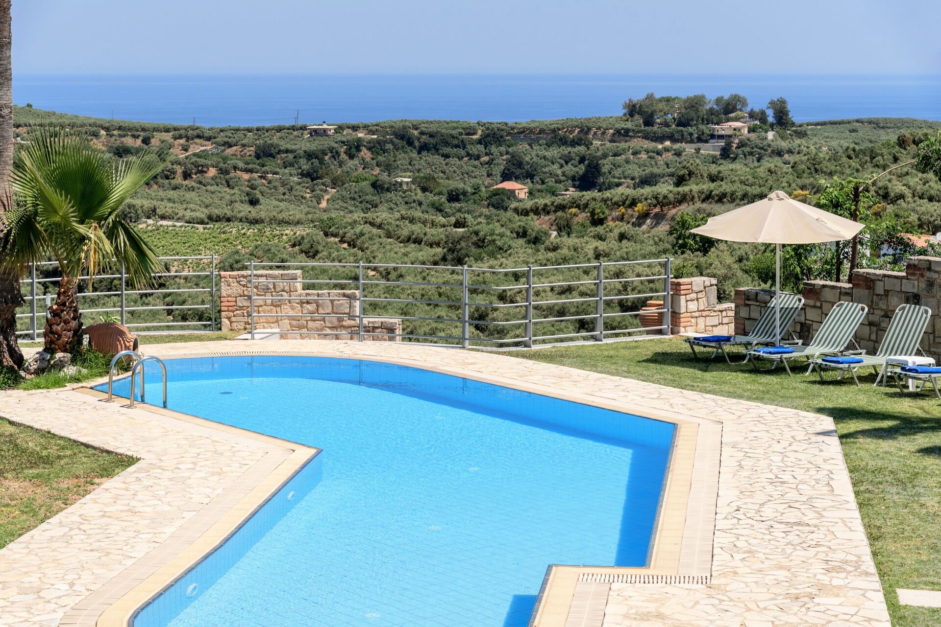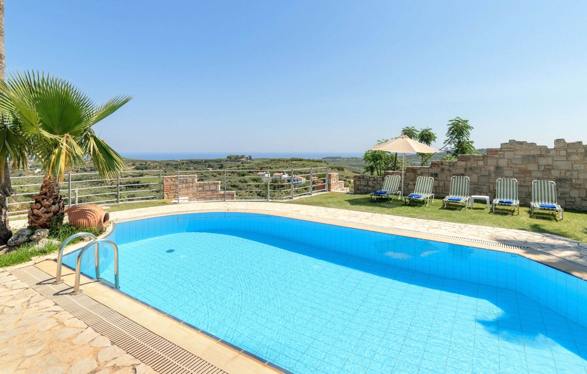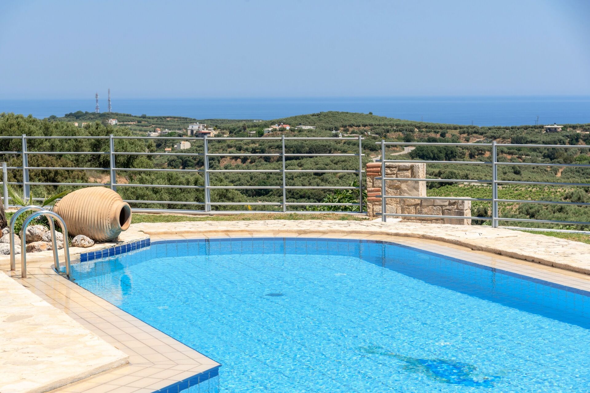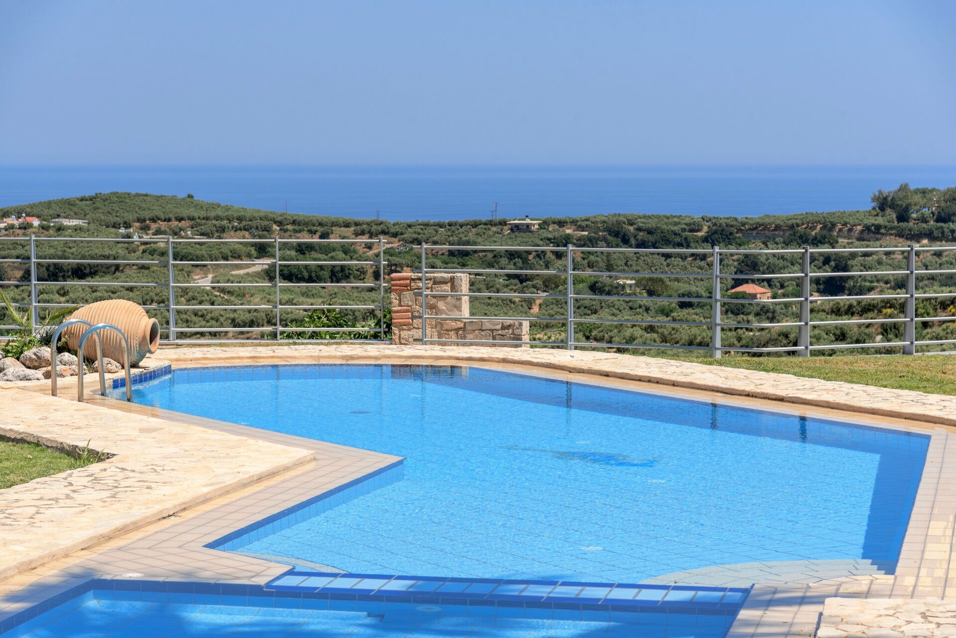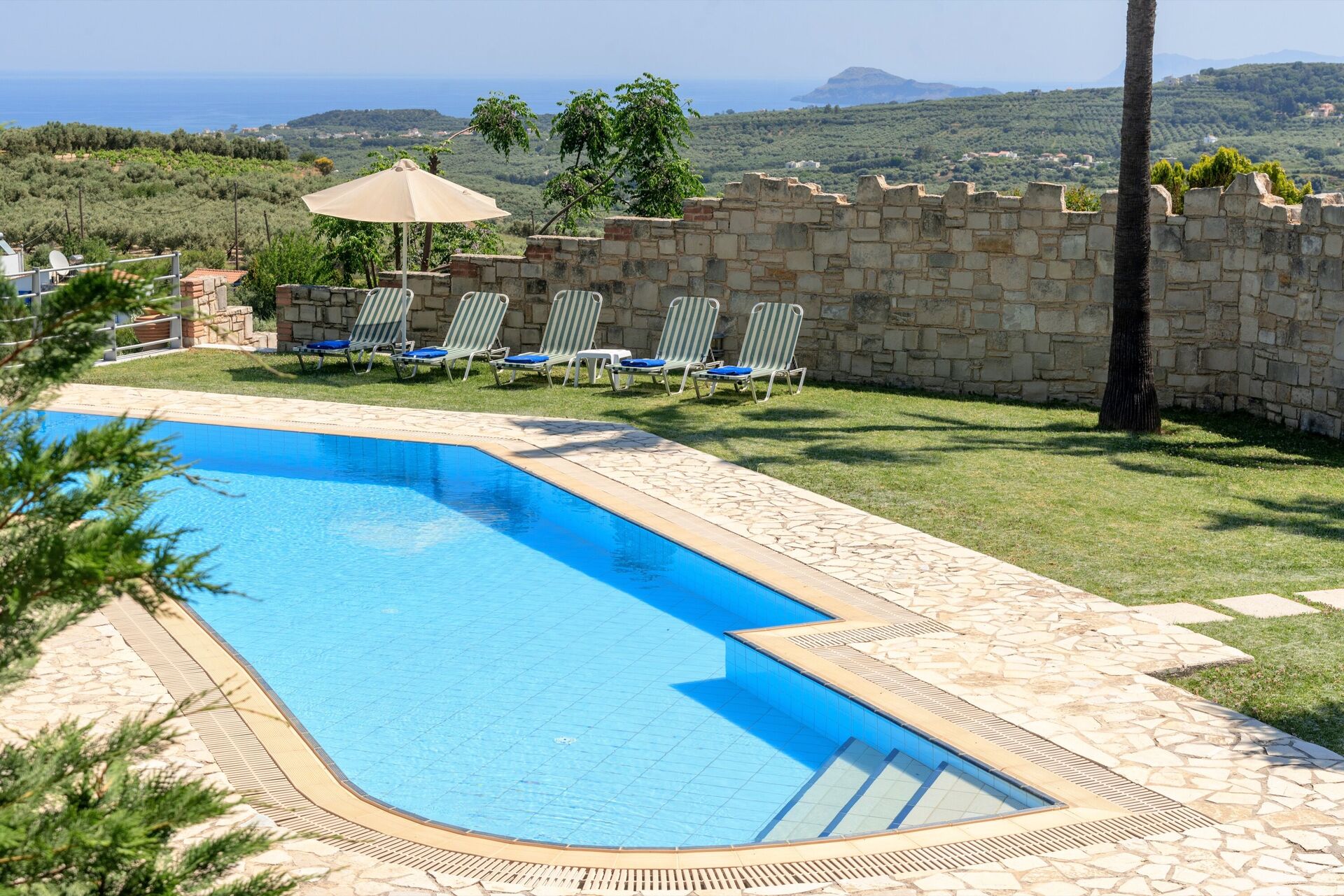 This is a lovely villa - it’s up on a hill with amazing views down to the sea. The pool is beautiful and the villa is comfortable and generally well maintained.