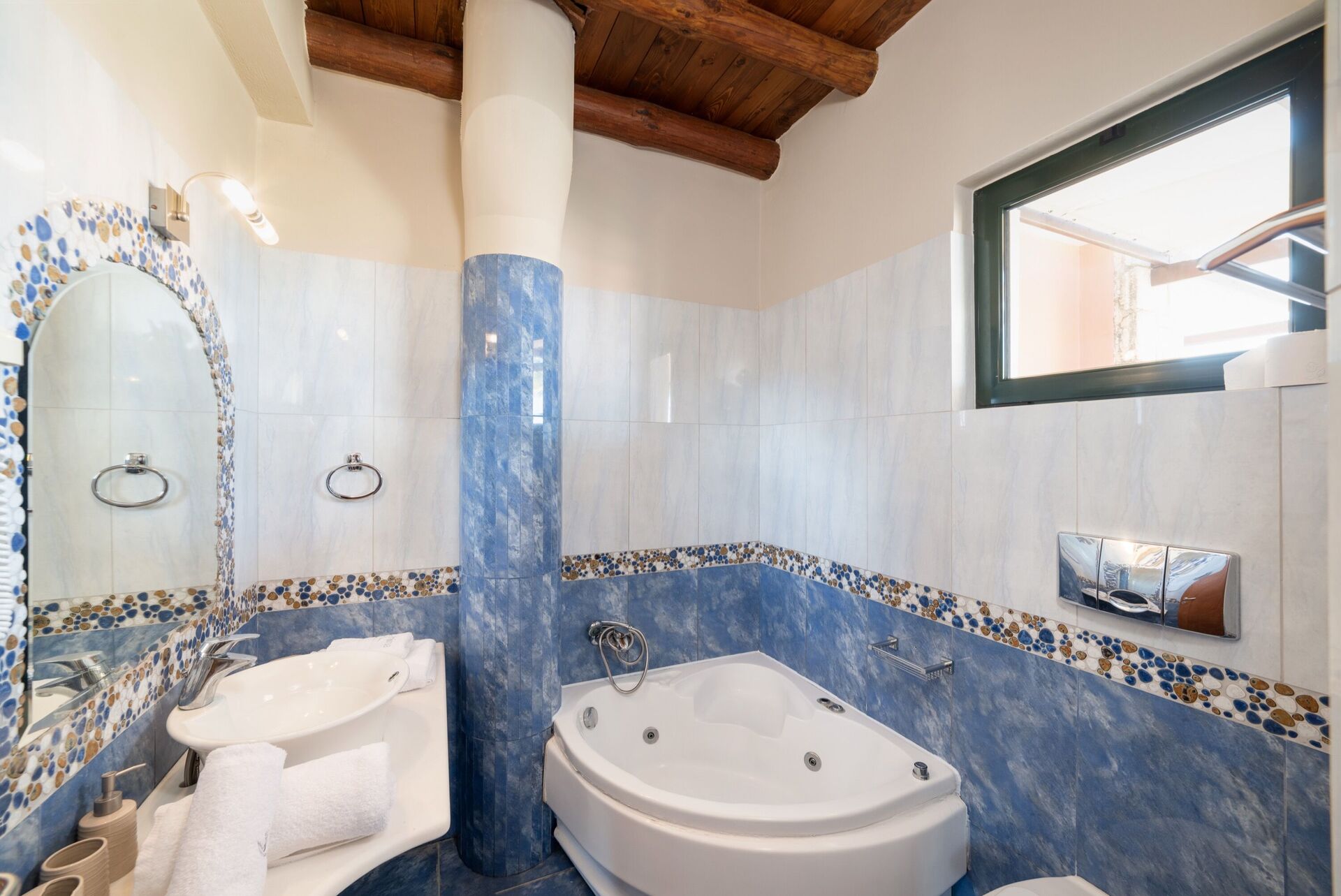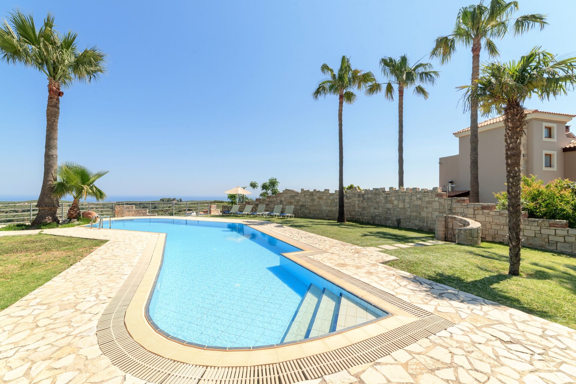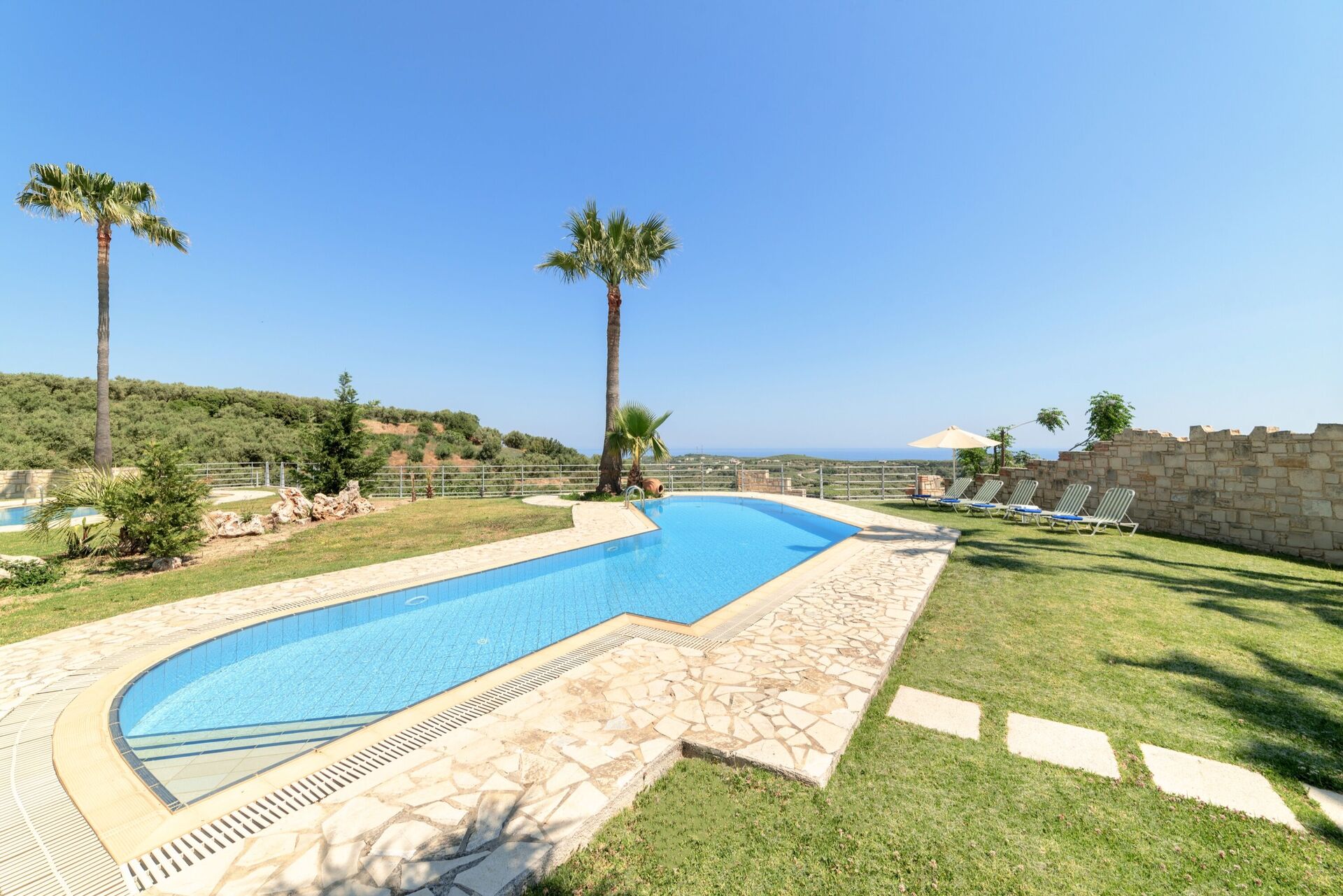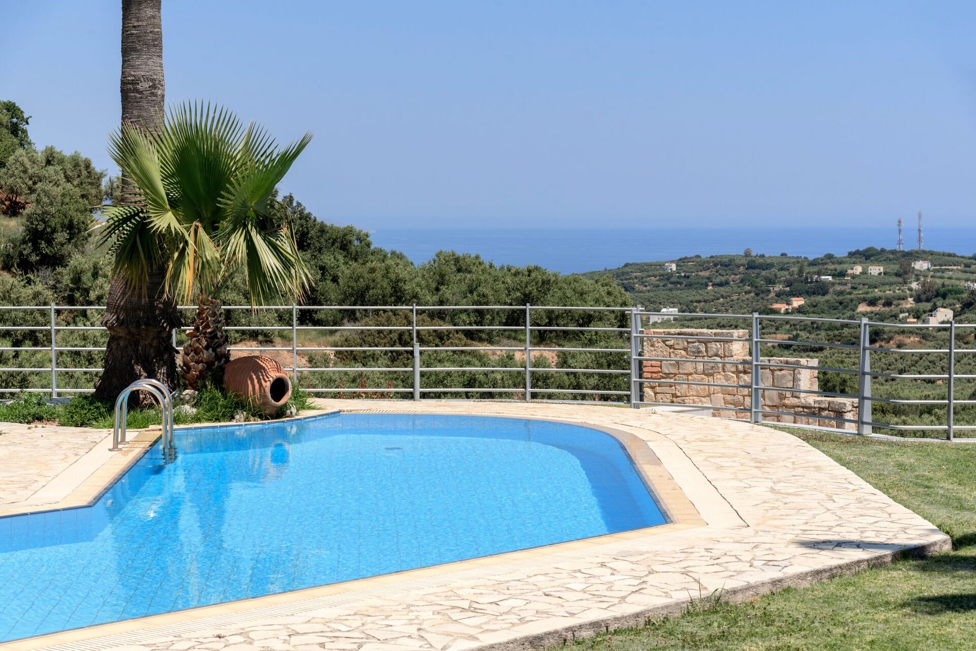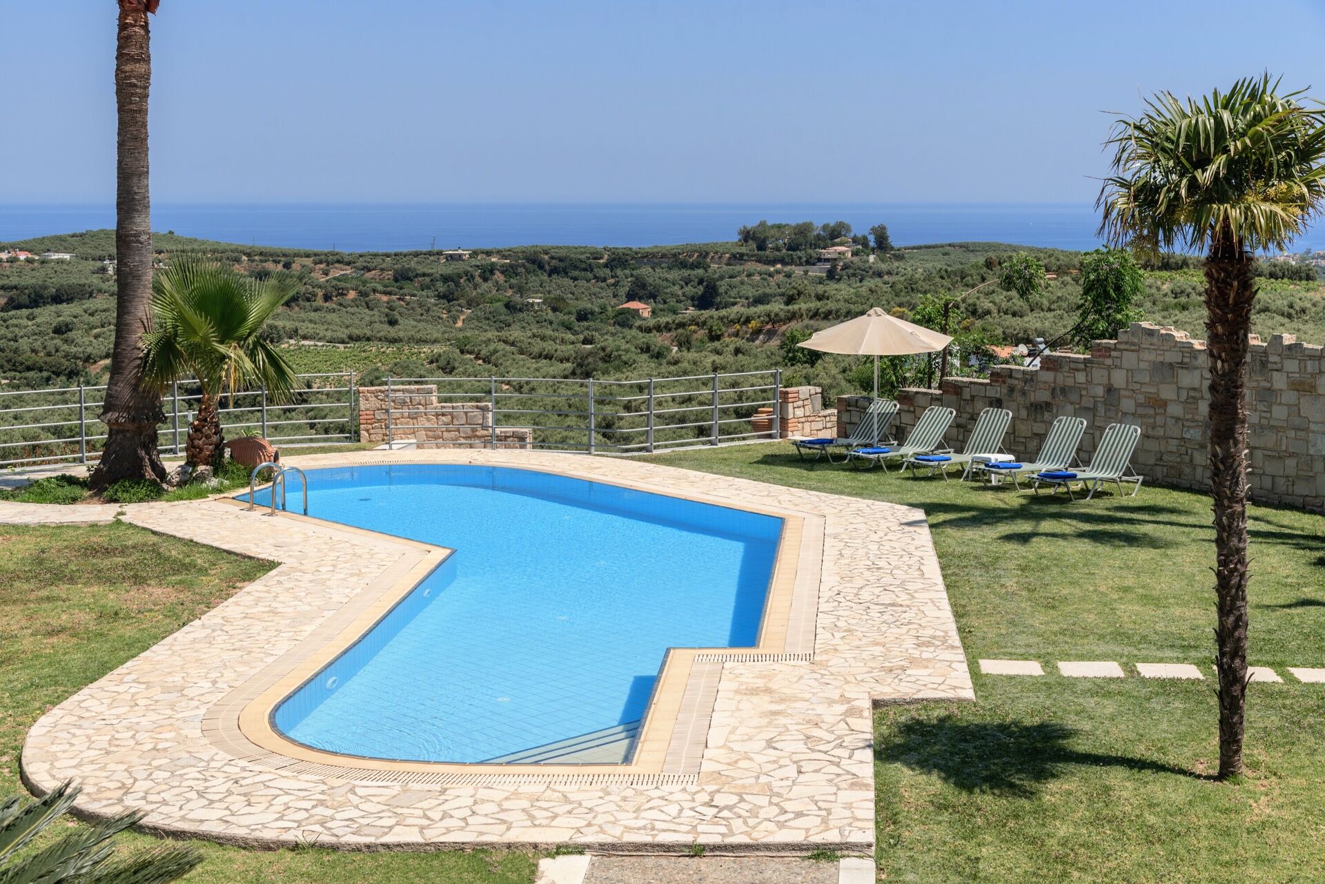 This is a lovely villa - it’s up on a hill with amazing views down to the sea. The pool is beautiful and the villa is comfortable and generally well maintained.