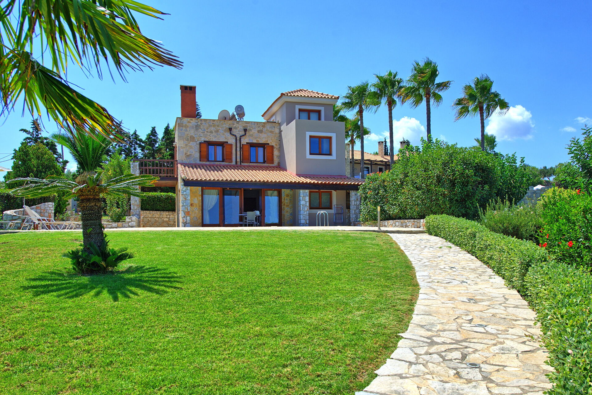 Een vrijstaande villa met prachtig uitzicht op zee en een grote, goed onderhouden tuin, het is ideaal voor een vakantie aan zee.