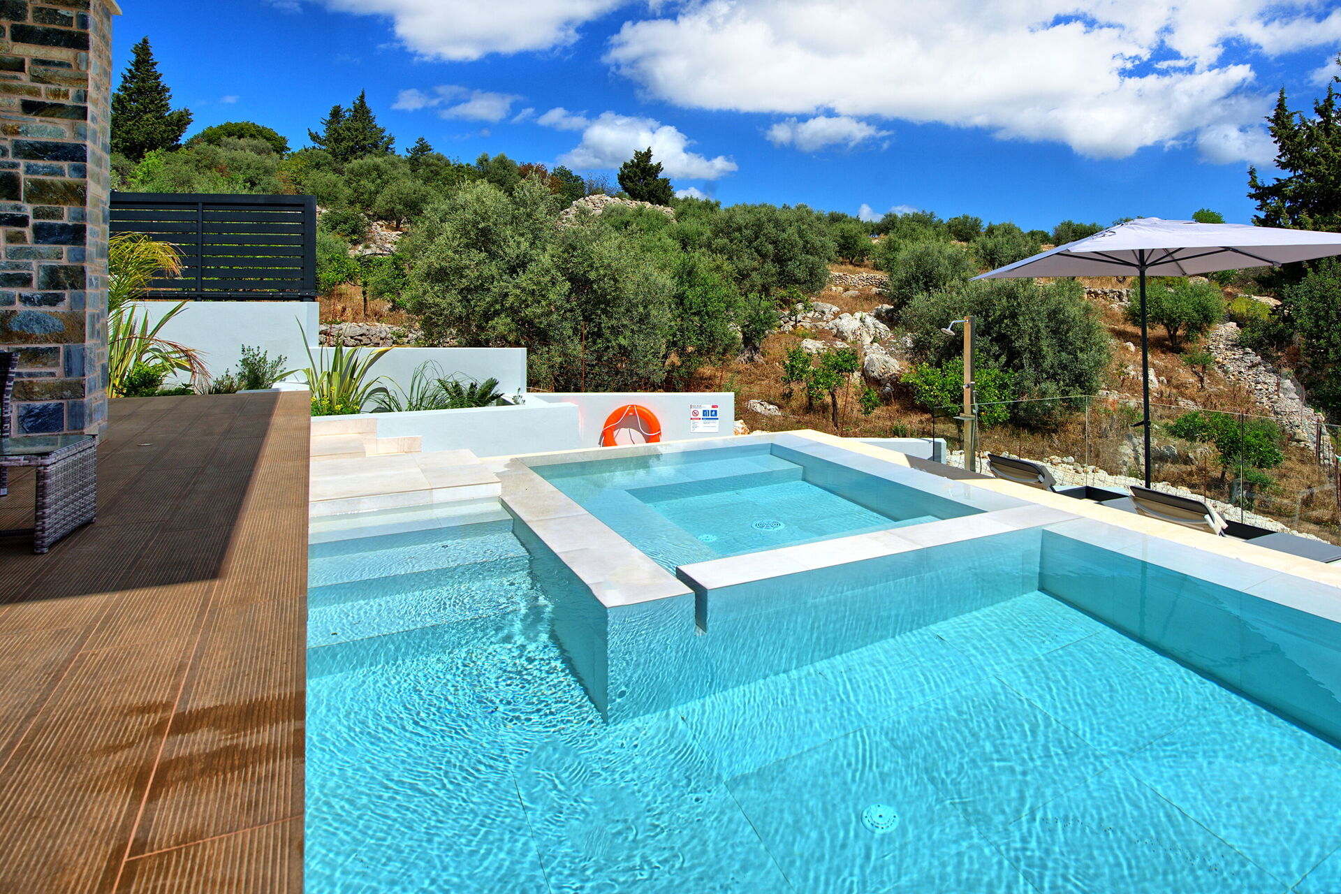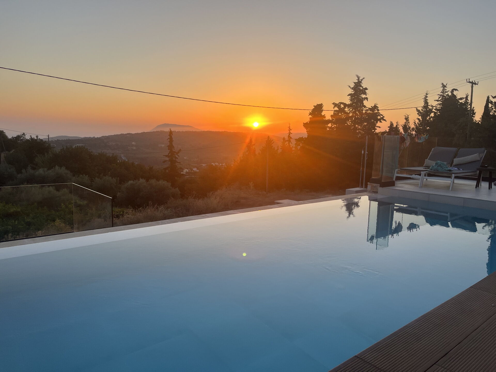 Beautiful new and modern, state of the art 1-story villa in a quiet and picturesque area of Crete. Amazing view. All amenities present, very hospitable and friendly owner, personal touches make you feel very welcome. Owner delivered the villa super-clean and stopped by 1-2 times per week to change bed linens and towels. The main east/west highway on the island is within a 5 minute drive. There is no hustle and bustle, no noise, just crickets. Beautiful infinity type pool with steps leading into it. 0.9m deep on the shallow end, about 1.5m on the deep end. 10 meters swimming length and additionally, a whirlpool type section with seats for enjoying drinks and conversation. No actual whirlpool function. Pool is well kept, pool boy visits regularly to clean it out and check water quality.