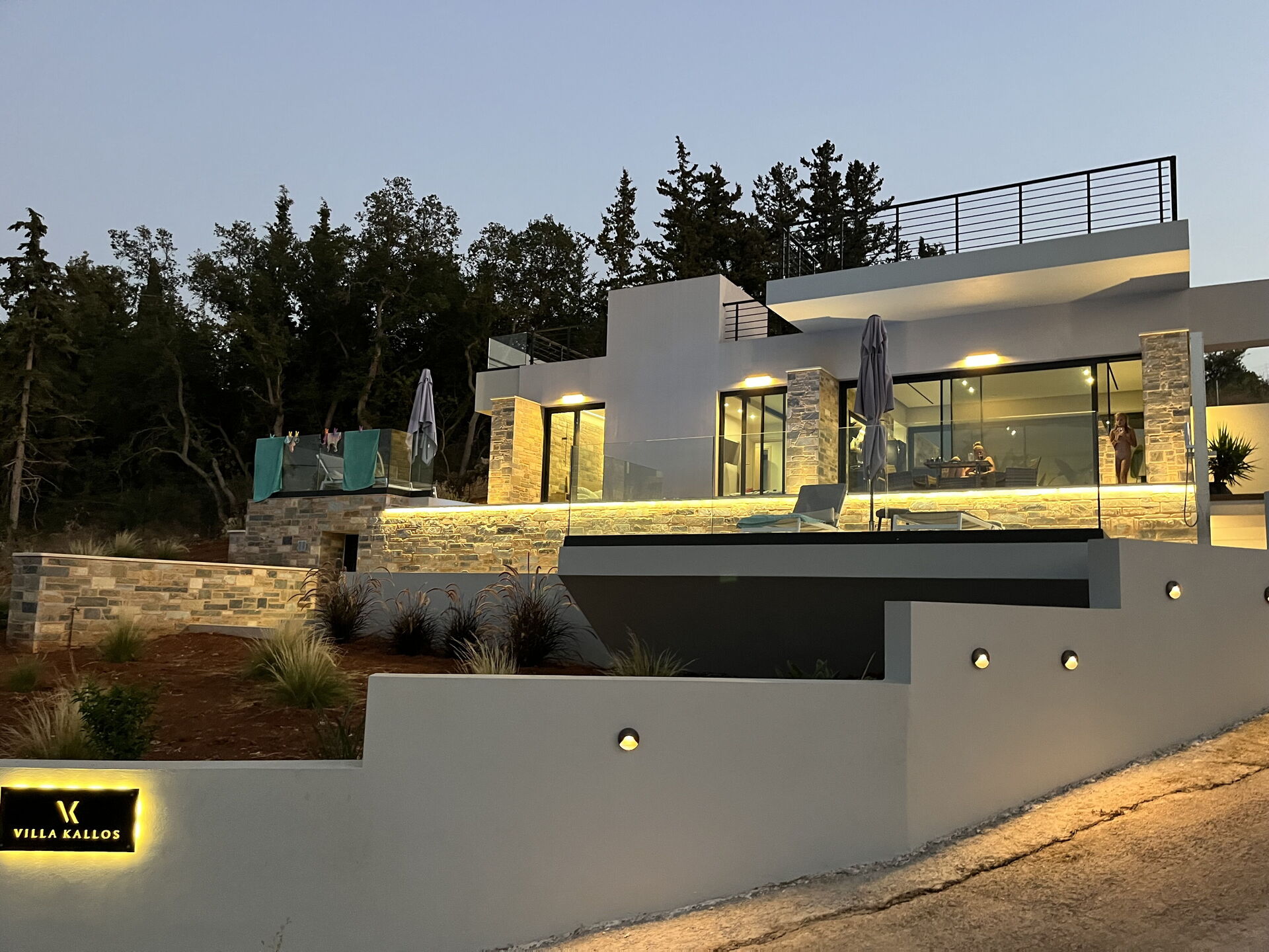 We were the first (ever) guests at Villa Kallos. Our hosts were wonderful, friendly, attentive and kind. Villa Kallos is exactly as the photos show. The layout and facilities have been carefully and cleverly considered. The Villa is positioned near to the top of a hill and you can enjoy a stunning view from every room. The outside space is superb. A beautiful pool, multiple seating areas and an outside barbecue. All the ingredients for a perfect holiday. Thank you.