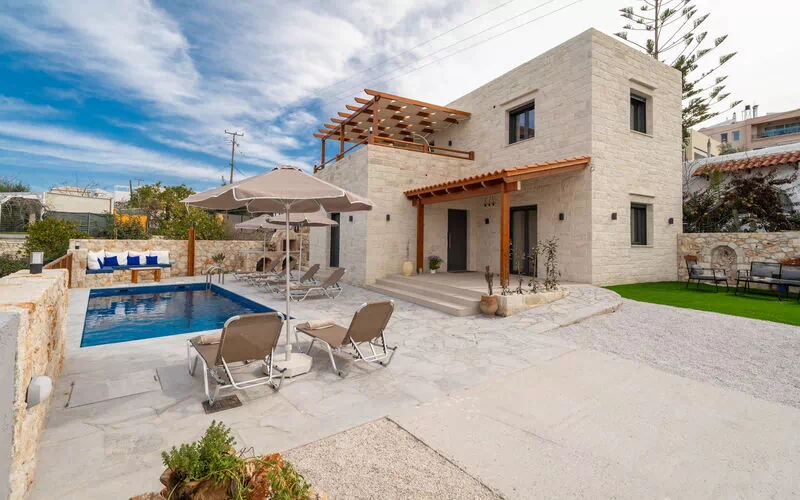 Verdeeld over twee verdiepingen met een totaal van 90 m², is de villa ontworpen om comfortabel plaats te bieden aan maximaal 6 personen in een frisse en functionele omgeving. Op de begane grond wordt de open woonruimte gekenmerkt door grote ramen die de kamers overspoelen met natuurlijk licht, met een volledig uitgeruste moderne keuken. Het slaapgedeelte, volledig voorzien van airconditioning, is zo ingedeeld dat maximale privacy gegarandeerd is: een tweepersoonsslaapkamer op de begane grond en twee extra slaapkamers op de eerste verdieping, die toegang bieden tot een prachtig panoramisch terras met uitzicht op zee – de perfecte plek voor een verkwikkend ontwaken.Strategische positie om het westen van Kreta te verkennen