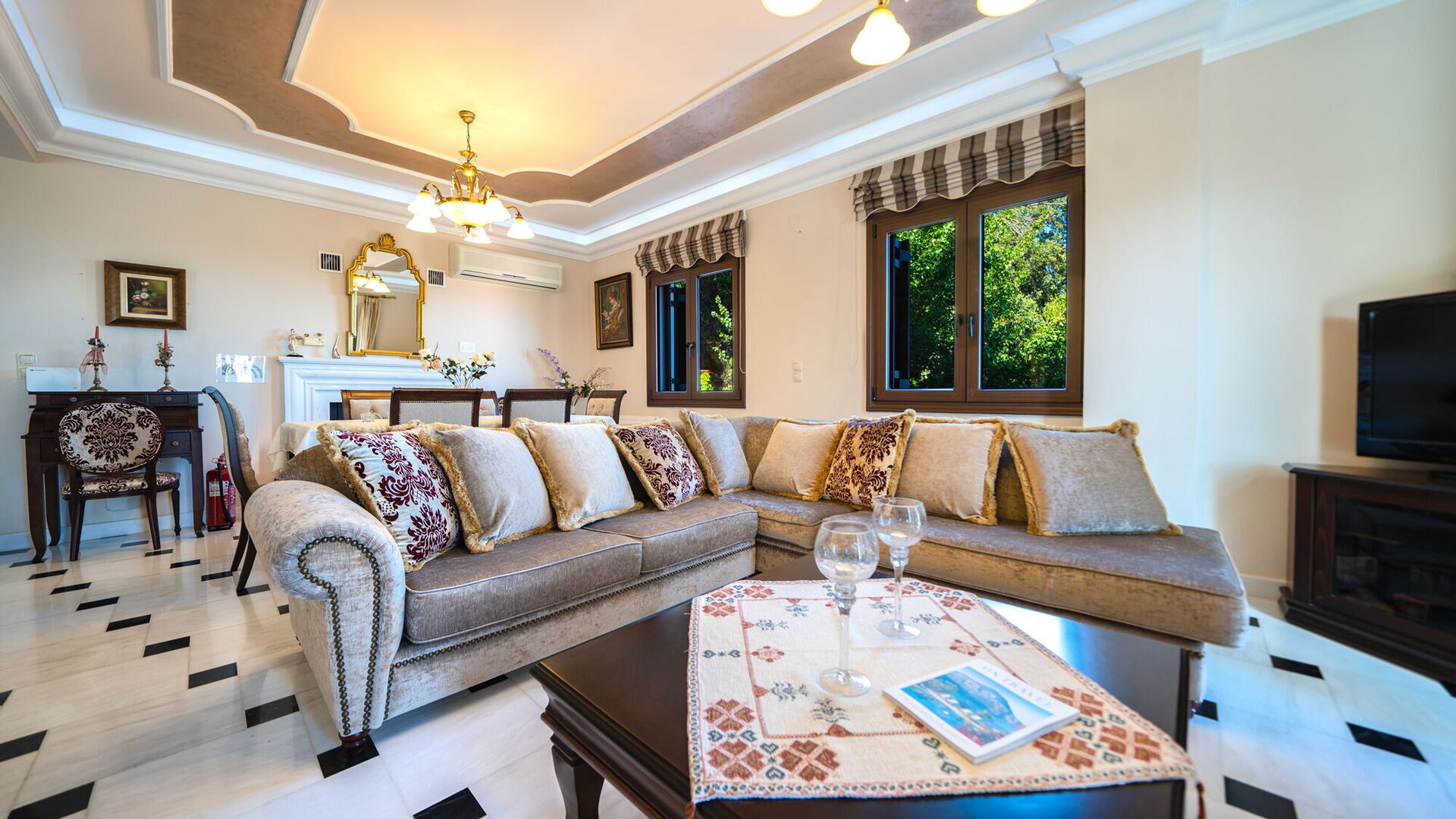 De klassieke architectuur en het zorgvuldige meubilair van de villa zorgen voor een prachtige omgeving met moderne voorzieningen voor uw verblijf. Een schilderachtig zwembad met een apart gedeelte voor kleine kinderen staat tot uw beschikking, evenals een buitenjacuzzi (niet verwarmd), ruime gemeubileerde terrassen en het tuinhuisje met een tafel om buiten te eten.