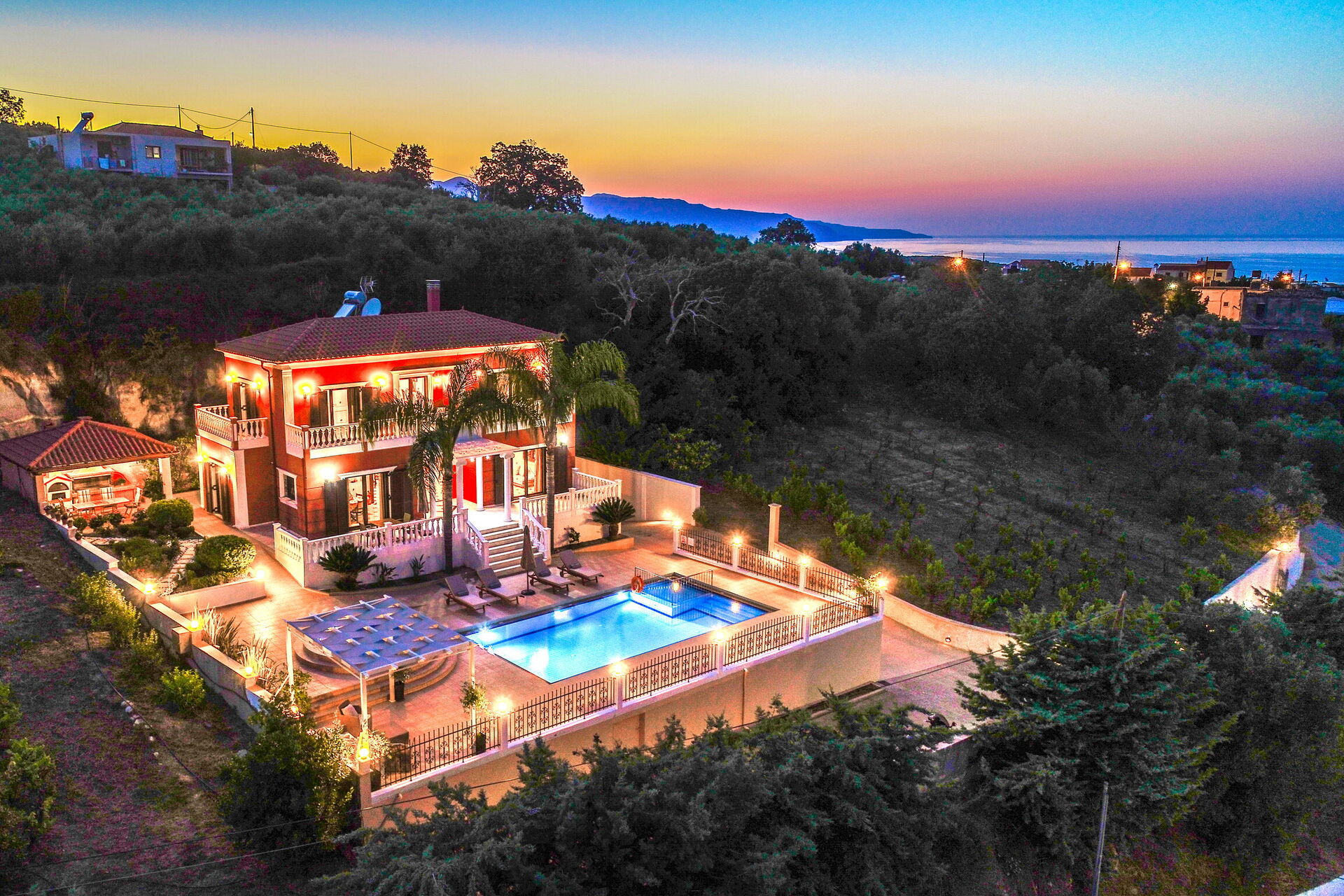 Iro Royal Villa is een prachtige vakantievilla met privézwembad op Kreta. Gelegen op een heuvel in het westen van Chania, biedt het een prachtig panoramisch uitzicht.