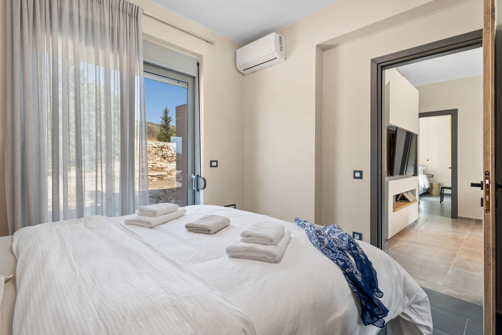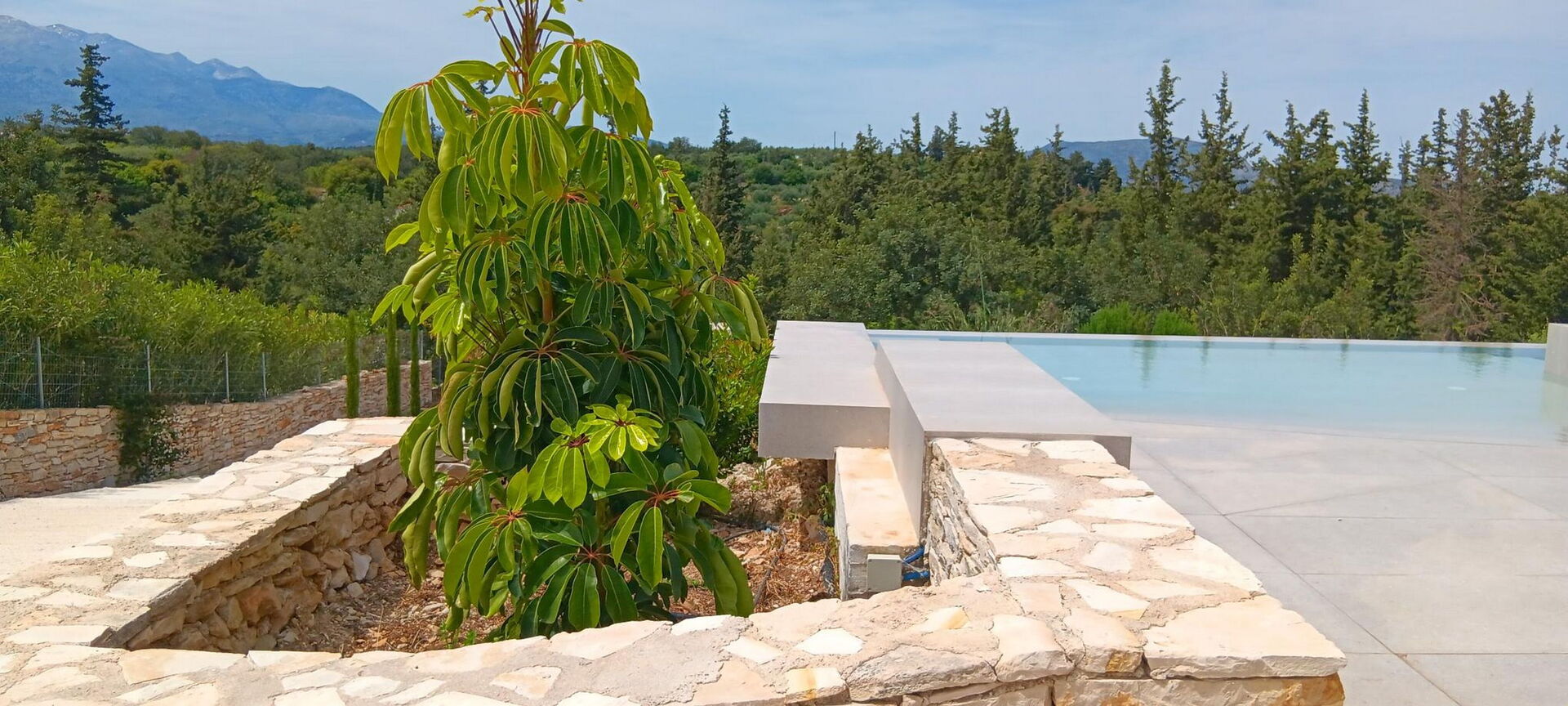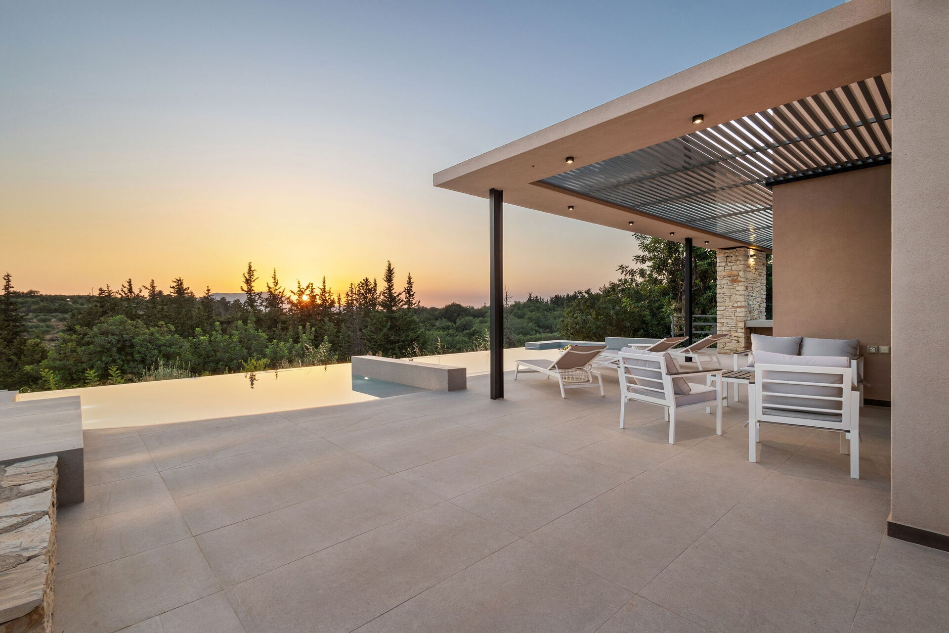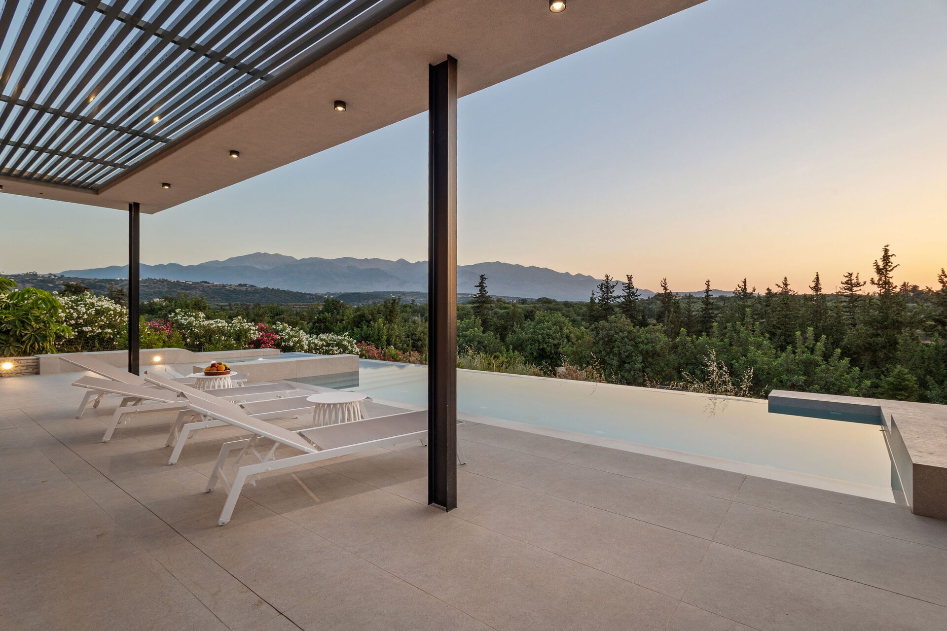 De buitenruimte is uitgerust met een barbecue en een tafel om buiten te kunnen eten, evenals een prachtig privézwembad waar je kunt afkoelen op zonnige zomerdagen op Kreta. Vanaf het terrein heb je een schitterend panoramisch uitzicht over het omliggende landschap met olijfgaarden, cipressen en mediterrane planten als decor voor onvergetelijke momenten onder de Griekse zon.