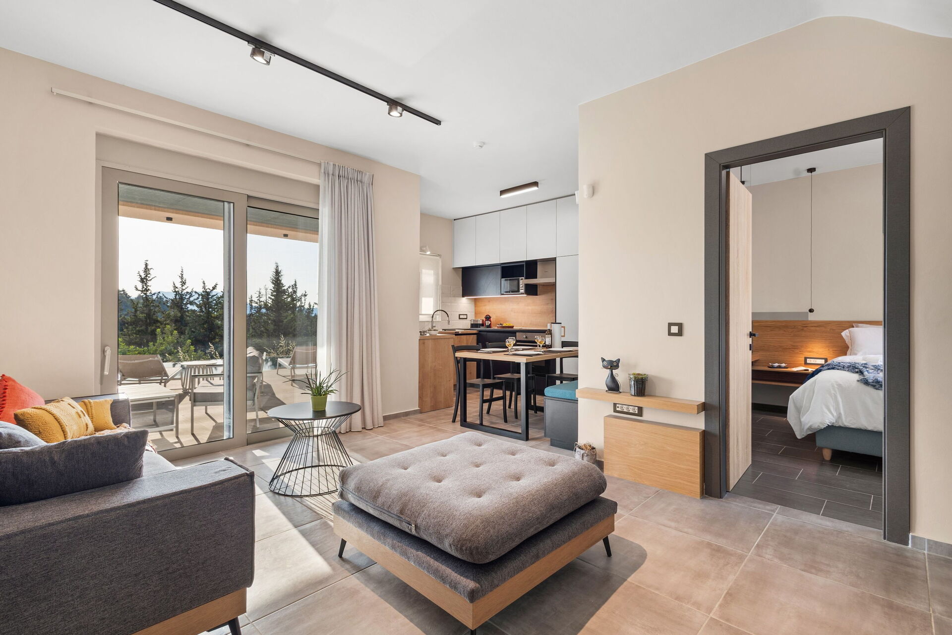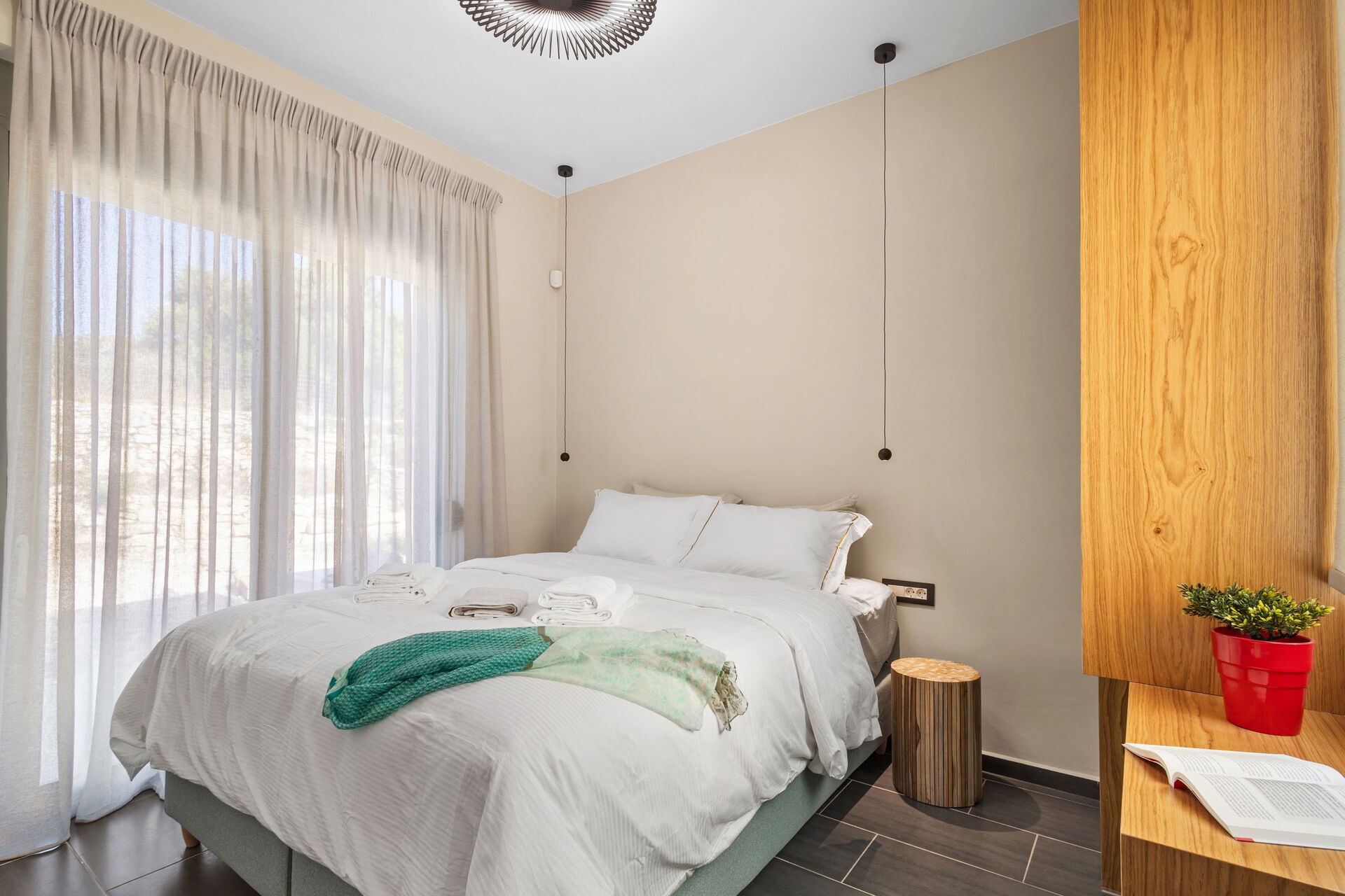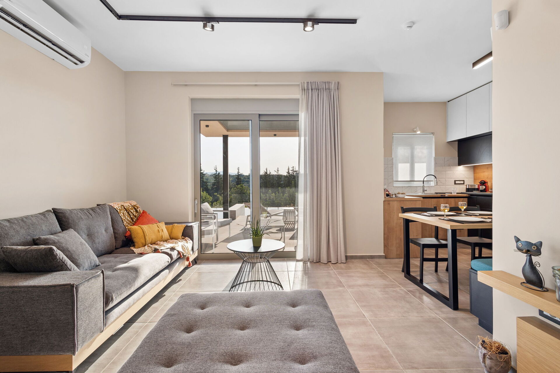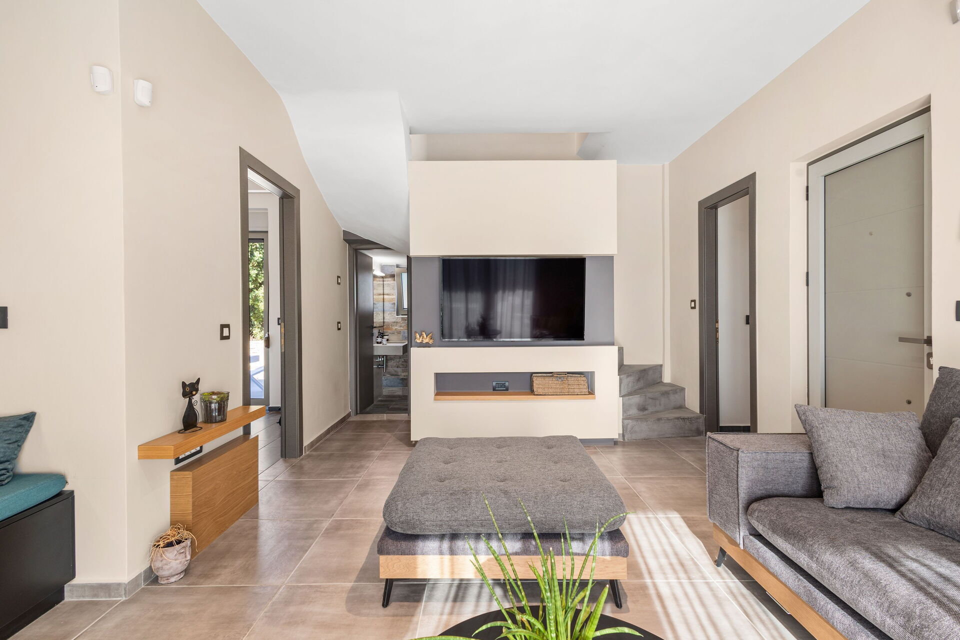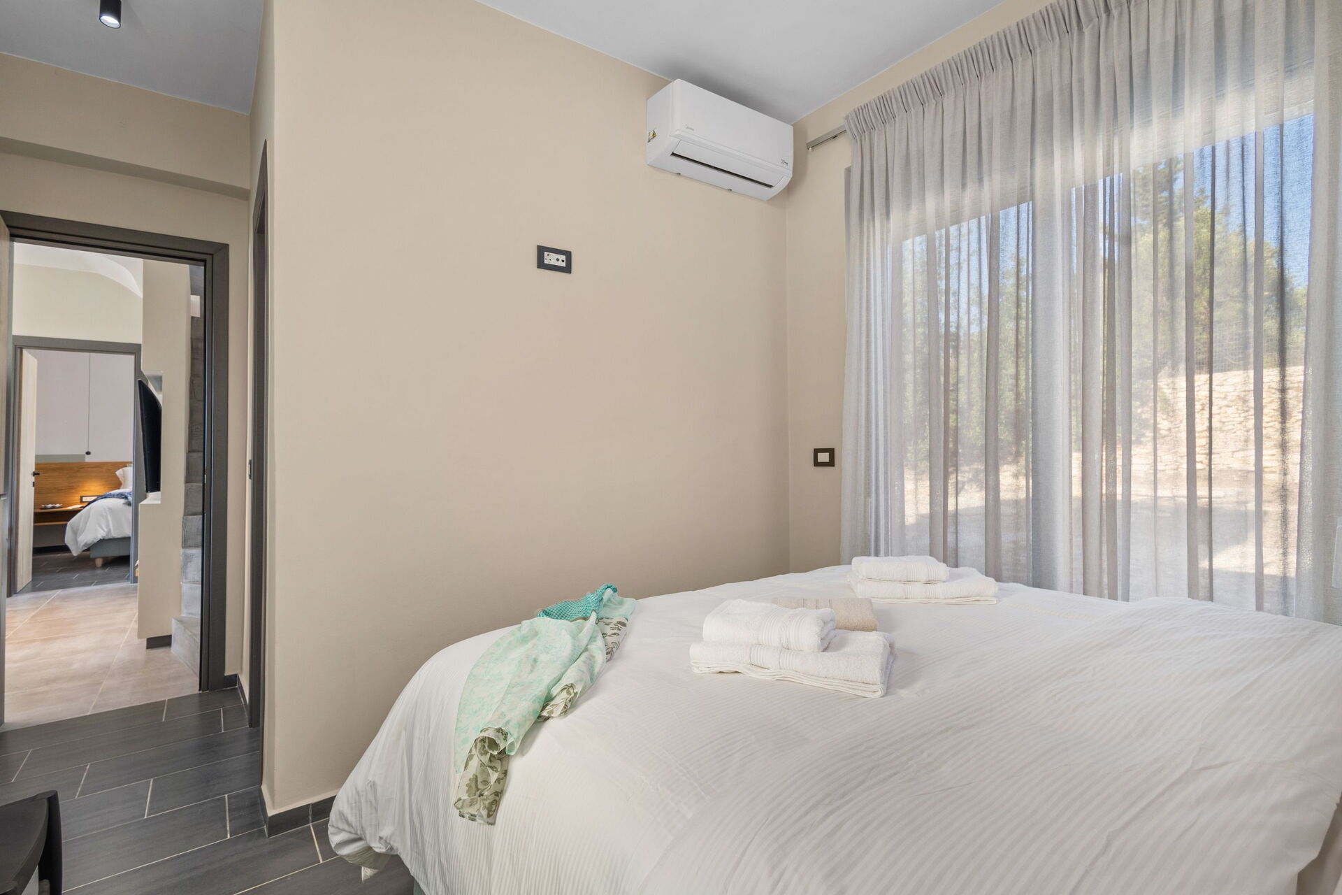 De buitenruimte is uitgerust met een barbecue en een tafel om buiten te kunnen eten, evenals een prachtig privézwembad waar je kunt afkoelen op zonnige zomerdagen op Kreta. Vanaf het terrein heb je een schitterend panoramisch uitzicht over het omliggende landschap met olijfgaarden, cipressen en mediterrane planten als decor voor onvergetelijke momenten onder de Griekse zon.