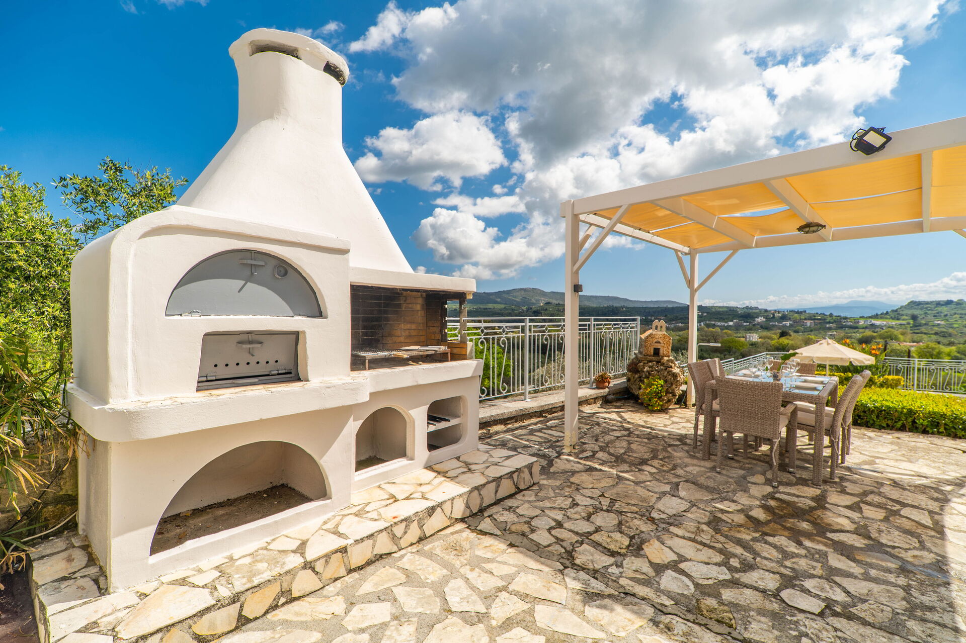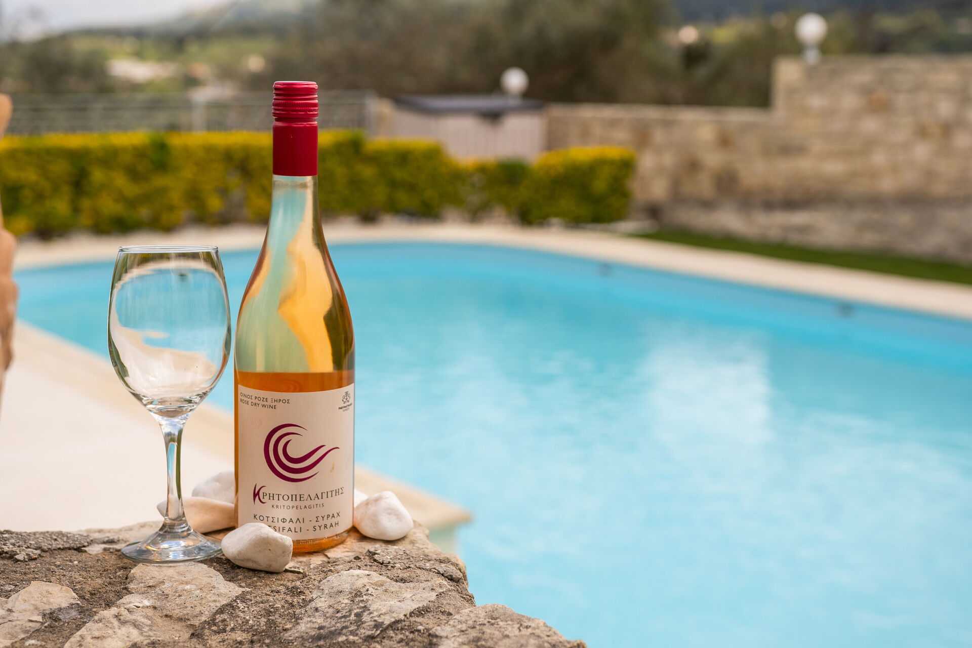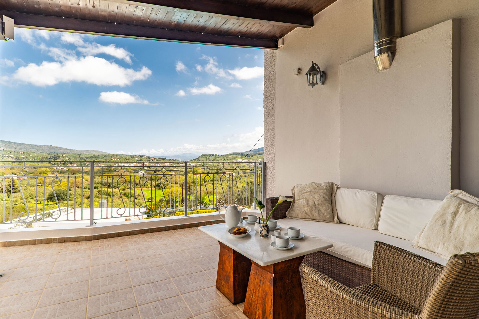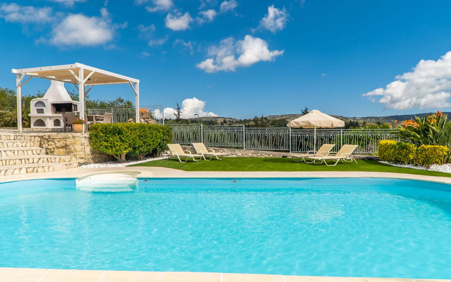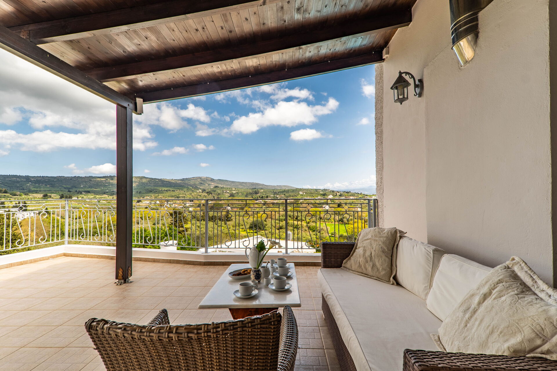 Buiten zijn er veel grote, schilderachtige ruimtes zoals de ruime terrassen en het zwembad, waar je kunt ontspannen met familie of vrienden. Het zwembad biedt uitzicht op de omliggende heuvels en het platteland: olijfbomen, cipressen en mediterraan struikgewas zullen je achtergrond zijn voor onvergetelijke momenten onder de Griekse zon.