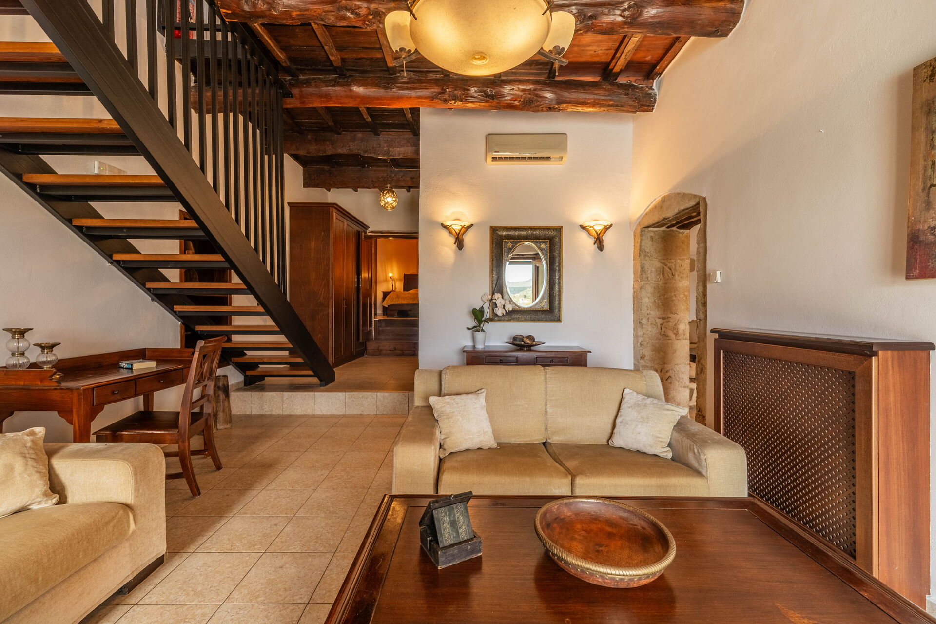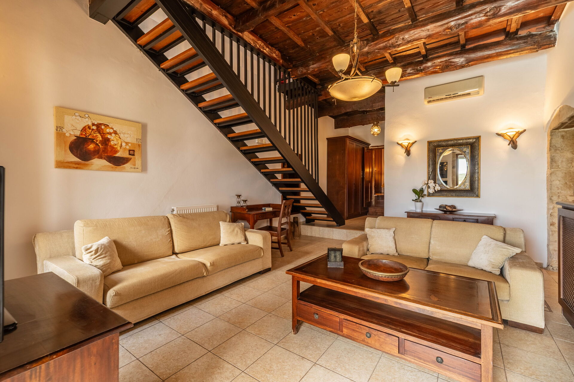 Dit exclusieve vakantieverblijf beschikt over een comfortabel, smaakvol ingericht interieur. Het is van alle gemakken voorzien, terwijl tegelijkertijd de originele architectonische kenmerken bewaard zijn gebleven, met lokale stenen en traditionele Kretenzer elementen.