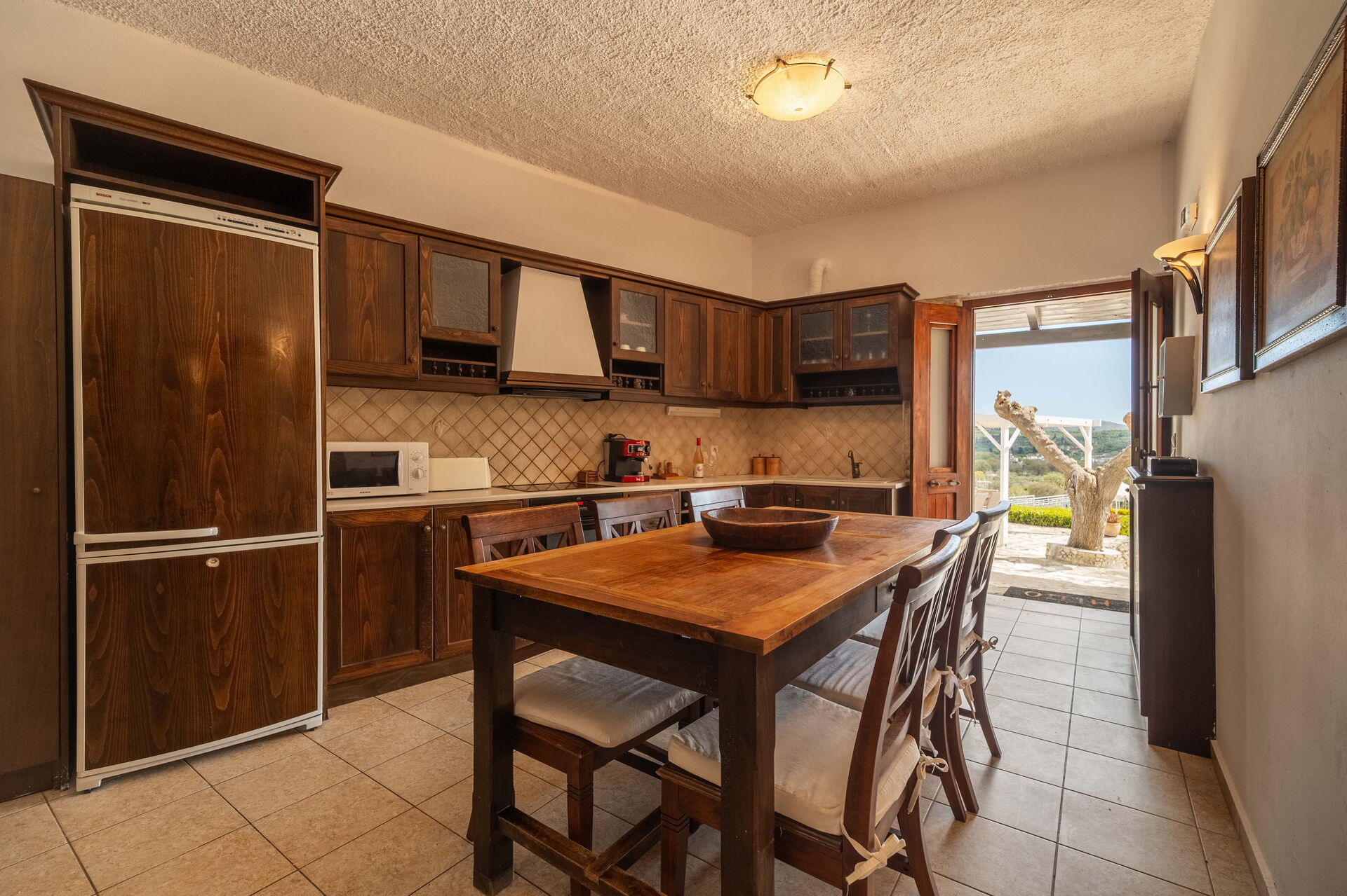 Afstanden: Vryses (allerlei winkels) 2 km, Georgiopuli (strand, en allerlei winkels) 9 km, Almyrida 12 km, Lake Kournas 12 km, Retimo 31 km, Chania 34 km, vliegveld 40 km, Herakleio 111 km.Beschrijving Interieur