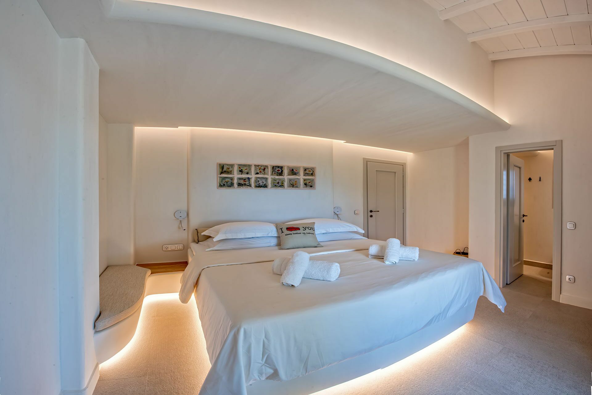 Distances: city of Skopelos (harbor, shops of all kinds) 4 km away, Limnonari beach 6 km, Panormos beach 8.5 km, Stafilos beach 9 km, Milia beach 11 km, Agios Ioannis (the church in “Mamma Mia!” perched on a cliff above the sea) 20 km away.