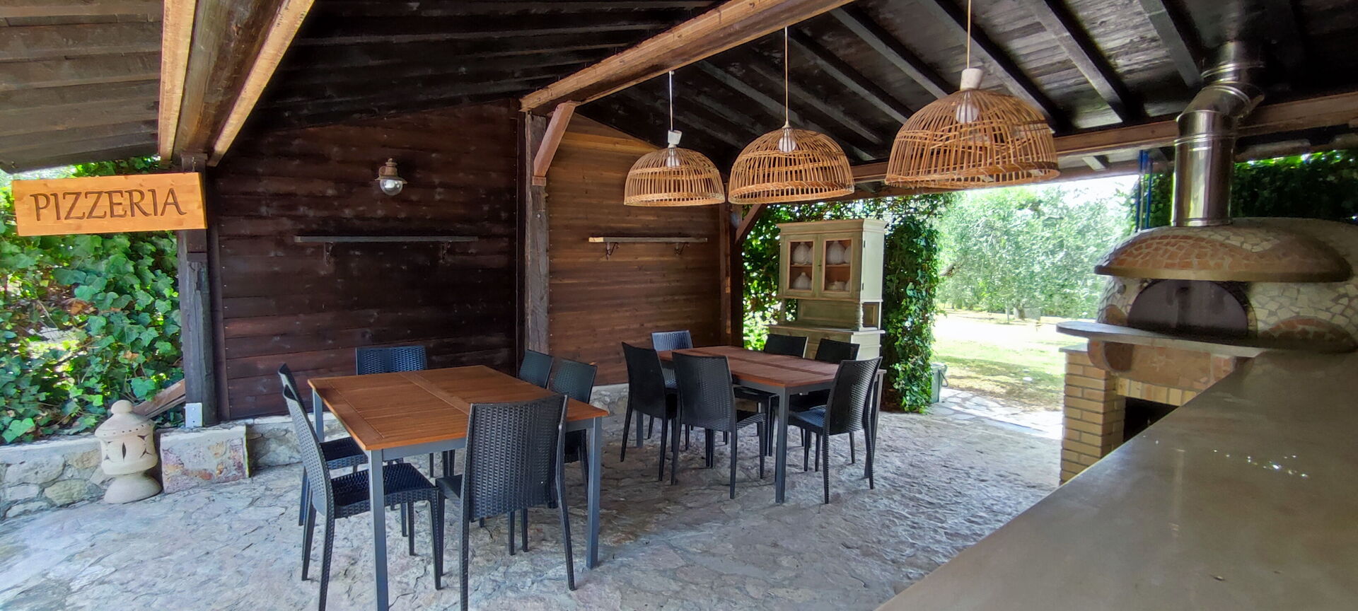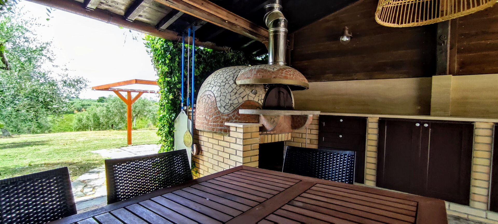 - prieel uitgerust met tafel en stoelen met houtoven en barbecue
