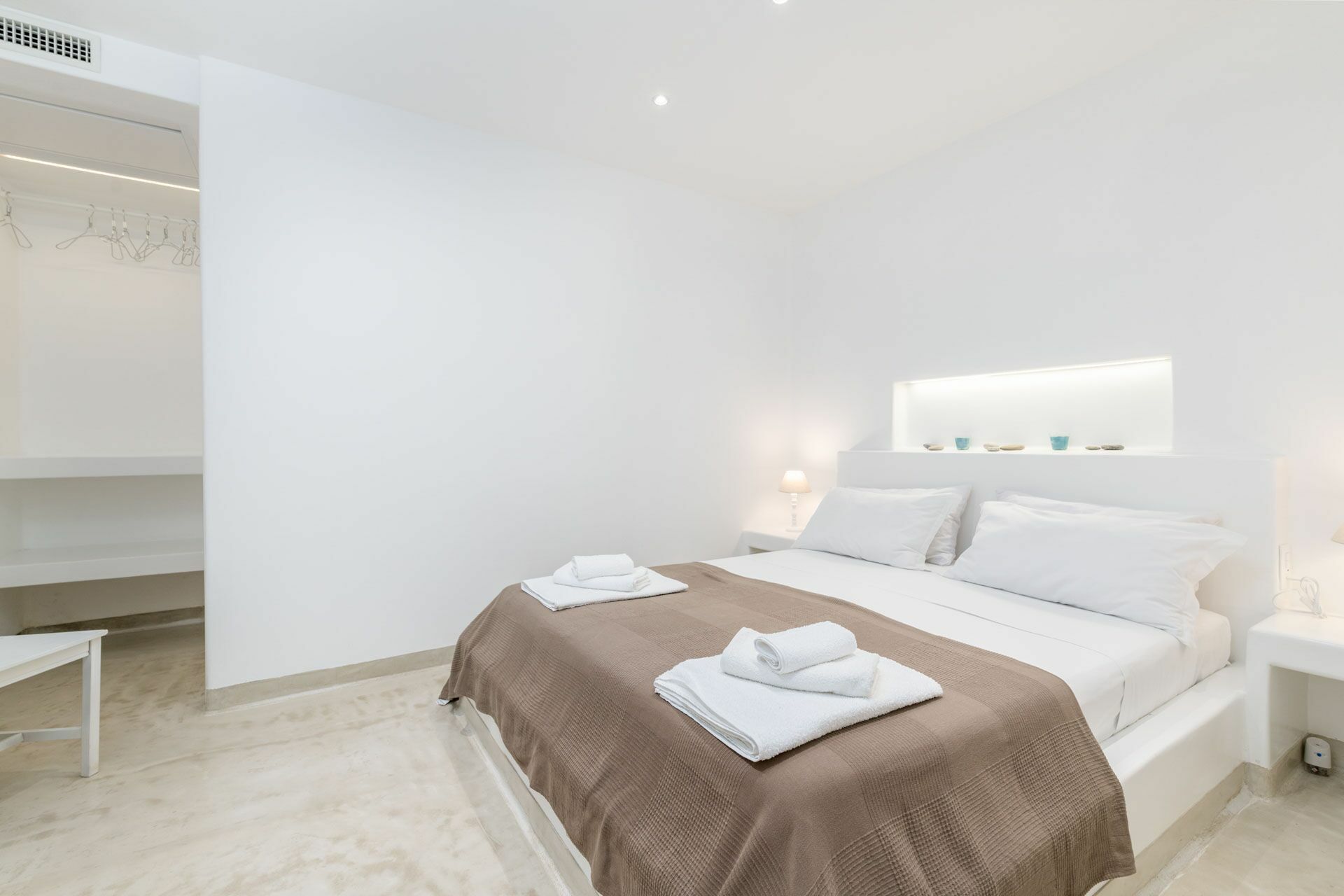 Begane grond: 2 tweepersoonsslaapkamers, elk met een eigen badkamer met douche; kleine keukenhoek.