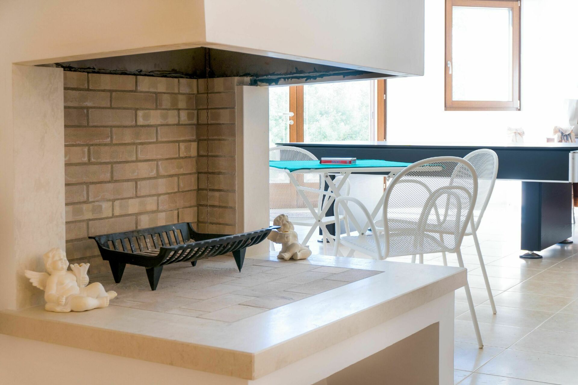 - overdekt terras met tafel en stoelen om buiten te eten
