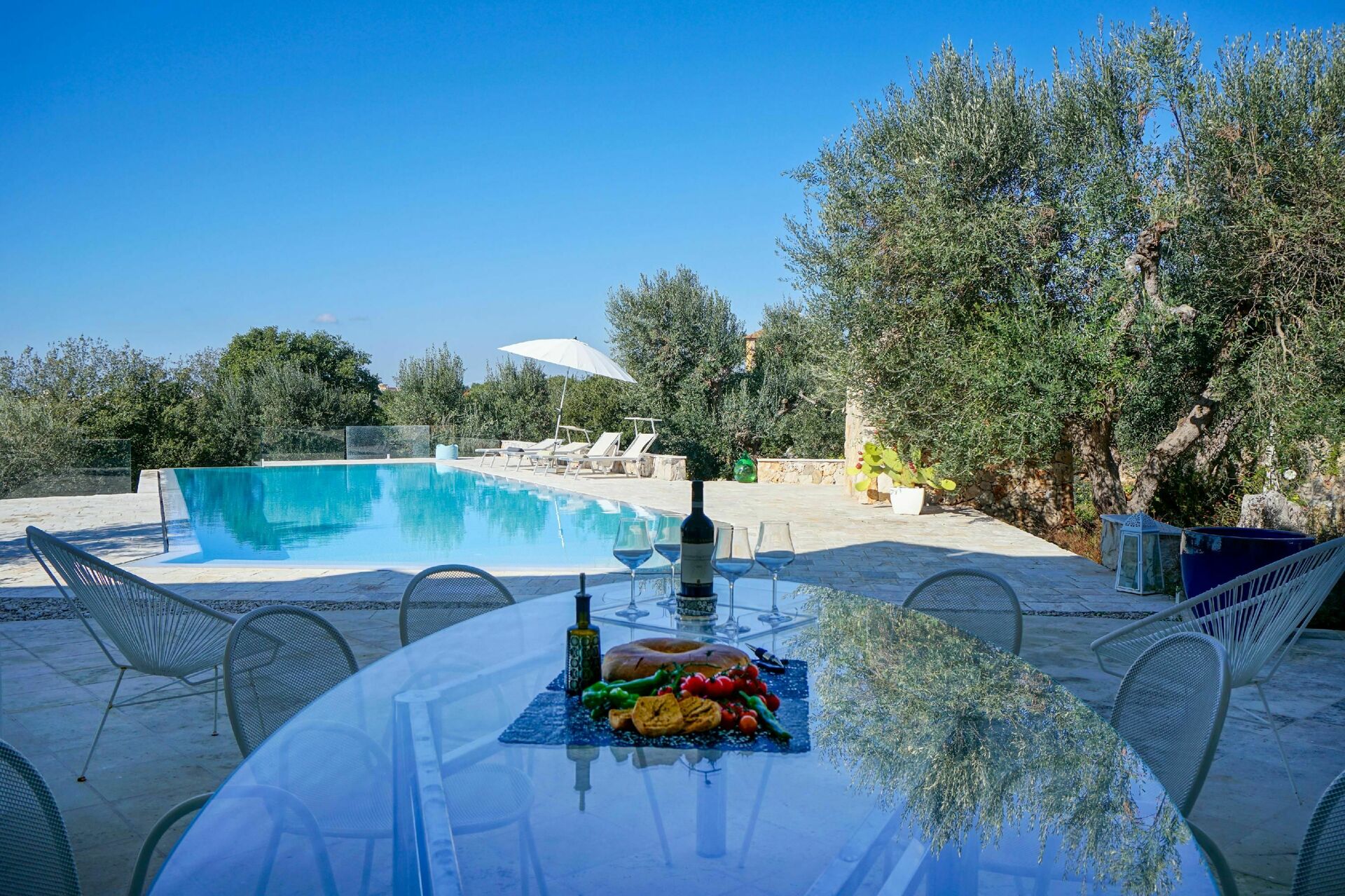 De vakantiewoning is volledig vrijstaand. Het interieur is nieuw en gastvrij; de buitenruimtes zijn goed onderhouden, met een prachtig zwembad voor exclusief gebruik door de gasten. U kunt buiten dineren op het overdekte terras, gelegen tussen de woonkamer en het zwembad. De westkust van Apulië ligt op ongeveer 15 km afstand.