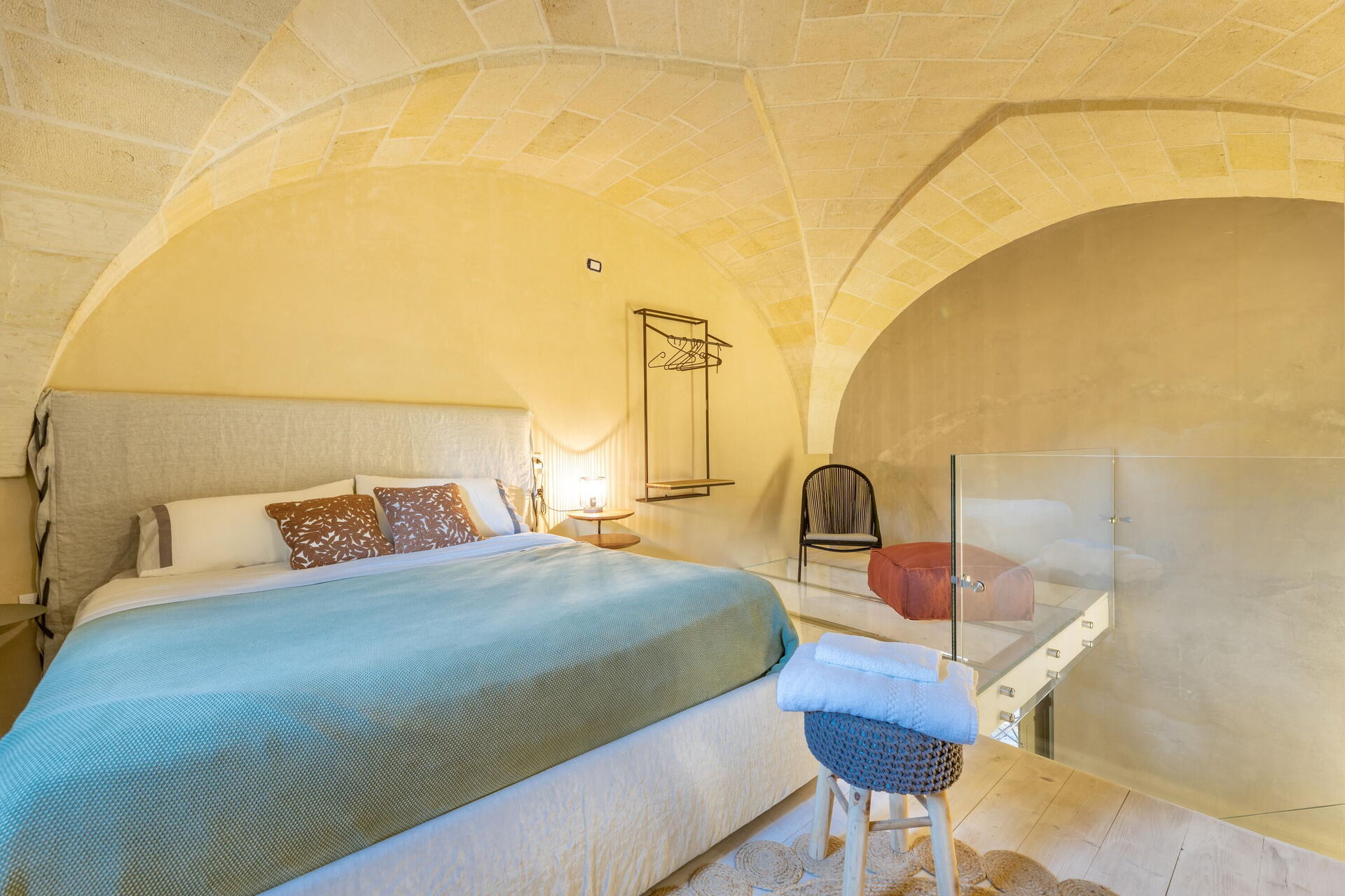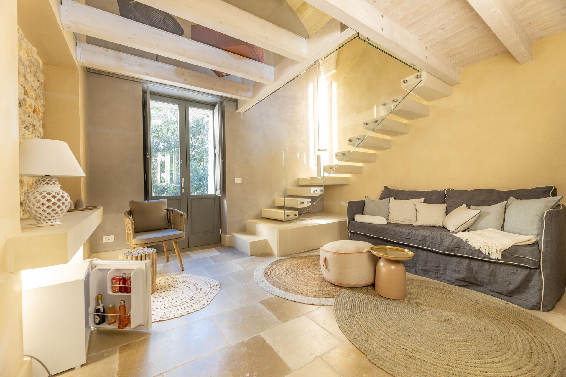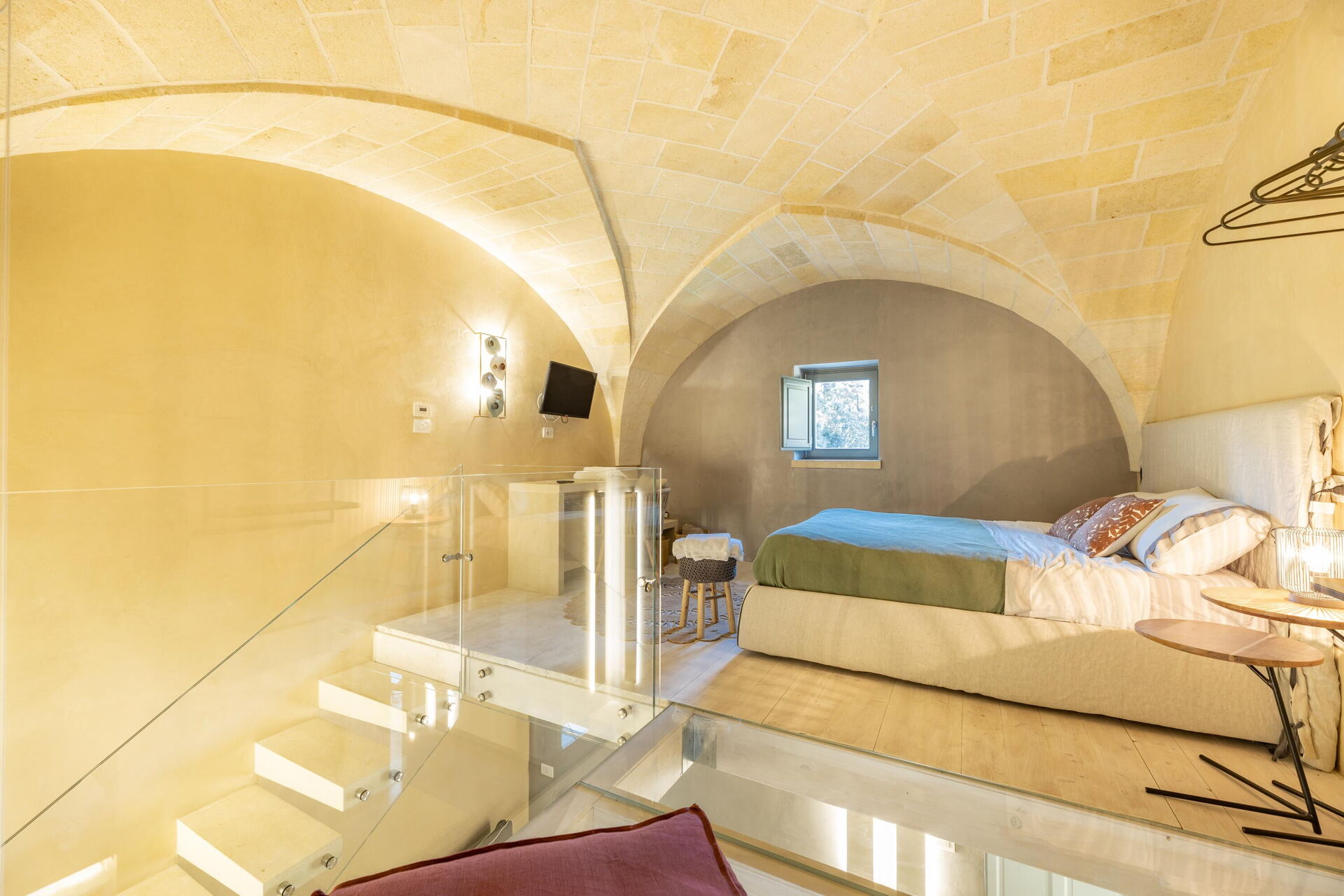 De charmante villa is geschikt voor maximaal 6 personen in 3 slaapkamers. Het moderne interieur brengt de steen en het hout van de eeuwenoude structuur van het complex mooi naar voren. De grote, goed onderhouden tuin die het pand omringt, heeft een betoverend privézwembad dat alleen voor Tenuta Arcadia-gasten is bestemd, met comfortabele, moderne ligstoelen om te ontspannen bij het zwembad. Een bijzonder interessant kenmerk van de elegante vakantiewoning is de overdekte veranda met uitzicht op het zwembad en de grote glazen schuifdeuren, zodat u kunt genieten van maaltijden terwijl u de geuren van Salento opsnuift.