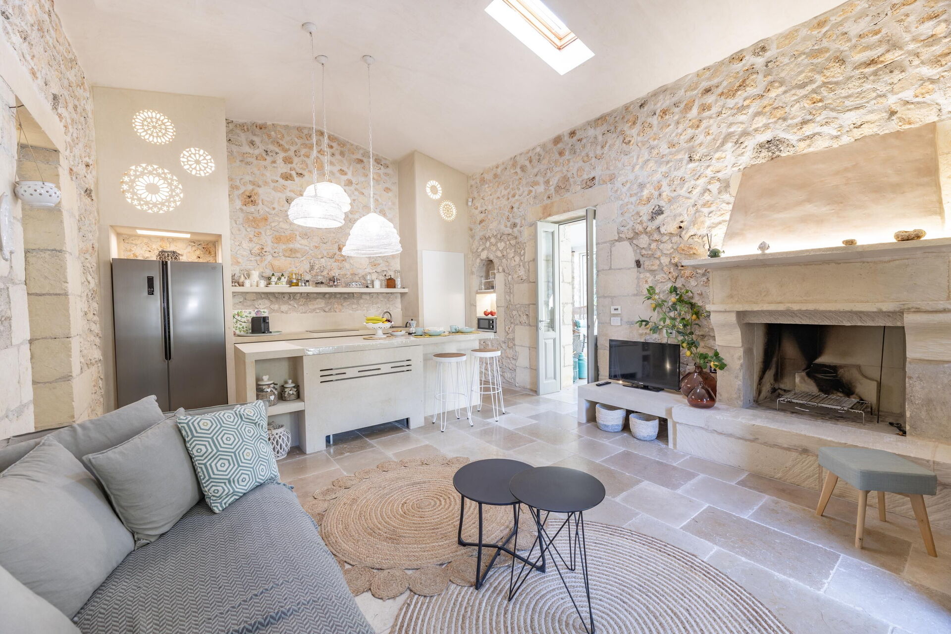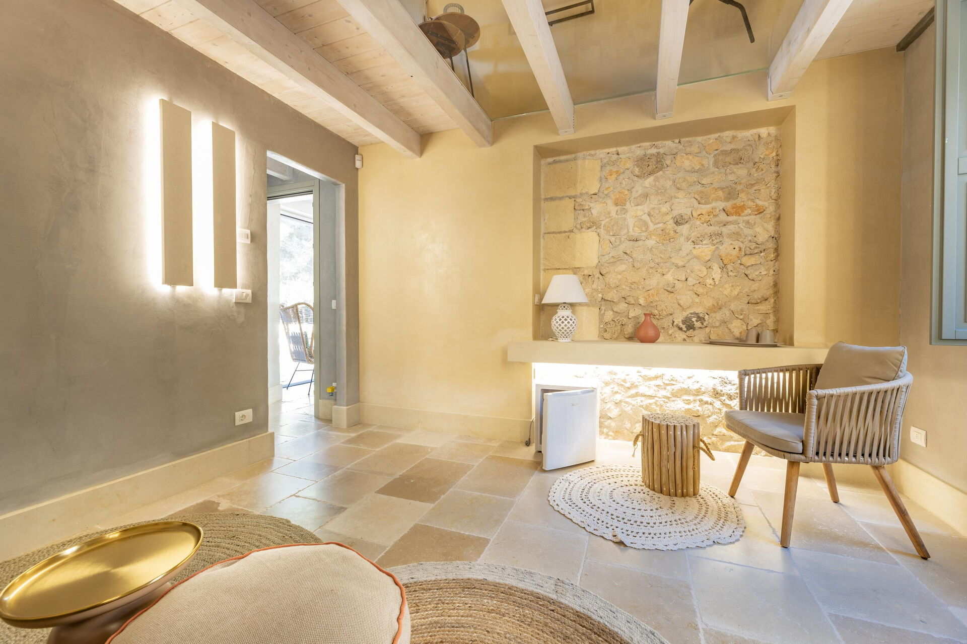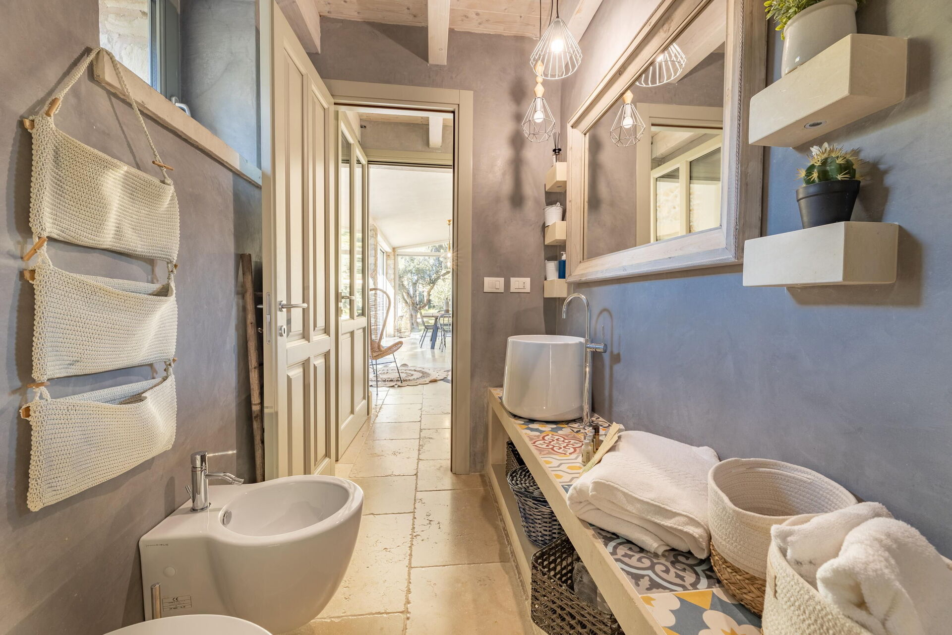 De charmante villa is geschikt voor maximaal 6 personen in 3 slaapkamers. Het moderne interieur brengt de steen en het hout van de eeuwenoude structuur van het complex mooi naar voren. De grote, goed onderhouden tuin die het pand omringt, heeft een betoverend privézwembad dat alleen voor Tenuta Arcadia-gasten is bestemd, met comfortabele, moderne ligstoelen om te ontspannen bij het zwembad. Een bijzonder interessant kenmerk van de elegante vakantiewoning is de overdekte veranda met uitzicht op het zwembad en de grote glazen schuifdeuren, zodat u kunt genieten van maaltijden terwijl u de geuren van Salento opsnuift.